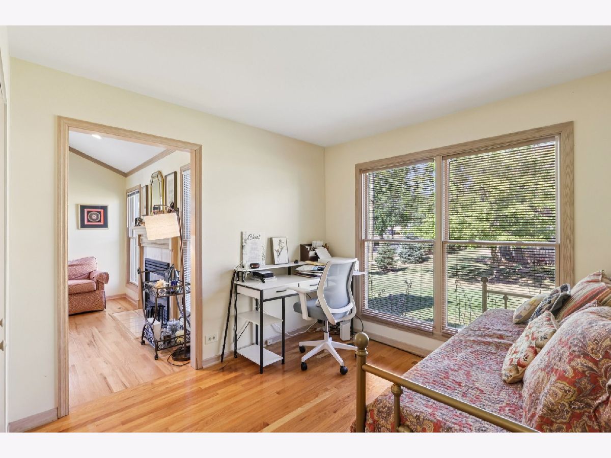 Don't miss this sundrenched corner unit featuring two bedrooms (with the second currently used as a home office) and two beautifully updated bathrooms. The home offers a functional layout that includes a formal dining room and an updated kitchen with modern appliances (2016). Vaulted ceilings in the kitchen and primary bedroom create an open, airy feel, while a cozy fireplace adds warmth and charm. Enjoy the convenience of main-floor laundry and an attached two-car garage. The finished basement provides abundant storage, space for entertaining, and the potential to add a third bedroom and bathroom. Perfectly located near Yorktown Mall, shopping, dining, and expressways-this home combines comfort, convenience, and style in one exceptional package.