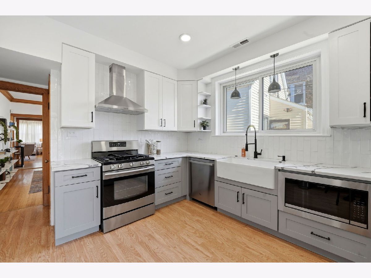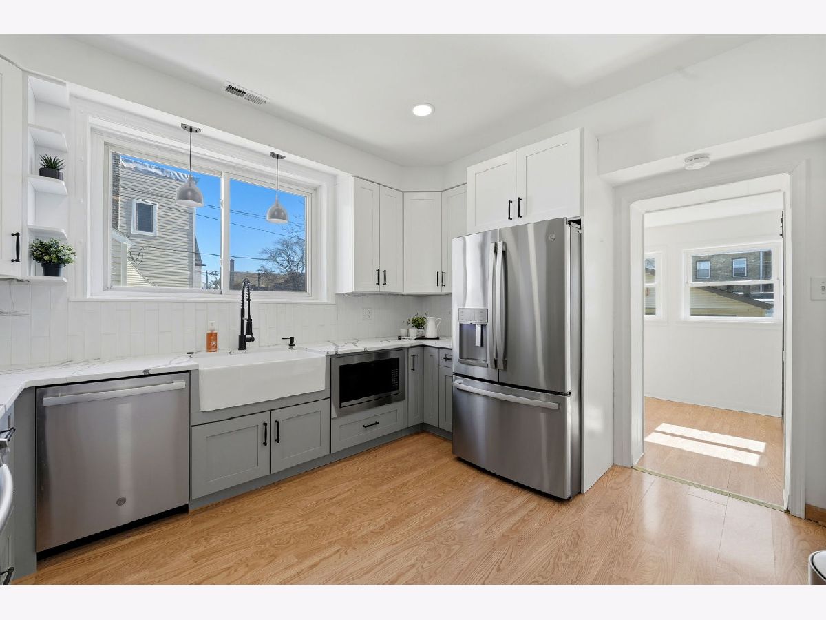Welcome to this beautifully updated bungalow in the desirable Portage Park neighborhood. This spacious home features 4 bedrooms, 3 full bathrooms, plus an additional bedroom in the finished basement, ideal for guests, a home office, or extended living. Blending classic charm with modern updates, this home offers the best of both worlds. The kitchen and first and second floor bathrooms were fully renovated in 2022. The kitchen is equipped with newer appliances, including a built in microwave installed in 2022, a dishwasher installed in 2023, and a refrigerator installed in 2024. Major mechanical updates provide peace of mind, including a new AC condenser installed in 2022, a water heater installed in 2022, as well as septic vent installation and ejector pump replacement completed in 2022. A rare side private driveway on a 37.5' wide lot adds convenience and value for city living! Enjoy easy access to outdoor recreation at Portage Park, along with nearby fitness centers, grocery stores, banks and everyday essentials. Commuters will appreciate proximity to the CTA Blue Line and major bus routes. Just minutes from the vibrant Six Corners shopping and dining district, offering a variety of retail, restaurants, and entertainment options. Move in ready and perfectly located, this is one you do not want to miss.