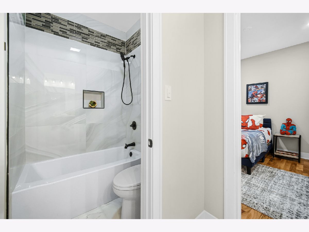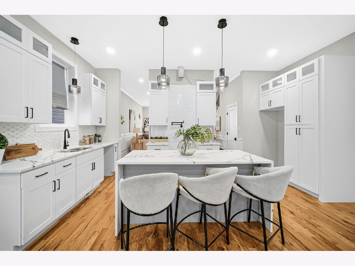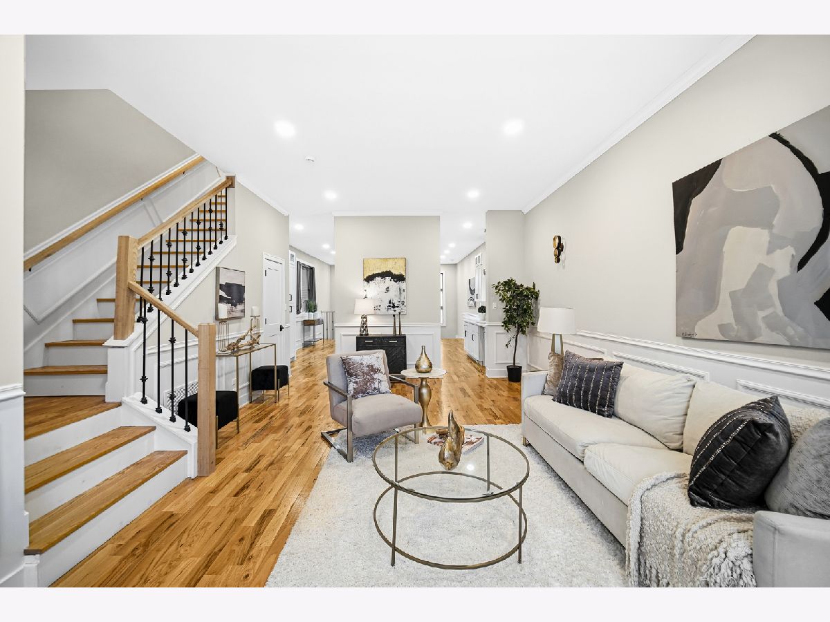 New construction in the historic Bronzeville neighborhood, surrounded by classic greystones and modern homes. This stunning open-concept residence features five bedrooms, four full bathrooms, and approximately 3,400 square feet of thoughtfully designed living space. The primary suite includes a private en-suite bath, while four additional bedrooms offer flexibility for various living needs. The home showcases four full bathrooms for comfort and convenience, along with 10-foot ceilings, oak flooring, crown molding, and expansive windows that flood the space with natural light. Inspired by contemporary design, the chef's kitchen boasts sleek cabinetry, premium stainless-steel appliances, quartz countertops, and a waterfall-edge island-ideal for everyday living and entertaining. The spacious dining area comfortably accommodates intimate dinners or large gatherings. The second level features a luxurious primary suite with walk-in closets and a spa-like bathroom complete with a soaking tub, separate shower, double vanity, and heated floors. Two additional bedrooms share a Jack-and-Jill bathroom, alongside a linen closet and a convenient laundry room with side-by-side washer and dryer. The lower level offers two more bedrooms, a full bath, and a recreation room with a wet bar, perfect for entertaining, a home office, guest quarters, or a private retreat. Completing the home is a generous yard and a two-car garage, providing space for outdoor enjoyment. If you're seeking exceptional craftsmanship, timeless design, and modern luxury, this home delivers on every level.