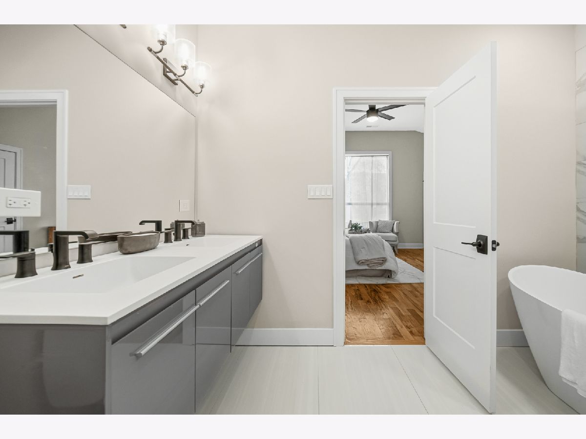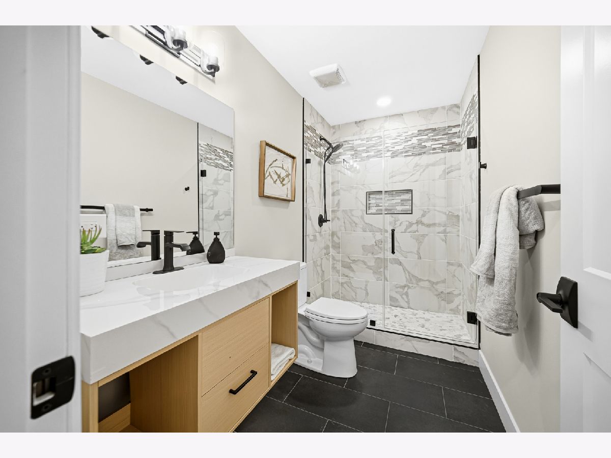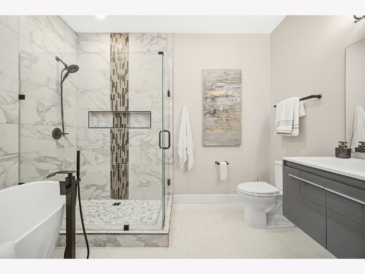 New construction in the historic Bronzeville neighborhood, surrounded by classic greystones and modern homes. This stunning open-concept residence features five bedrooms, four full bathrooms, and approximately 3,400 square feet of thoughtfully designed living space. The primary suite includes a private en-suite bath, while four additional bedrooms offer flexibility for various living needs. The home showcases four full bathrooms for comfort and convenience, along with 10-foot ceilings, oak flooring, crown molding, and expansive windows that flood the space with natural light. Inspired by contemporary design, the chef's kitchen boasts sleek cabinetry, premium stainless-steel appliances, quartz countertops, and a waterfall-edge island-ideal for everyday living and entertaining. The spacious dining area comfortably accommodates intimate dinners or large gatherings. The second level features a luxurious primary suite with walk-in closets and a spa-like bathroom complete with a soaking tub, separate shower, double vanity, and heated floors. Two additional bedrooms share a Jack-and-Jill bathroom, alongside a linen closet and a convenient laundry room with side-by-side washer and dryer. The lower level offers two more bedrooms, a full bath, and a recreation room with a wet bar, perfect for entertaining, a home office, guest quarters, or a private retreat. Completing the home is a generous yard and a two-car garage, providing space for outdoor enjoyment. If you're seeking exceptional craftsmanship, timeless design, and modern luxury, this home delivers on every level.