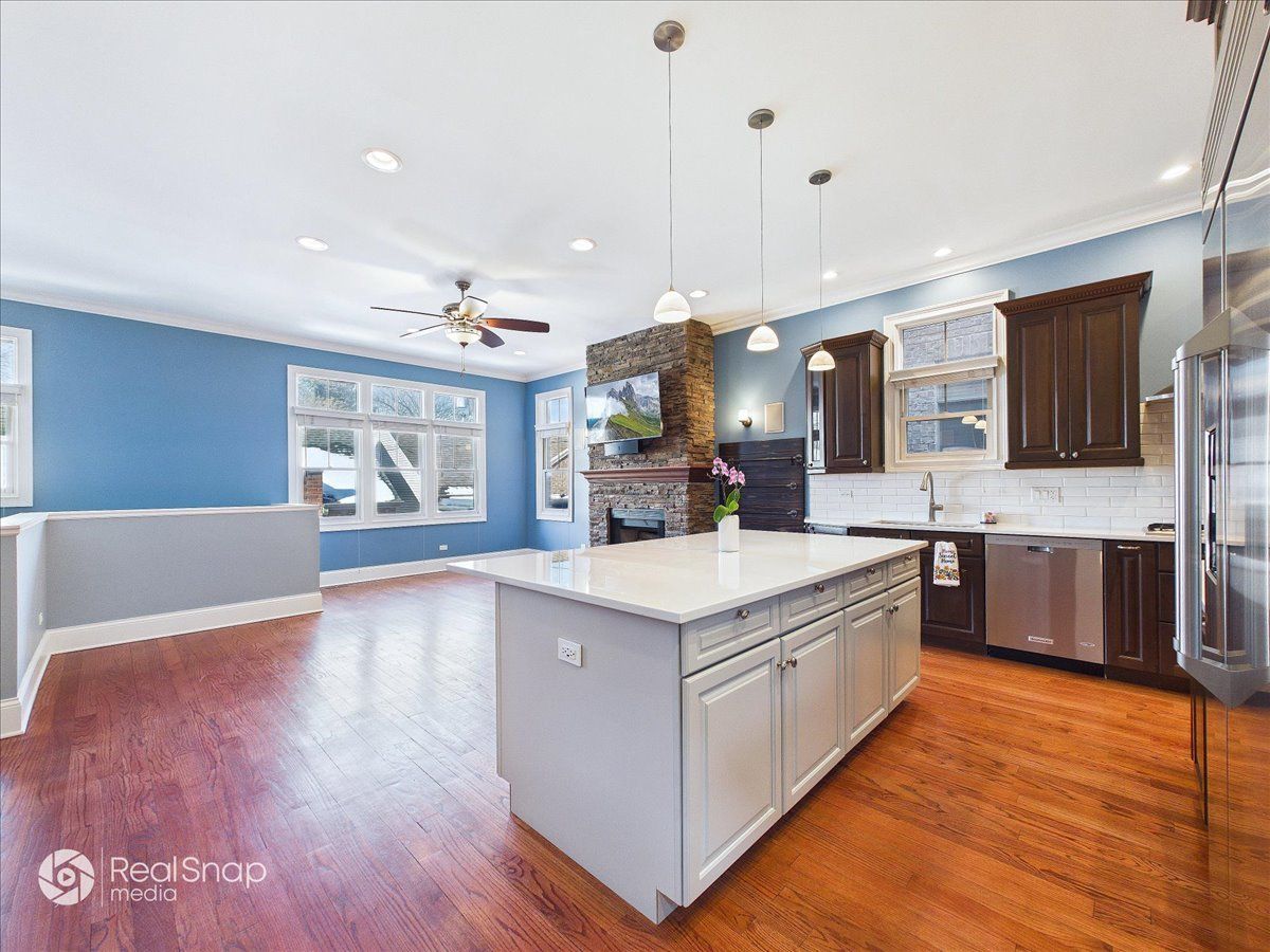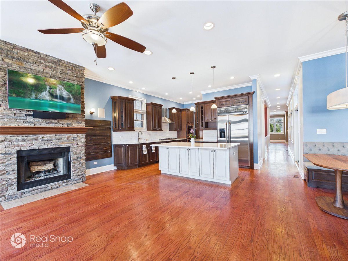This is the home you've been waiting for: full masonry, 5BR/4.2BA, on an oversized 29x152 lot, with the kind of space and storage that changes how you live-plus a true 3-car garage. Right in Ravenswood, with Lincoln Square, Andersonville, and the Loop all within easy reach. Outside is dialed in for how people actually use outdoor space: four composite decks/porches (front porch, upper-level porch, side deck off the kitchen with natural gas hookup, and a private deck off the primary), fenced & gated front and back yards, sprinkler system, and a 7-person Sundance Optima 880 hot tub-purpose-built outdoor space you'll actually enjoy. Inside, it lives big because it's built big: 10' ceilings on the main level and a dramatic 14' ceiling upstairs, hardwood floors, crown molding, custom window treatments, and natural light throughout. And the layout hits where it matters: the family room off the kitchen becomes the everyday headquarters-anchored by a gas/wood-burning fireplace and in-wall surround sound. The living room brings its own moment with a custom built-in surround framing another gas/wood-burning fireplace. The kitchen is the heartbeat-custom banquette seating, oversized island, quartz counters, and a Monogram appliance suite with double oven-made for real cooking and real gatherings. Upstairs delivers four bedrooms, including a primary retreat with walk-in closets (closet systems), steam shower + whirlpool tub, and radiant heated floors. The second bedroom is an ensuite with walk-in closet (closet system). Each 2nd-floor bathroom is skylit and finished with radiant heated floors, and the laundry is exactly where it should be-a dedicated 2nd-floor laundry room, no need to carry laundry downstairs. The lower level doesn't feel like "a basement." It's a full-on second act with 10' ceilings, heated floors throughout, a second kitchen with additional refrigerator/dishwasher plus beverage fridge, a bedroom with ensuite and walk-in closet (closet system), and a second laundry/utility room with oversized stainless sink. The rec room delivers a gas/wood-burning fireplace + in-wall surround sound, ready for movie nights, game days, and hosting without trying. Now the mic drop: the 3-car garage-fully insulated with epoxy floors, attic storage with pull-down ladder, slate wall system with cabinets, new doors, and two Level 2 EV charging ports... plus easy in, easy out maneuvering. And the day-to-day is effortless: approximately a 6-minute walk to Ravenswood Metra and Mariano's, two blocks to Winnemac Park, and about a 10-minute walk to the Brown Line. Big home energy. Big storage. A real 3-car garage. All Chicago.