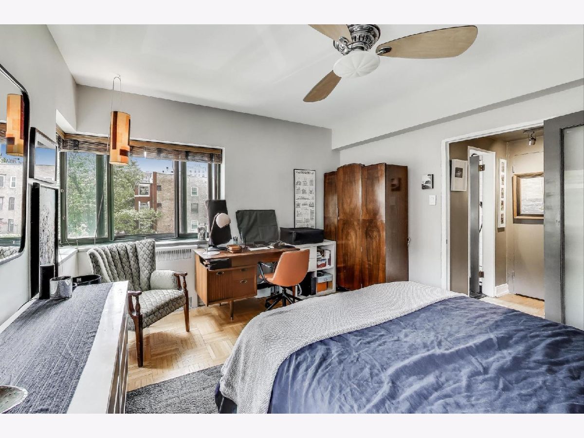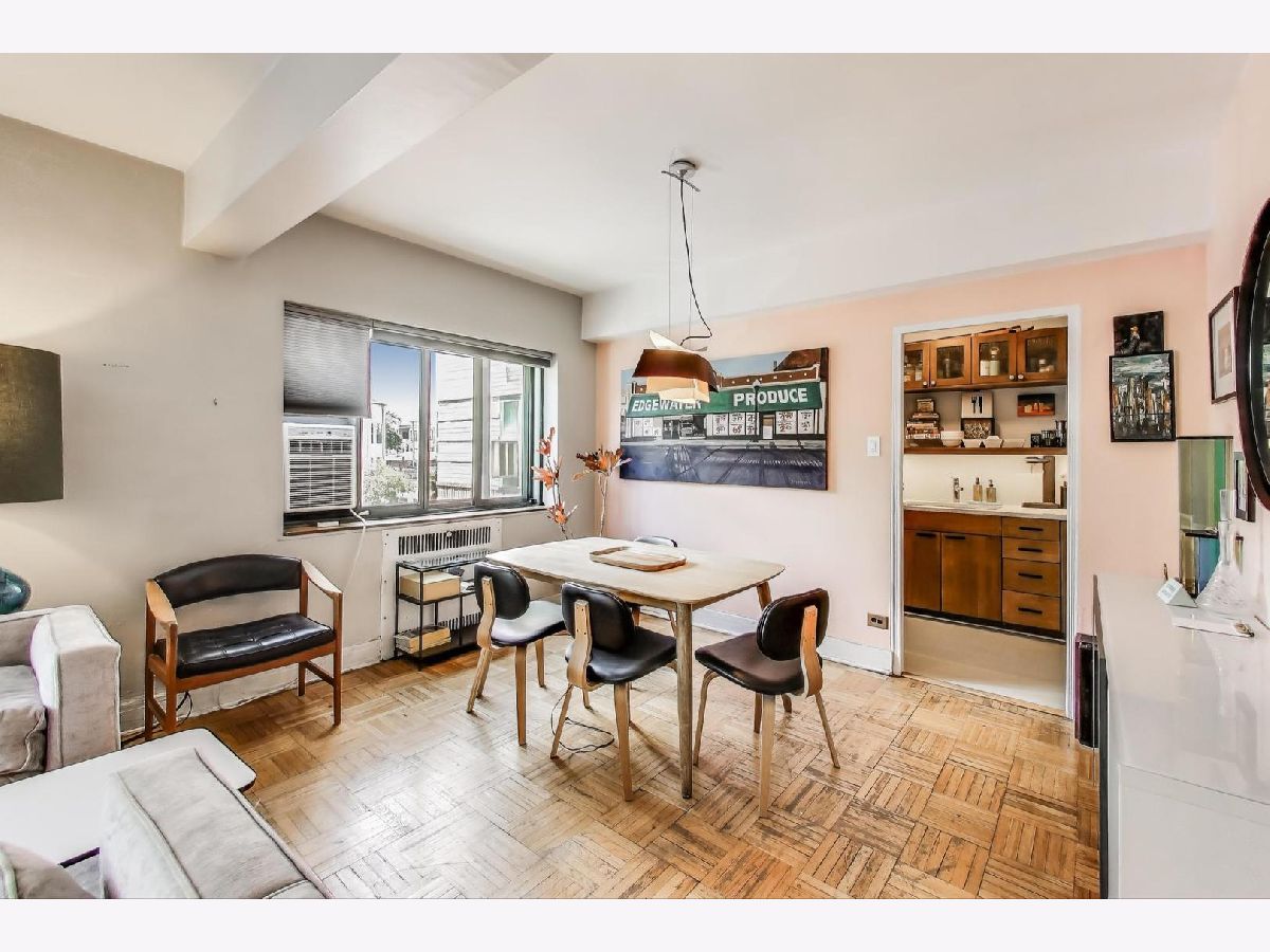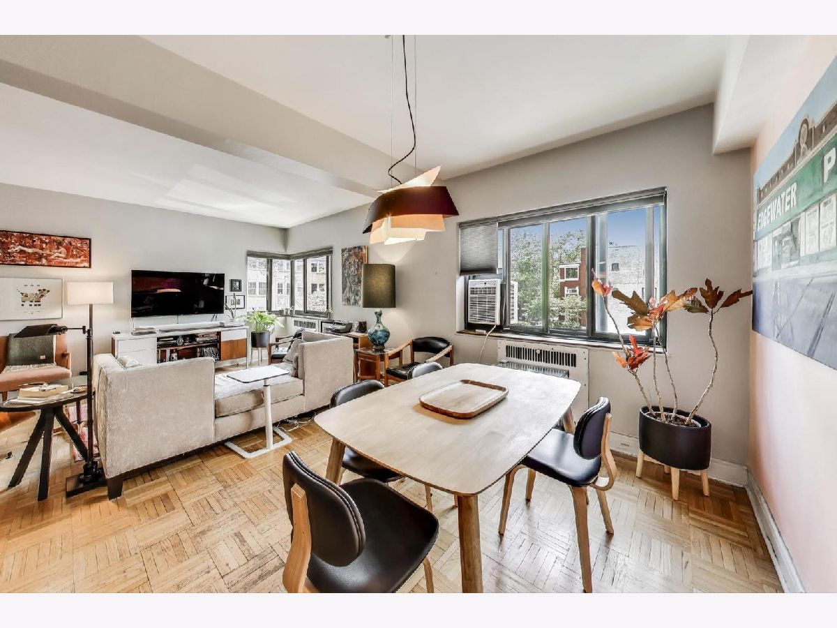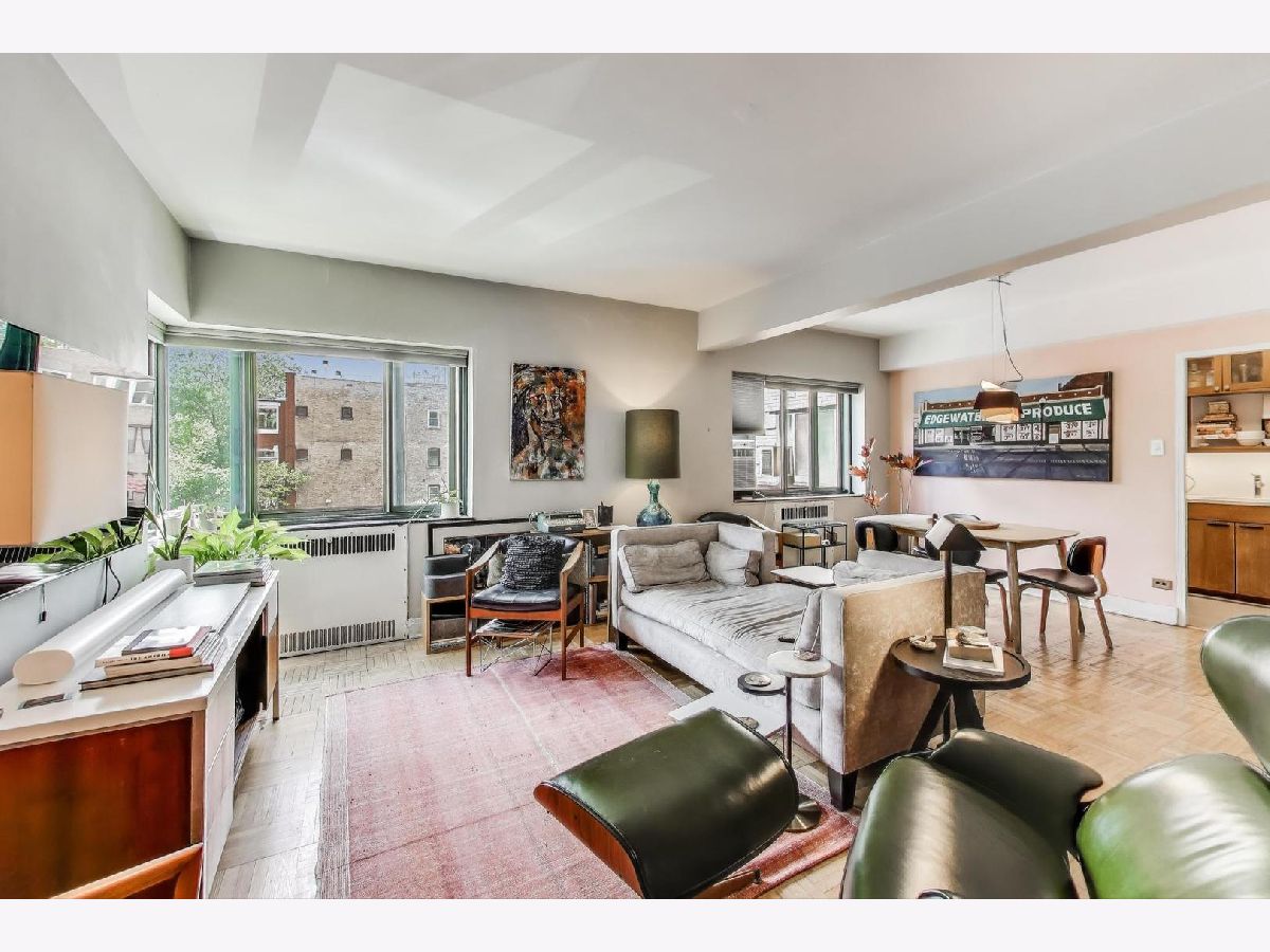 This sought-after south-west corner unit has been beautifully renovated and is flooded with light. The building features a beautifully landscaped and meticulously maintained courtyard with a striking Art Deco fountain. Additional amenities include a doorman (and parcel pick-up), fitness center, party/common room, on-site management, bike room, full-time engineering staff, extra storage, and on-site parking ($155 a month with a waiting list). Steps to express buses (136, 146, 147, & 148), Argyle Red Line, Lake Shore Drive, beaches, & shopping. ($825-HOA Fees cover water, heat, electricity, cable/internet, Doorman, Maintenance, and the Beautiful Courtyard maintenance. Extras are On-site Parking ($155/month currently with an extended wait list) Optional $15/month Fitness Center, $50 annual fee for Bike Registration