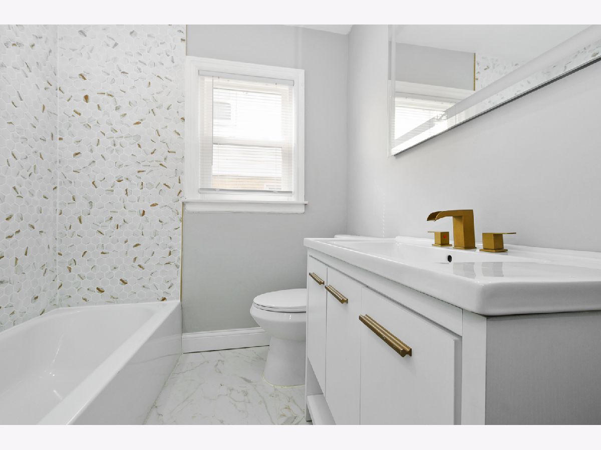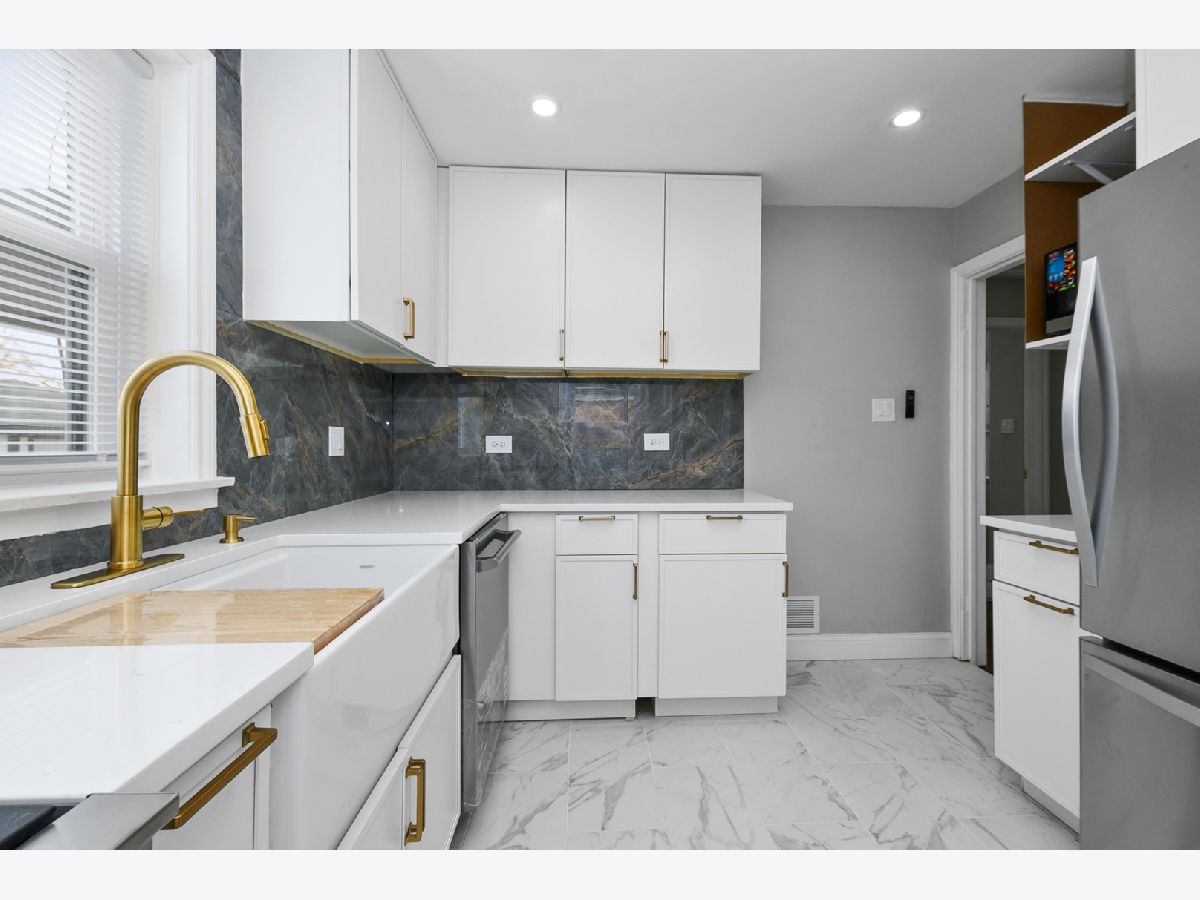 Experience luxury living in Bellwood! This stunning renovation features hardwood floors, recessed lighting, two fireplaces, and a bright, inviting living space. The main level offers two generously sized bedrooms, a modern bathroom, and kitchen with granite countertops, ample cabinet space, and brand-new stainless steel appliances. The finished basement adds even more living space with a family room, a wet bar, an electric fireplace, an additional bedroom, and a spa-inspired bathroom with a shower. Enjoy a fenced backyard with a patio, perfect for summer barbecues, family celebrations, or just relaxing in the sun. There is a side driveway for additional off-street parking and a two-car garage. Conveniently located near expressways, Metra, shopping, and schools.