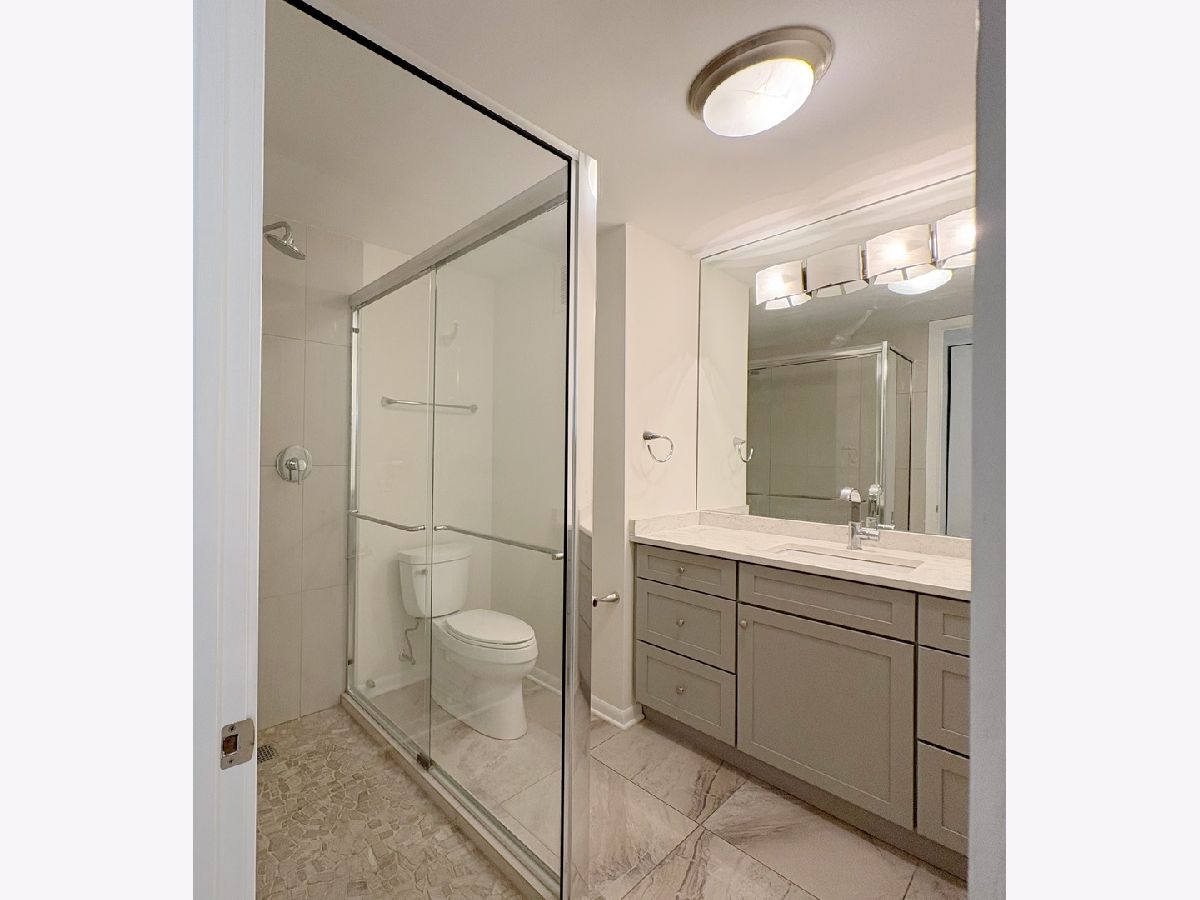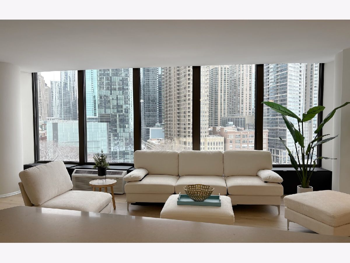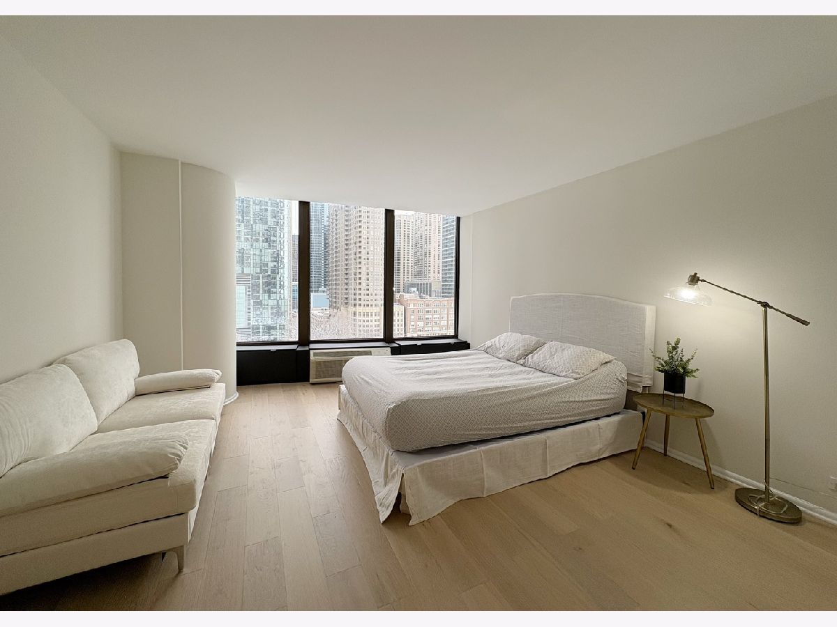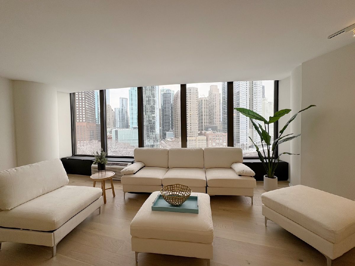 One of a kind 1,100 square foot 1 bedroom, 1 bathroom home at Lake Point Tower, the only residential building east of Lake Shore Drive. The moment you walk in you are greeted by a vast and welcoming foyer with coat closet and designer tile separating the living areas. As you stroll into the main living quarters, the stunning windows that run along the entire West, North and East of the home deliver views that Chicago is so famous for, the city skyline with greenery below and Lake Michigan to the side are all visible from your home. Day or night the views will continue to take your breath away! This home is beautifully remodeled & upgraded with brand new waterproof Oak/Hickory veneer hardwood flooring throughout the living room, dining room and bedroom. The home is freshly painted with a warm white tone paint color and the kitchen features gleaming gray Quartz counter tops, designer tiles, white shaker cabinetry, stainless steel appliances, custom lighting. The bathroom has a walk-in shower adorned with modern tiles and mosaic floor. Generous sized bedroom with large walk in closet. The building itself has it all! Like a little city of its own, it features amenities that include a 2.5-acre private park on the third floor that holds a newly redone outdoor pool area, grills, water falls, pond & children play area; indoor pool, hot tubs, racket ball/basketball court, state of the art work out room, community room, business center, 24 hr. door person, cleaners, laundry facilities, bike room, indoor children's playroom, small convenient shop, storage lockers and beauty salon. Minutes to Navy Pier, cinemas, restaurants, Northwestern Hospital, Post office, whole foods and Target.