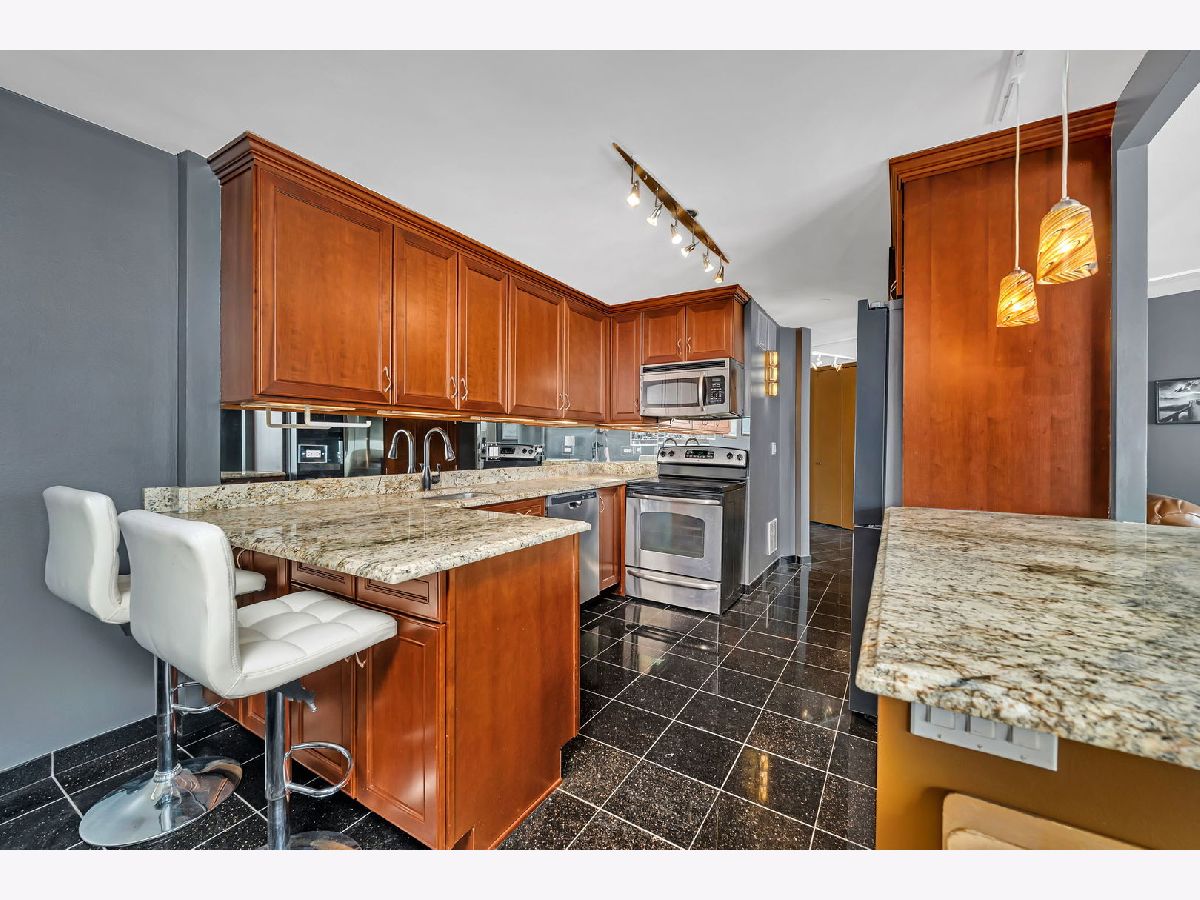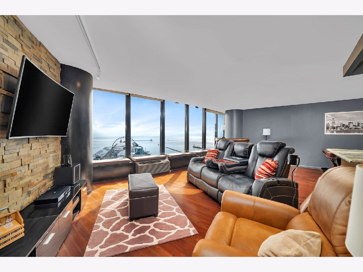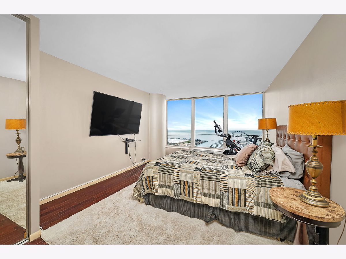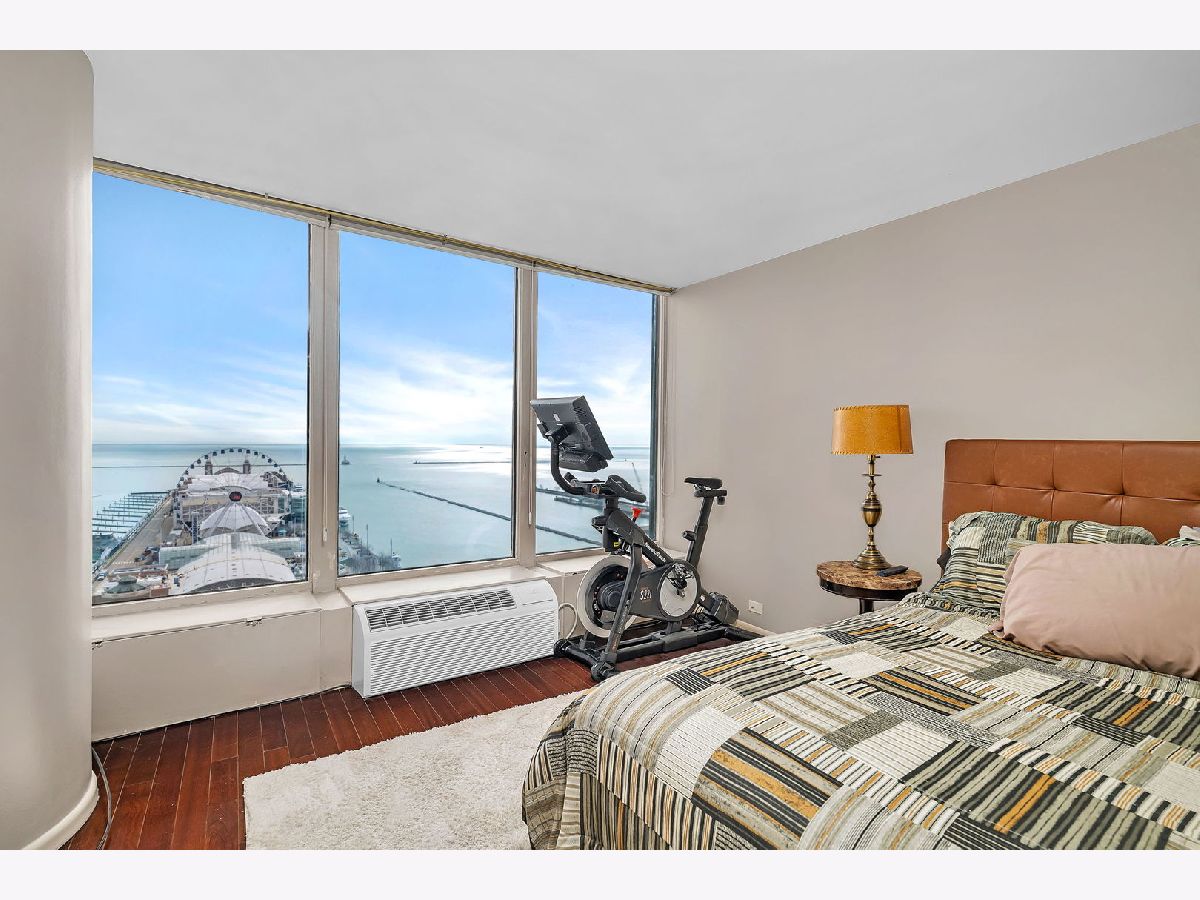 Imagine relaxing or entertaining in your Living Room (enhanced by surround sound) or waking up in your spacious Bedroom to full sunrise views of Navy Pier and the gorgeous Chicago Lakefront! All summer long, you can enjoy the spectacular fireworks displays, boat parades, stunning Tall Ships when they come to town AND the world renowned Chicago Air & Water Show! Located on the 24th floor of prestigious Lake Point Tower, this Luxury 2 Bedroom, 2 Bath condo boasts views from nearly every window AND includes a 2 car tandem garage parking space & double storage unit! Comfortable elegance is revealed by its numerous updates, including hardwood flooring throughout, granite countertops in the striking Kitchen & Baths plus a full suite of upgraded appliances highlighted by a brand new Samsung Bespoke smart refrigerator. Other bonus conveniences include in-unit washer & dryer (a rare find in this building), remote controlled electronic blinds plus newer PTAC & new HVAC units. As if the views & unit itself were not enough, your resort style living will be enriched by the building's amenities which include: Indoor & Outdoor Pools, Expansive Landscaped Park & Garden, $1M Spa and Health Club w/Racquetball Court & Yoga Studio, Fully equipped exercise facility, Resident Lounge w/Kitchen & Pool Table and Fully Equipped Business Center with Computers & Printers! Even Valet Parking is available for an additional fee. The HOA fee covers water, cable, internet & full access to all building amenities. This is a rare opportunity to own a Luxury Condo with spectacular panoramic views, premiere amenities AND garage parking in one of Chicago's most iconic buildings. Once you experience this amazing home, you'll be excited to call it your very own!