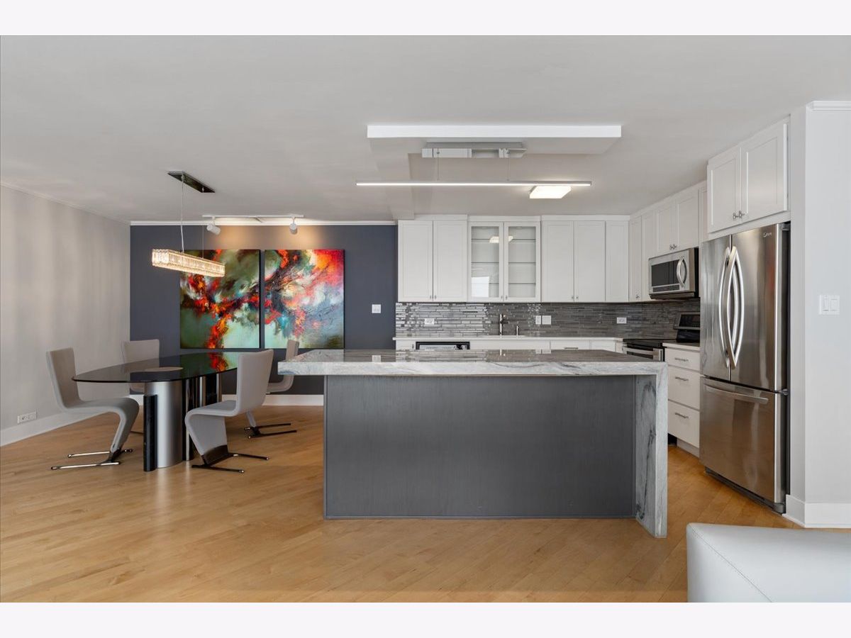 Magnificent Views!!! Come home to this amazingly updated LUXURY DESIGNER HOME. This 2 bed + 2 bath home located on the 45th floor is bright & airy with rare endless LAKE & CITY VIEWS from every window, and breathtaking sunsets with the city skyline shining through the night. This spacious floor plan features hardwood floors, a large living room perfect for entertaining or a zen retreat. A stunning chef's kitchen with custom cabinetry, large waterfall island, and stainless steel appliances, which flows seamlessly from the dining room. A large guest bedroom that can also become an in home office. The guest bathroom was recently renovated with all high end finishing to the smallest detail. A huge primary bedroom with a spa-like bath ensuite. ALL remote control modern window treatments, Convenient in-unit laundry. Abundance of closets throughout. Energy efficient tankless water heater. Storage locker included. The living room attached TV, sound bar, and TV stand are included. Walk or bike along Lake Michigan, soak in the sun on Ohio St Beach, enjoy restaurants, and shops on Michigan Ave, easy public transportation, Convenient grocery store all with-in steps from your door. This is truly a full amenity building with 24-hr door staff, health club, indoor & outdoor pool, 2.5 acre park with a BBQ area, business center, and much more. Pet friendly building. Parking available. Seller is a Lic Real Estate Broker.