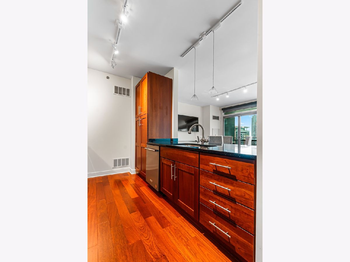 Bright South-Facing Condo with Lake, River & Skyline Views in the Heart of Streeterville Soaked in natural light, this high-floor south-facing home offers sweeping views of the lake, river, and iconic Chicago skyline through expansive floor-to-ceiling windows. The open layout features cherry hardwood floors, cherry cabinetry, a stainless-steel kitchen with 42" cabinets, a large pantry, and a breakfast bar perfect for casual dining or entertaining. The spacious bathroom includes a double-bowl vanity, whirlpool tub, and separate shower. Additional conveniences include an in-unit washer/dryer and generous storage throughout. Located in a premier full-amenity building, residents enjoy an outdoor pool, hot tub, sundeck, fitness center, community room, renovated resident lounge, theatre room, bike room, storage, and 24-hour door staff with on-site management. Perfectly positioned in the vibrant Streeterville neighborhood, you're moments from Whole Foods, world-class dining, shopping, entertainment, and the lakefront-offering the ultimate urban lifestyle.