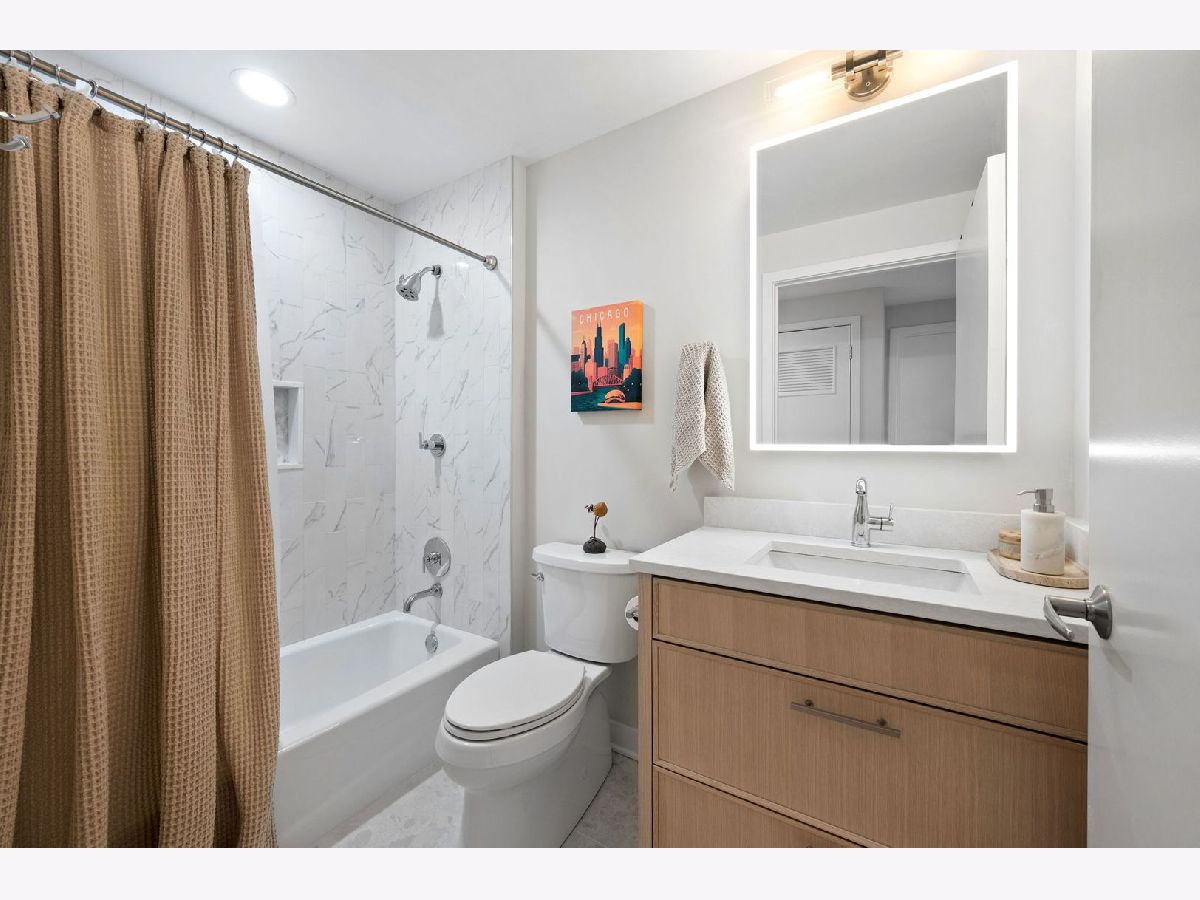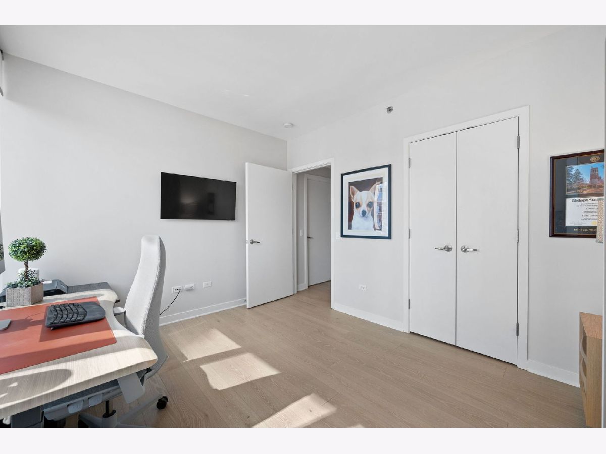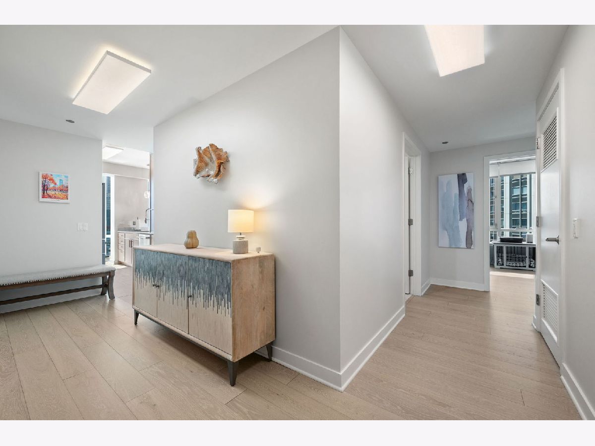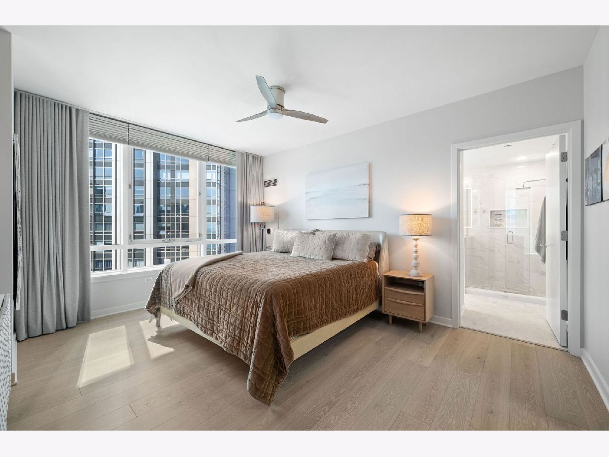 Totally renovated and reimagined 37th-floor residence at ParkView Condominiums, showcasing modern, fresh finishes throughout-truly no detail overlooked. From the moment you enter, you're welcomed by the smooth, seamless flow of wide-plank whitewashed flooring that carries throughout the home. A gracious gallery foyer provides the perfect space for an entry console or to showcase your favorite artwork. The chef's kitchen is a standout, featuring all-new cabinetry, a thoughtfully designed pantry, GE Cafe Series designer appliances, quartzite countertops, a chef's faucet, and under-cabinet lighting-perfectly blending style and functionality. The expansive corner living and dining area is flooded with natural light and framed by stunning south, east, and west exposures, offering breathtaking views of the lake and skyline. Floor-to-ceiling windows with automated roller shades complete this ideal space for both relaxing and entertaining. The thoughtfully designed layout places both bedrooms in a private wing of the home. The second bedroom includes a built-in Murphy bed, making it ideal for guests or a work-from-home setup. The spacious primary suite features a wall of windows with custom window treatments, a ceiling fan, and a fully built-out walk-in closet. The spa-inspired primary bath is finished in elegant stone and includes dual vanities, lighted mirrored medicine cabinets, a separate tiled shower, and a Jacuzzi tub, all complemented by a large window with an automated shade. This home has been fully customized with upgraded lighting and smart home automation throughout, offering a truly move-in-ready experience with exceptional attention to detail. ParkView Condominiums is a professionally managed, full-amenity building featuring 24-hour door staff, an exercise room, hospitality suite, conference room, bicycle storage, and an outdoor pool with sundeck. Ideally located adjacent to Bennett Park with a dog park, and just steps to the lakefront, Target, Whole Foods, and an abundance of shopping and dining options. Convenient to Northwestern Medical Campus. Non-smoking building. Deeded parking available for an additional $40,000.