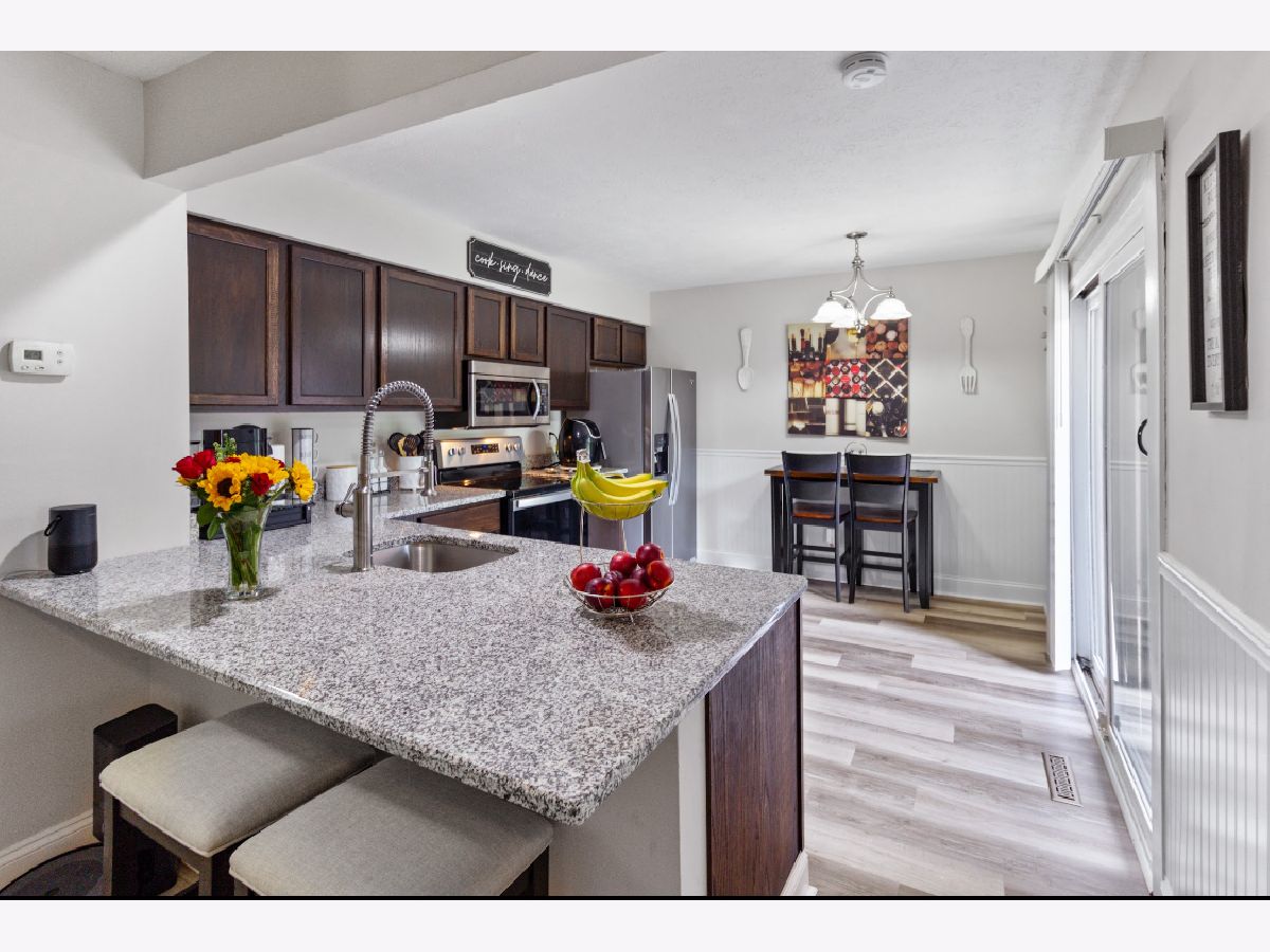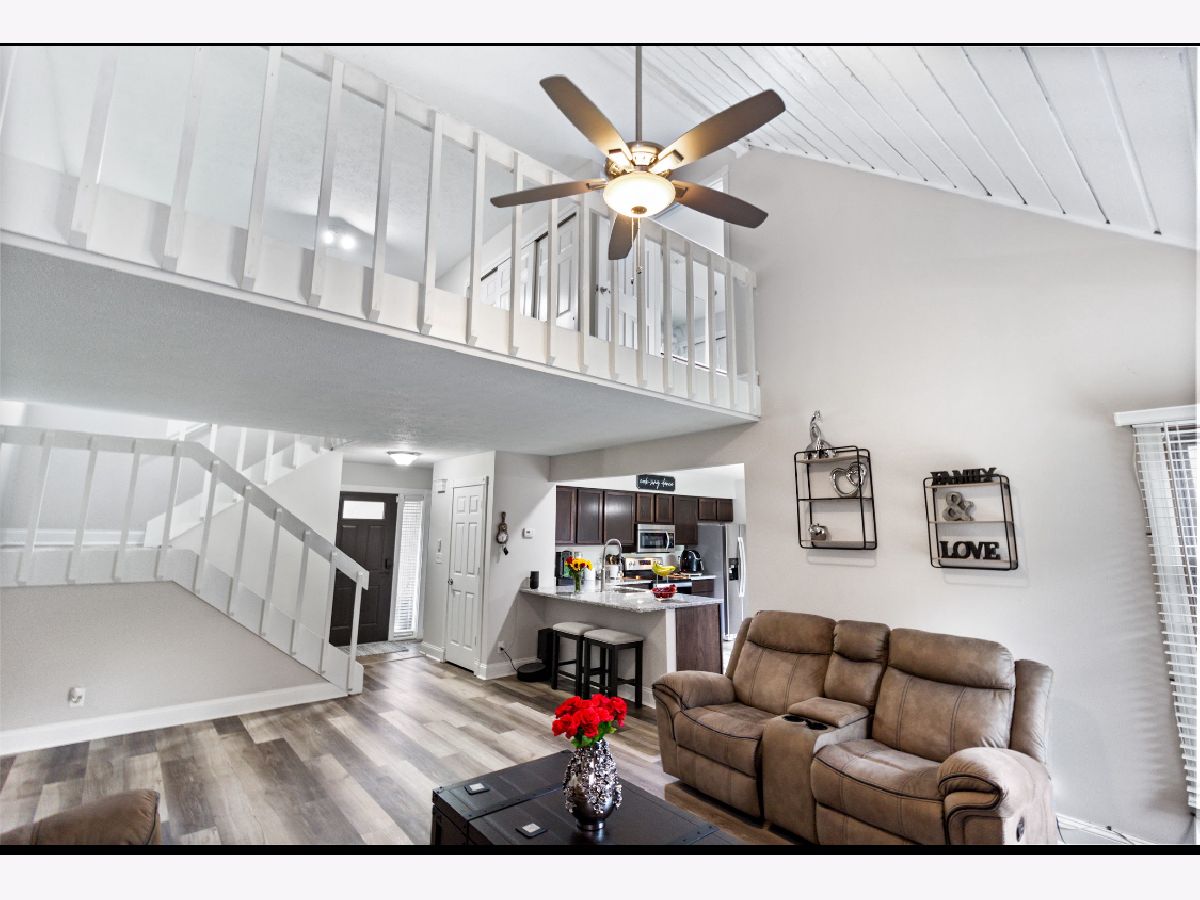 Welcome to this charming 2-bedroom, 2-bath condo townhouse in Loves Park-spanning 1,744 square feet with a distinctive loft-style layout. This meticulous home boasts open cathedral ceilings, a cozy fireplace, and a breakfast bar, complemented by a loft area that overlooks the living space. The main floor includes convenient laundry and direct access to your own garage, while the private patio offers serene views of a tranquil pond.