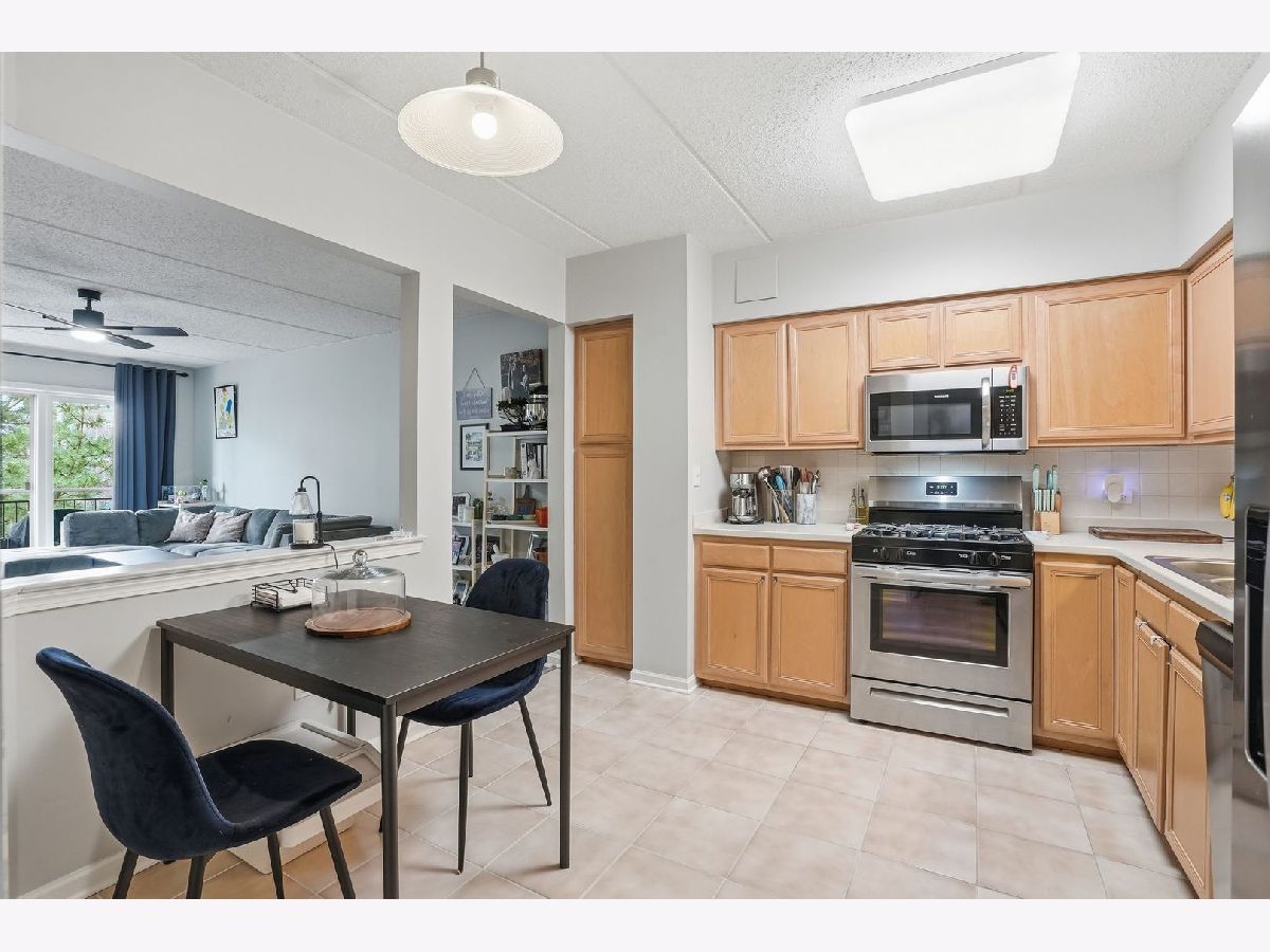 Welcome to this updated 2-bedroom, 2-bathroom condo in the desirable Madison Place community. The bright eat-in kitchen features stainless steel appliances, along with generous cabinet and counter space. The open living/dining area showcases wood laminate flooring and sliding glass doors that lead to a private balcony with serene treetop views-perfect for relaxing or entertaining. Large windows provide abundant natural light in both bedrooms. The spacious primary suite includes a walk-in closet and a private ensuite bathroom with a shower. Additional highlights include: In-unit washer/dryer, Indoor heated garage parking space (#43) and Secure storage unit. Tastefully updated lobby and mailroom, Pet-friendly elevator building. Monthly assessment covers heat, water, cable, and exterior maintenance. Ideally located in downtown Skokie with easy access to the train, buses, schools, parks, dining, cafes, shopping, entertainment, Skokie Public Library, Village hall and post office. Rentals are allowed with cap, making this a great opportunity for homeowners and investors alike.
