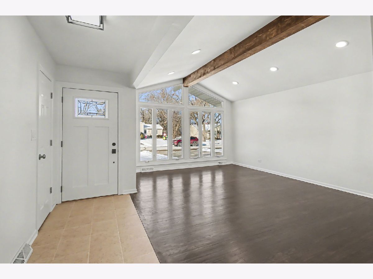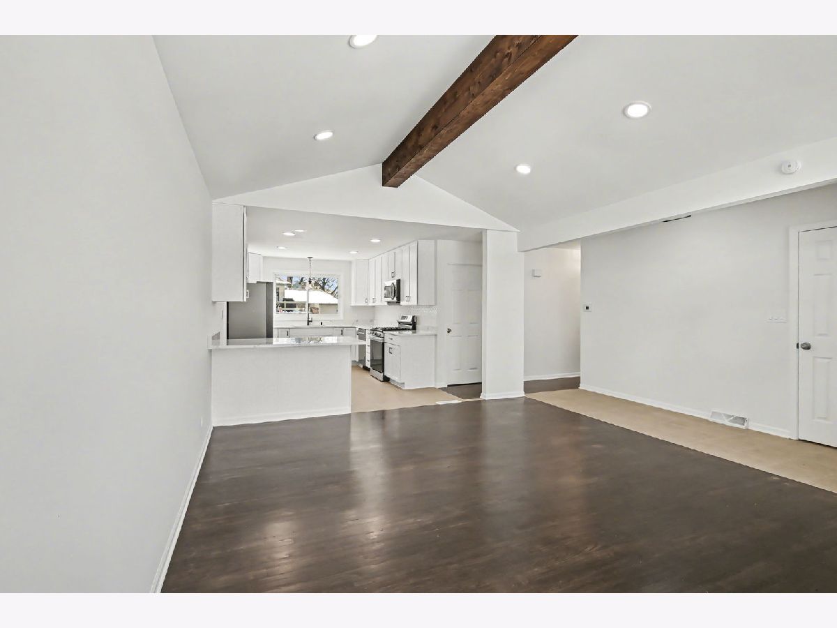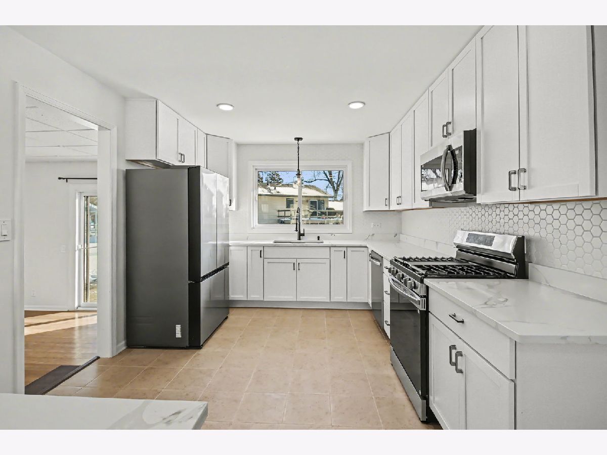 Beautifully rehabbed ranch home showcases modern colors, high-end fixtures, and thoughtful design throughout. This move-in-ready home features a stunning open-concept floor plan with a vaulted ceiling & recessed lighting in the living room leading into the gorgeous kitchen, creating a bright and spacious atmosphere ideal for everyday living and entertaining. The brand-new kitchen offers sleek finishes, breakfast bar, contemporary 42" cabinetry, stainless steel appliances, and quartz counters. The dining room can also be used as a flex room...you decide. Be prepared to love the renovated bathrooms with beautiful tile work, sleek fixtures, and modern details. A full basement has been finished to provide a generous additional living space, perfect for a family room, a bedroom or office, and a separate laundry room. Outside, you'll find a spacious back yard with a brick patio and a fenced yard. Drive up to the new and beautiful brick paver driveway. Ideally located in a desirable neighborhood near three scenic lakes, this home combines comfort, style, and an exceptional setting. You'll appreciate the pride and quality workmanship all throughout. This home is a must see!