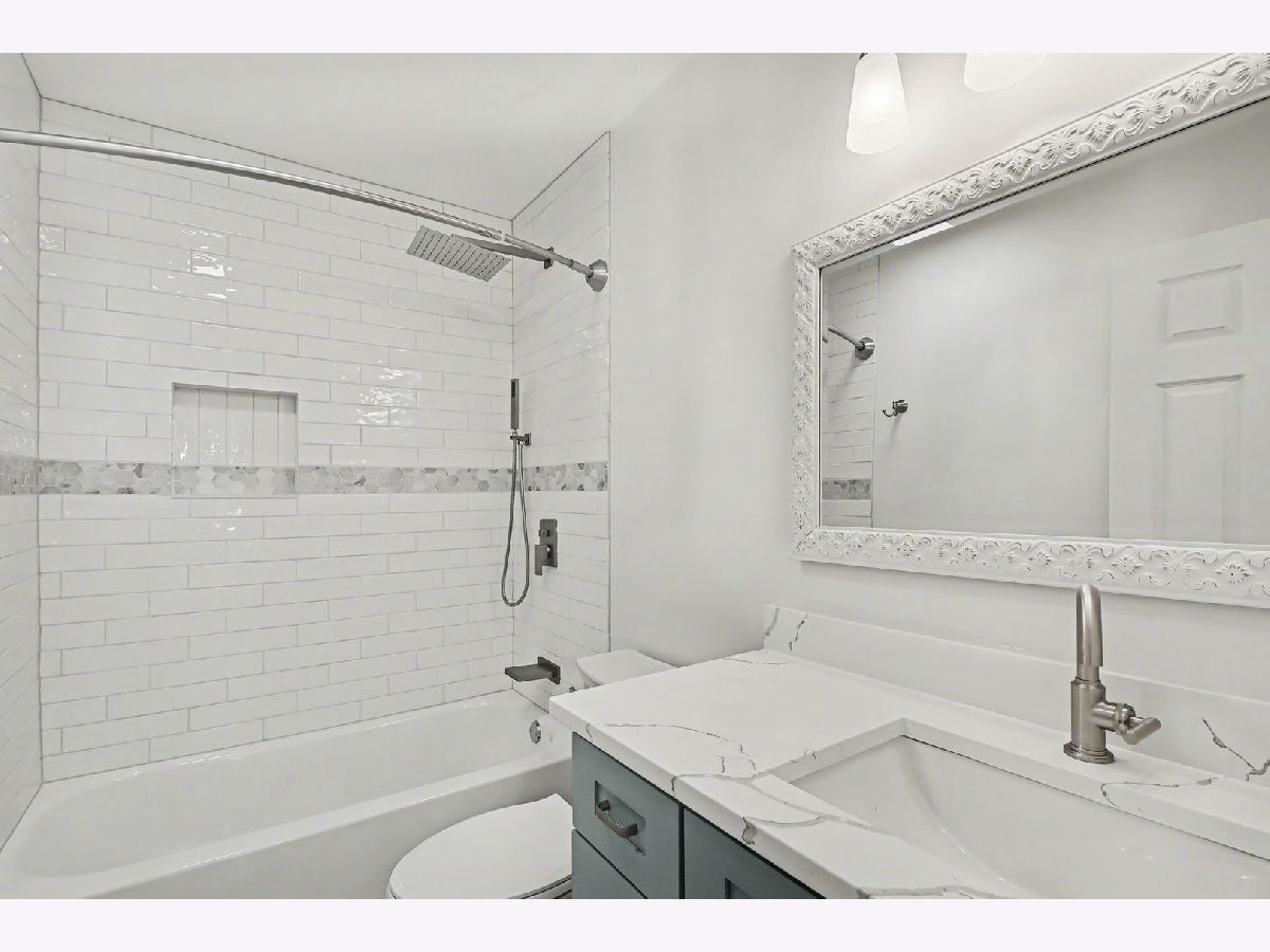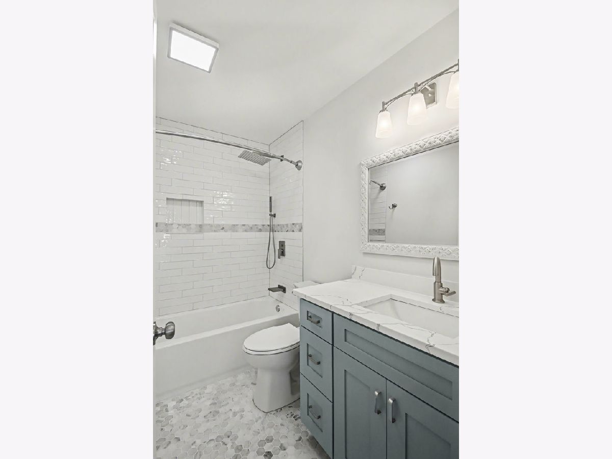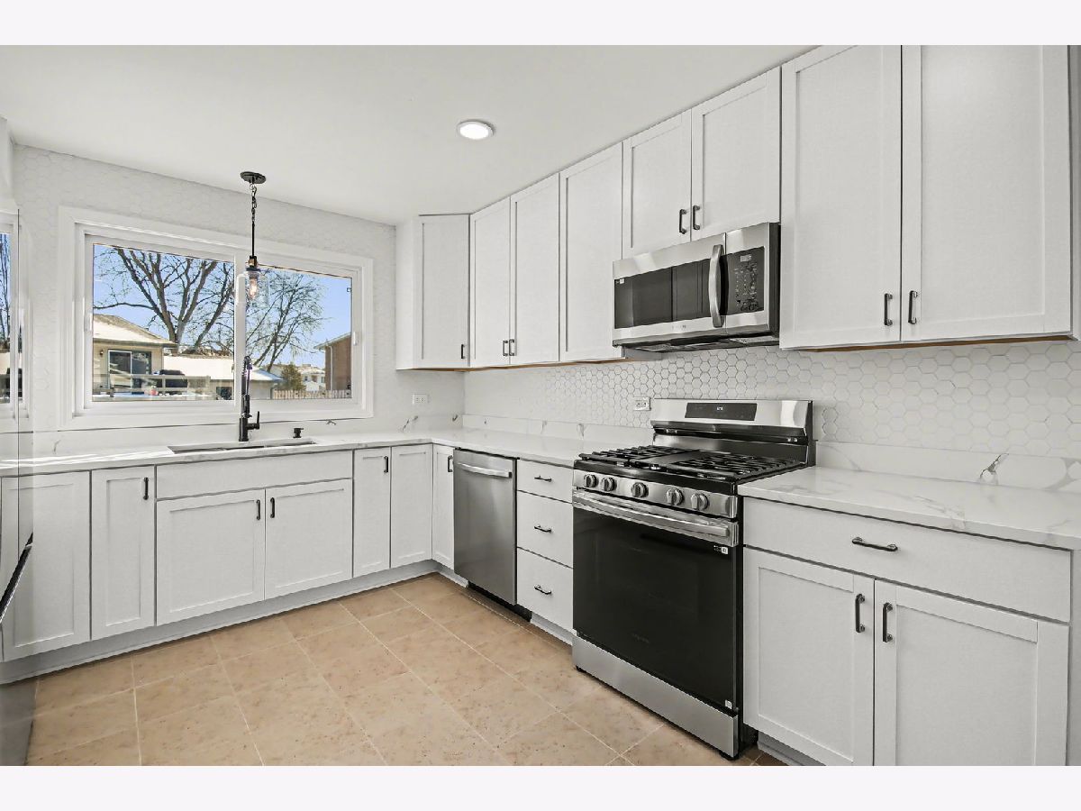 Beautifully rehabbed ranch home showcases modern colors, high-end fixtures, and thoughtful design throughout. This move-in-ready home features a stunning open-concept floor plan with a vaulted ceiling & recessed lighting in the living room leading into the gorgeous kitchen, creating a bright and spacious atmosphere ideal for everyday living and entertaining. The brand-new kitchen offers sleek finishes, breakfast bar, contemporary 42" cabinetry, stainless steel appliances, and quartz counters. The dining room can also be used as a flex room...you decide. Be prepared to love the renovated bathrooms with beautiful tile work, sleek fixtures, and modern details. A full basement has been finished to provide a generous additional living space, perfect for a family room, a bedroom or office, and a separate laundry room. Outside, you'll find a spacious back yard with a brick patio and a fenced yard. Drive up to the new and beautiful brick paver driveway. Ideally located in a desirable neighborhood near three scenic lakes, this home combines comfort, style, and an exceptional setting. You'll appreciate the pride and quality workmanship all throughout. This home is a must see!