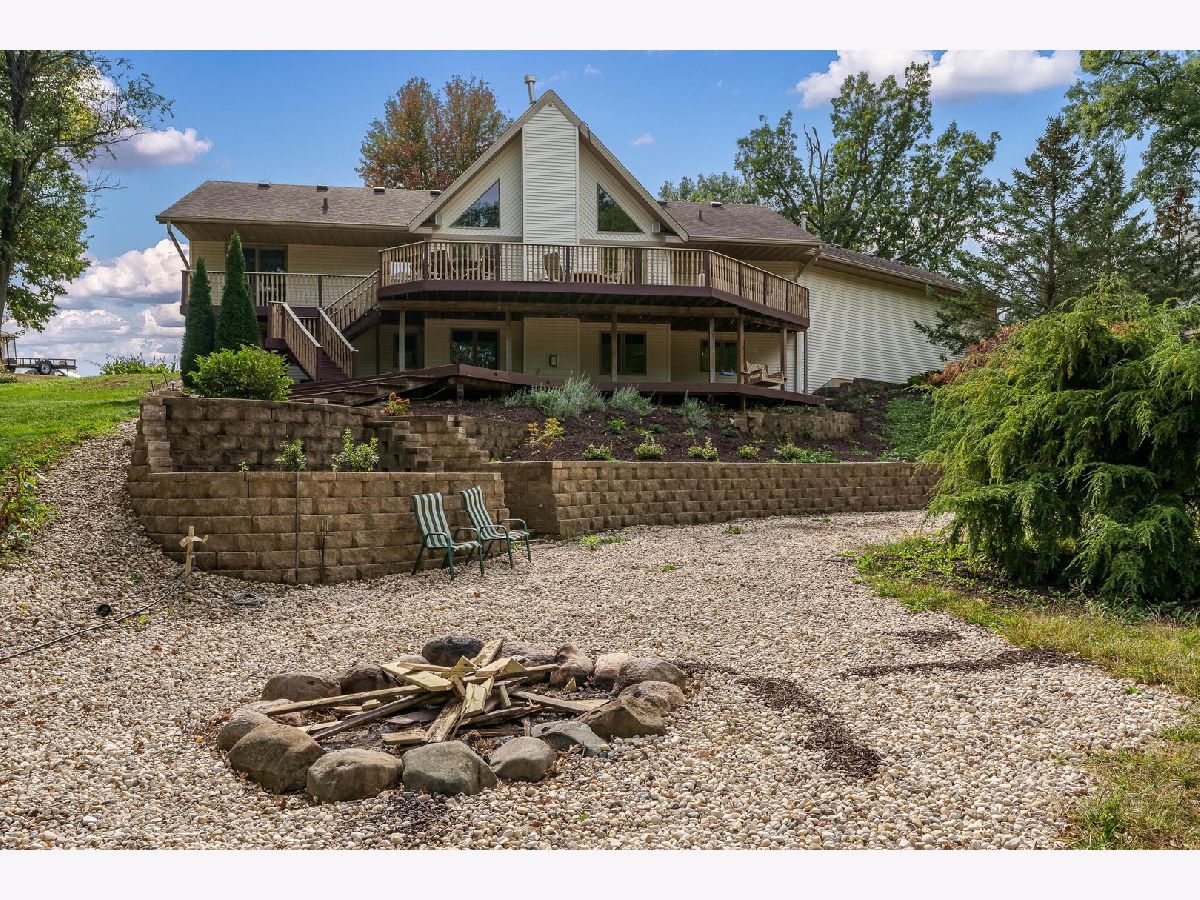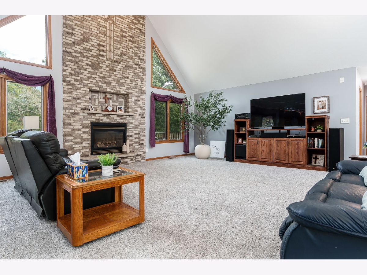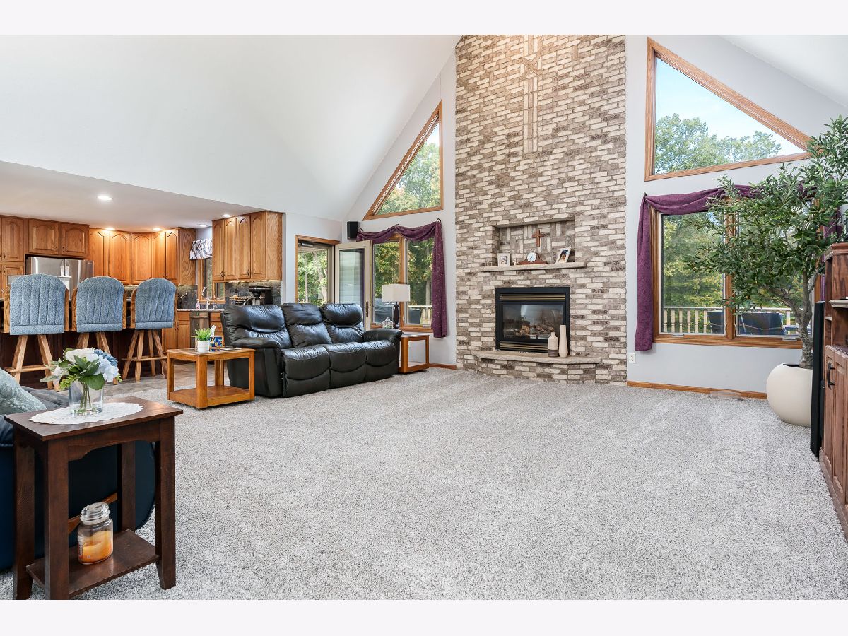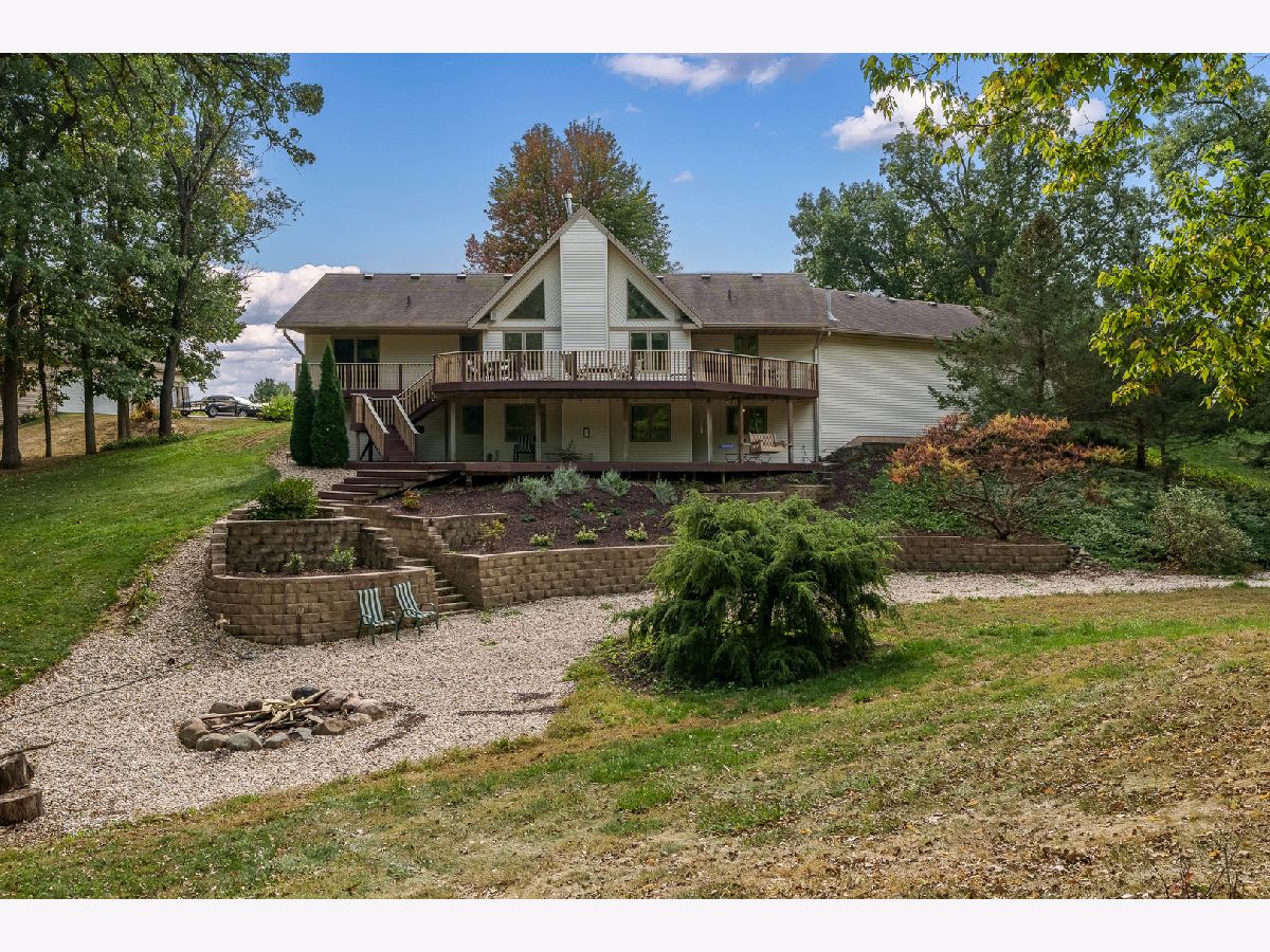 Pride of ownership shines in this one-owner, custom-built home nestled on 2.26 acres of peaceful, landscaped grounds. Features soaring vaulted ceilings, abundant transom windows, and a stunning floor-to-ceiling brick fireplace that anchors the great room. The spacious kitchen offers warm oak cabinetry, a convenient breakfast bar, and plenty of room for cooking and entertaining. The primary suite is a true retreat with a large walk-in closet and an en-suite bath. The fully exposed, finished lower level adds approximately 1,500 square feet of living space, featuring a cozy family room with a second fireplace, two additional bedrooms, and a full bath-perfect for guests or multi-generational living. Enjoy the outdoors from the multi-tiered deck overlooking the landscaped yard, complete with an invisible pet fence. This property offers the perfect blend of comfort, craftsmanship, and natural beauty-all just minutes from Rockford's amenities. New bath in 2025, on demand water heater. Garage dimensions 36x26, lots of fruit trees.