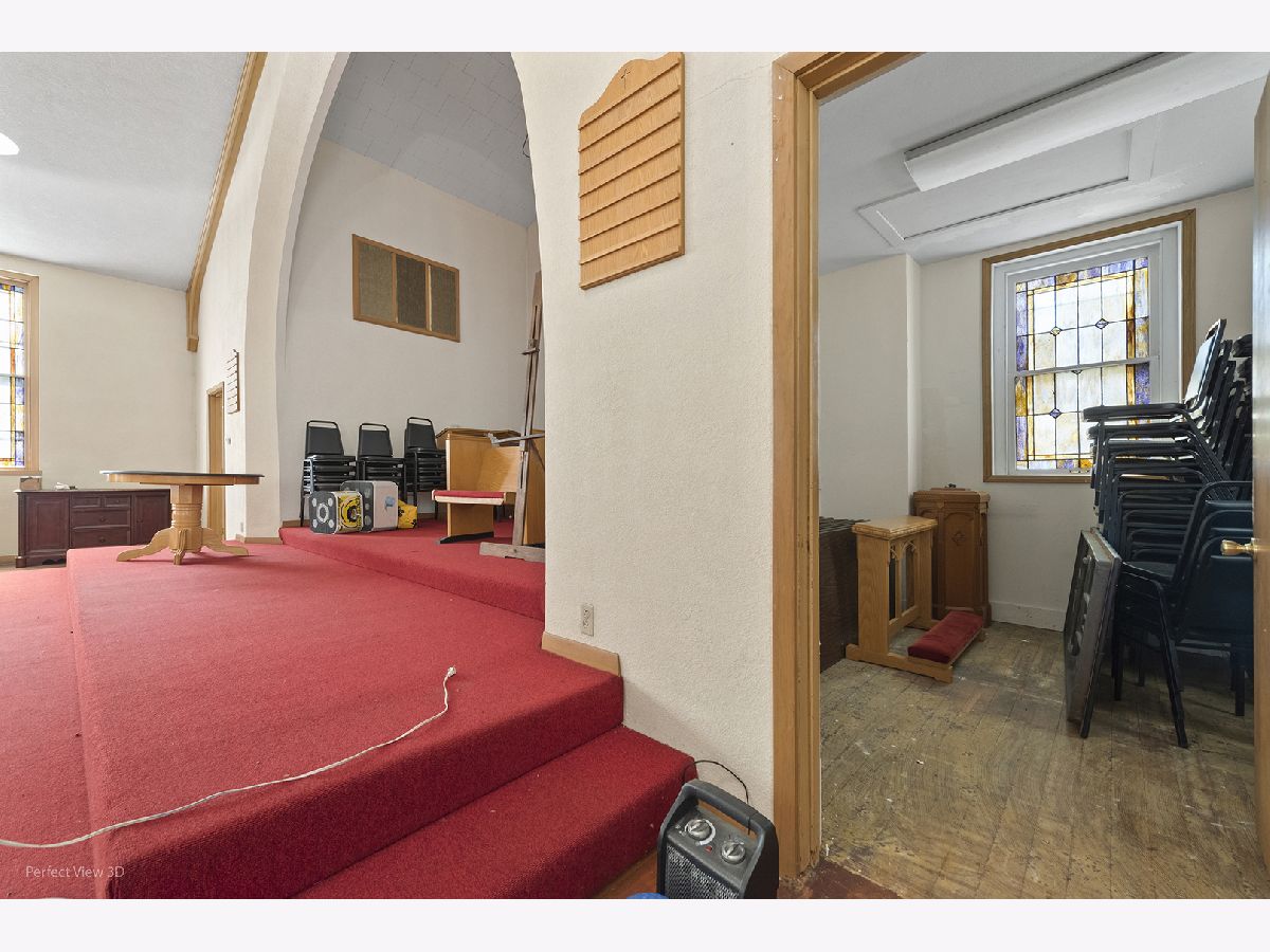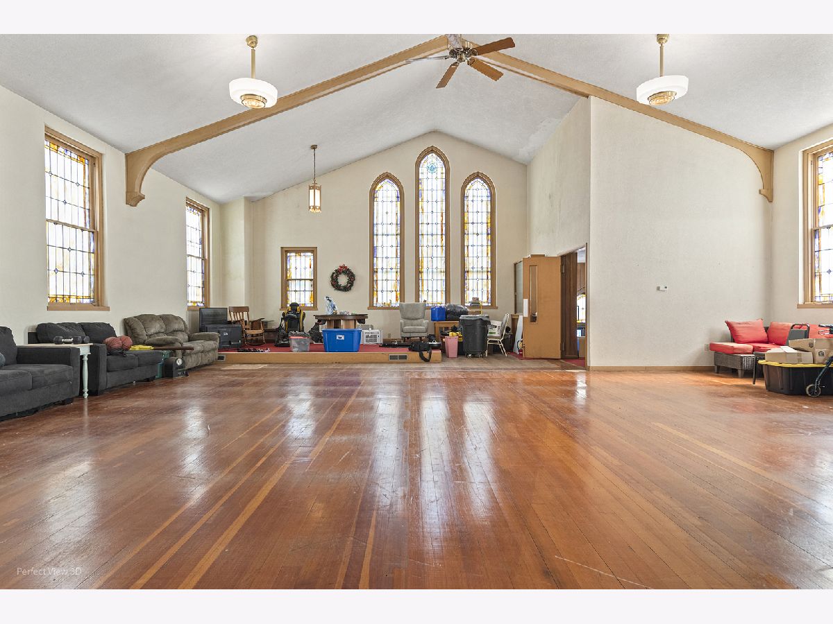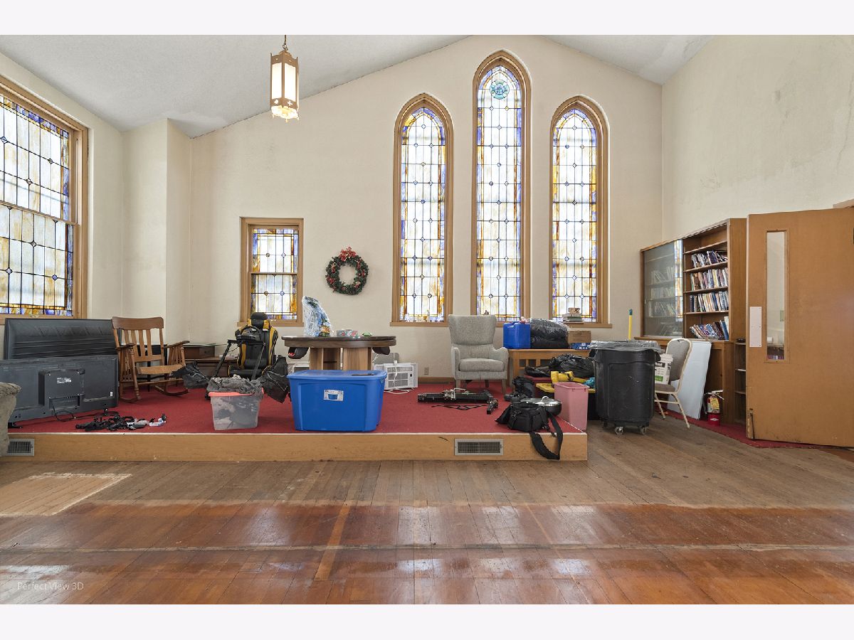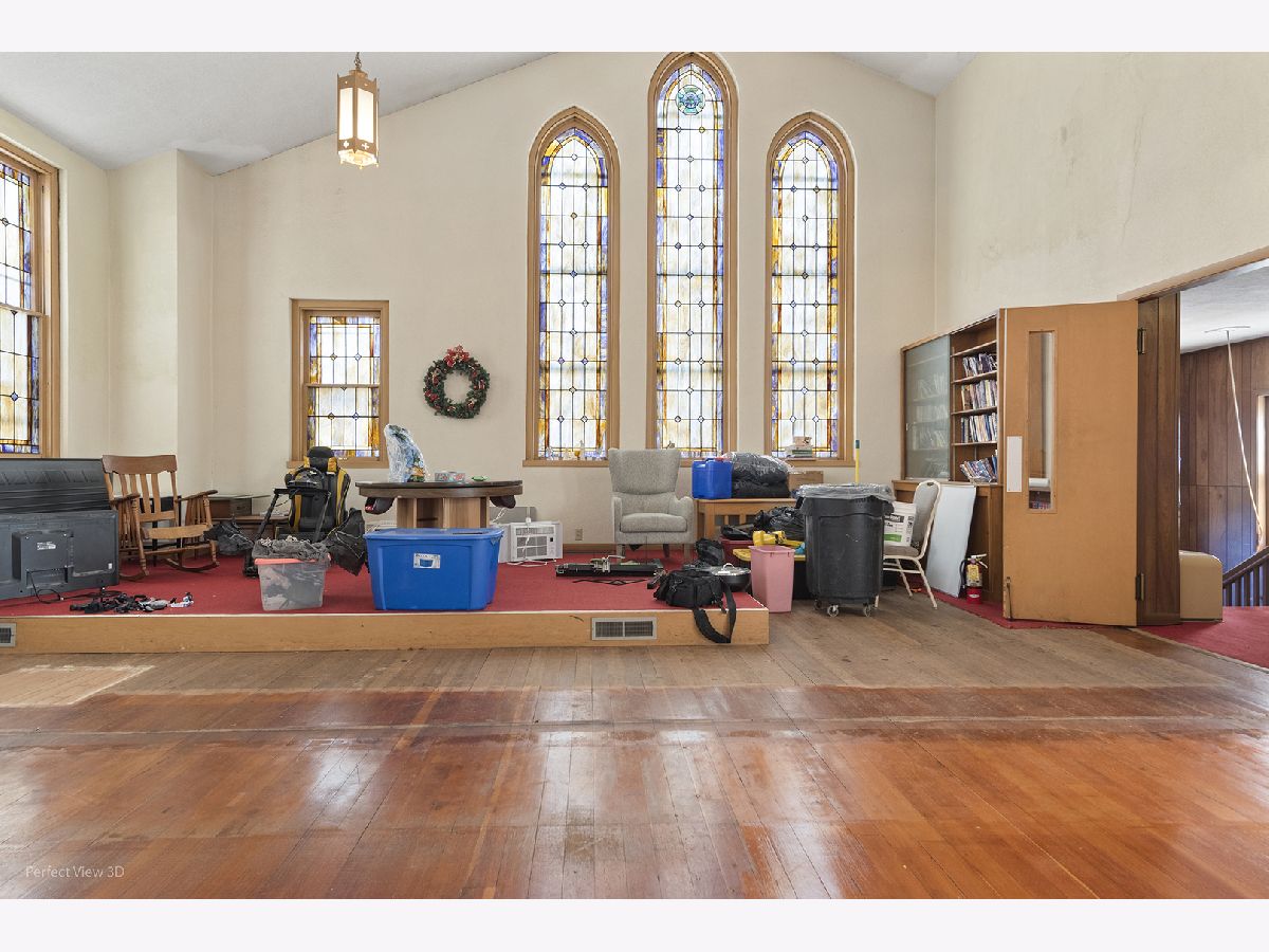 Unique opportunity to own this full brick former church offering over 5,000 square feet of finished space and endless potential. This impressive property features soaring vaulted ceilings, stunning stained glass windows, and beautiful hardwood floors that create a warm and inviting atmosphere. The fully finished basement includes a kitchen and restroom, providing additional flexible space for a variety of uses. Currently zoned single-family residential, this property presents numerous possibilities including conversion to a spacious single-family home, multi-unit apartments, community center, event space, or other creative uses (subject to local approvals). Solid brick construction, character-filled architectural details, and expansive interior space make this a rare find with incredible potential. Bring your vision and transform this one-of-a-kind property into something truly special. LOW PROPERTY TAXES!