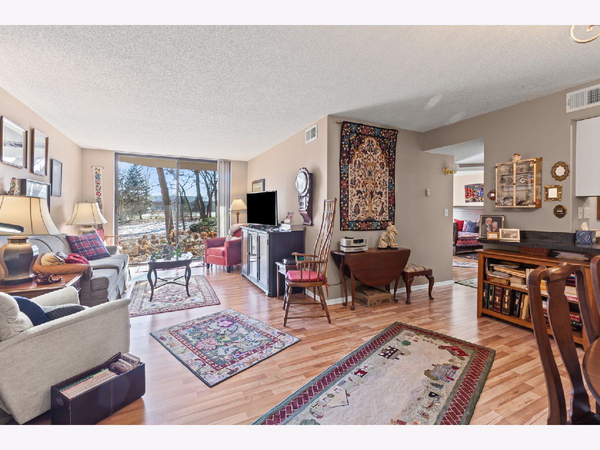 Nestled in the heart of RiverPlace Condominiums-Naperville's premier RiverWalk enclave-this serene 2-bedroom, 1-bath retreat offers a patio with wooded view, in unit laundry room with full sized washer/dryer and laminate flooring throughout. The second bedroom features a murphy bed, built in shelving, and has versatility as home office or hobby room. This sale includes 2 exterior parking spaces and additional storage space #109. The HOA fee covers a comprehensive range of services including gas, electricity, water, basic cable, internet, garbage, and continental breakfast. You'll also have access to a fully equipped fitness center, snow removal, landscaping, and maintenance of both interior and exterior common areas. Enjoy social gatherings in the beautiful Pavilion-Party Room, which boasts a large deck overlooking the River Walk and Carillon, perfect for private events or community meetups. Located on Naperville's celebrated River Walk, just a short stroll from vibrant downtown, this home offers easy access to top-tier shops, restaurants, local events, schools, and Edward Hospital. It's all here - live the lifestyle you deserve!
