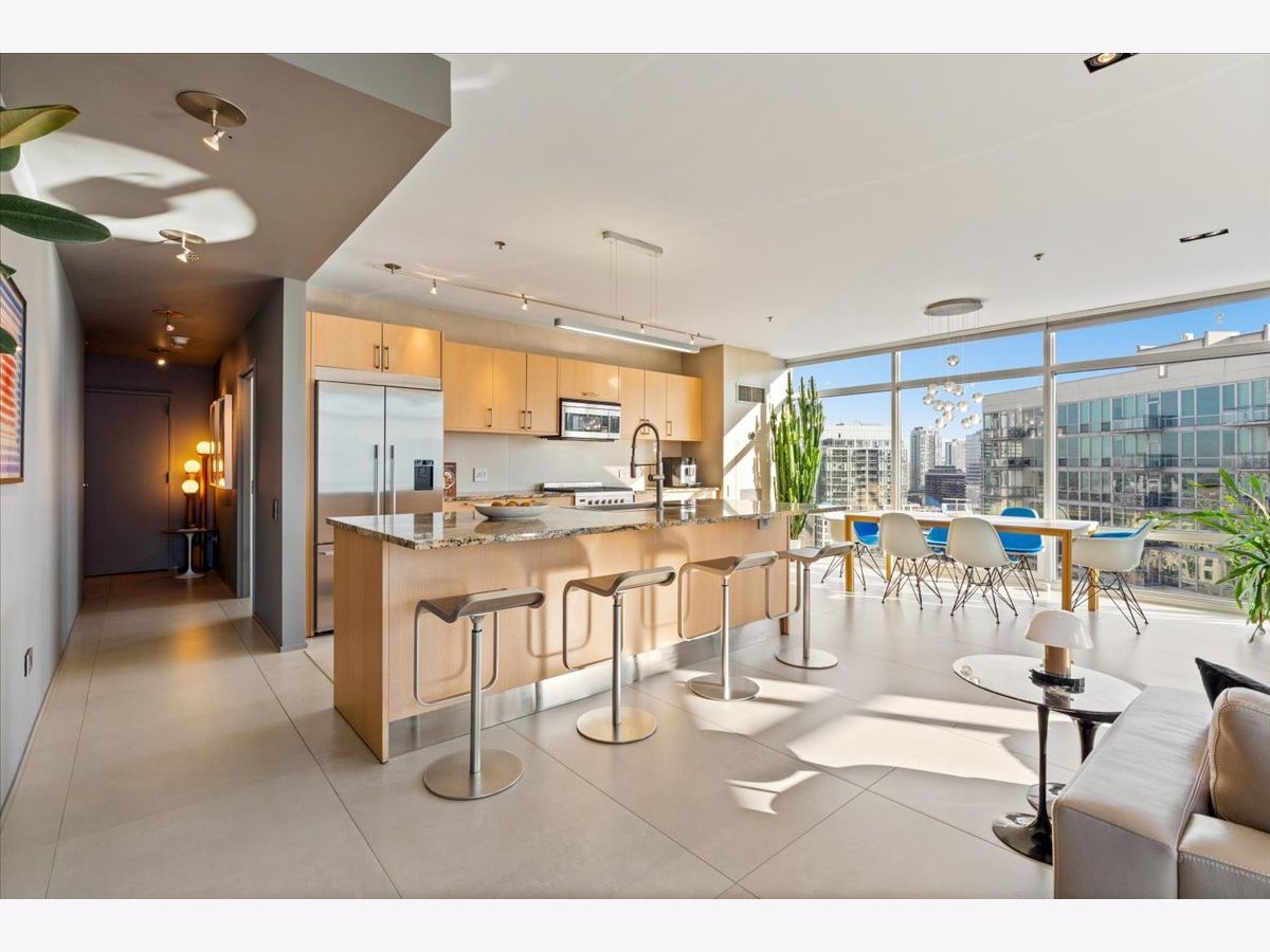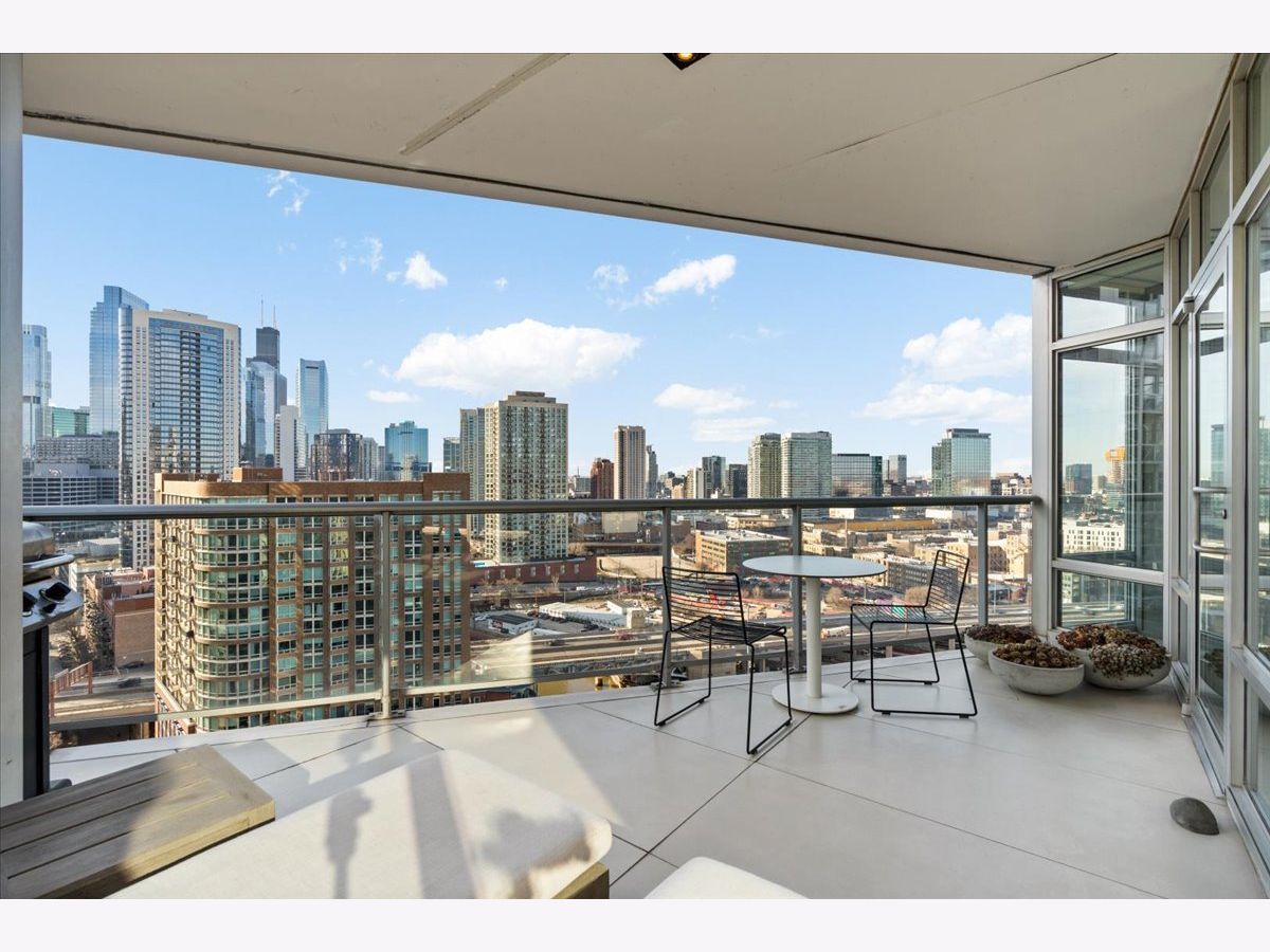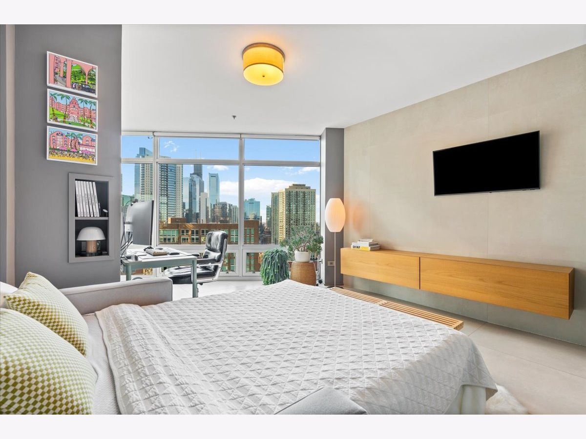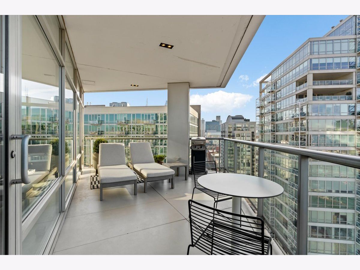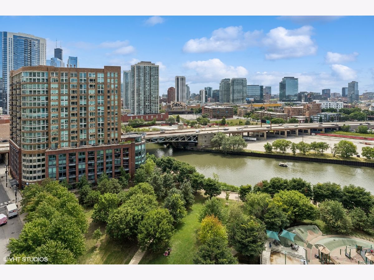 Enjoy sophisticated city living in this exceptional 18th-floor corner residence, located within an AIA award-winning building "Erie on the Park" designed by acclaimed architect, Lucien Lagrange. Perfectly positioned in River North's coveted Montgomery Park enclave, this home offers a rare balance of privacy and access, just steps from the West Loop/ Fulton Market, Gold Coast, and only two blocks from the renowned East Bank Club and Bian. Spanning 1,650+ square feet, this one-of-a-kind 2-bedroom residence features a custom-designed layout and sits on an exclusive penthouse floor with only four homes per level. Enjoy remarkable privacy paired with breathtaking, unobstructed 270-degree views and full southern/ east exposures, allowing natural light to pour in throughout the day. Take in sweeping vistas of Montgomery Park, the Chicago River, Lake Michigan, and the iconic Willis Tower. The interiors are thoughtfully curated with a sophisticated, modern aesthetic, showcasing sleek Balthaup cabinetry, premium Fisher & Paykel appliances, and high-end finishes throughout. Bathrooms feature Italian tile, marble, and slate, while custom closets provide exceptional storage and organization. Step outside to your private 156-square-foot terrace-an ideal setting for relaxing, entertaining, or enjoying front-row views of Chicago's famed architectural tour boats along the river. A rare opportunity to own a truly distinctive urban residence offering unparalleled views, refined design, and an unbeatable location. Deeded parking available for an additional $35,000.