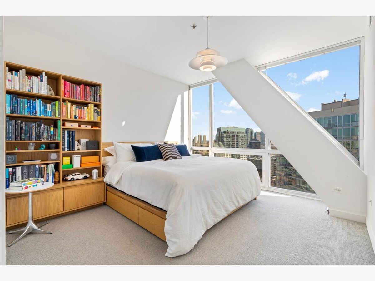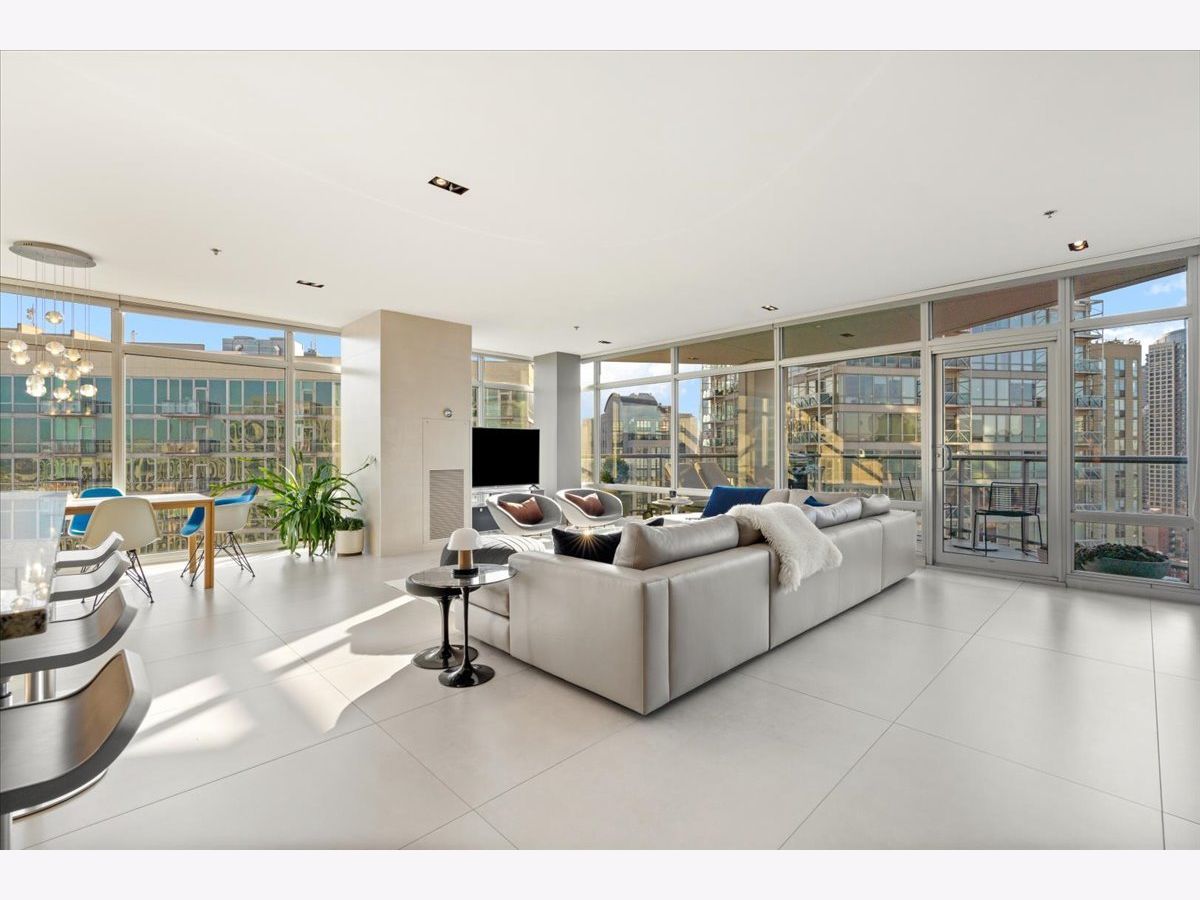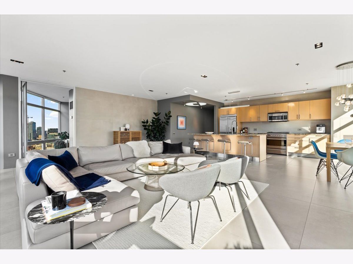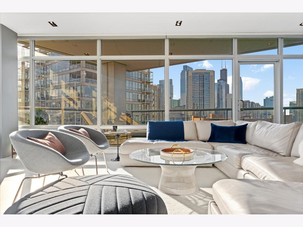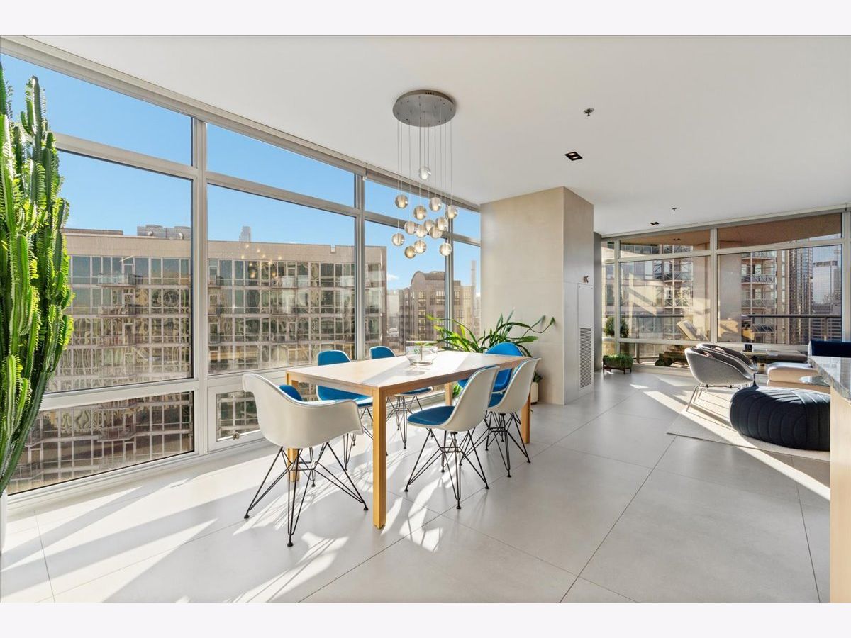Enjoy sophisticated city living in this exceptional 18th-floor corner residence, located within an AIA award-winning building "Erie on the Park" designed by acclaimed architect, Lucien Lagrange. Perfectly positioned in River North's coveted Montgomery Park enclave, this home offers a rare balance of privacy and access, just steps from the West Loop/ Fulton Market, Gold Coast, and only two blocks from the renowned East Bank Club and Bian. Spanning 1,650+ square feet, this one-of-a-kind 2-bedroom residence features a custom-designed layout and sits on an exclusive penthouse floor with only four homes per level. Enjoy remarkable privacy paired with breathtaking, unobstructed 270-degree views and full southern/ east exposures, allowing natural light to pour in throughout the day. Take in sweeping vistas of Montgomery Park, the Chicago River, Lake Michigan, and the iconic Willis Tower. The interiors are thoughtfully curated with a sophisticated, modern aesthetic, showcasing sleek Balthaup cabinetry, premium Fisher & Paykel appliances, and high-end finishes throughout. Bathrooms feature Italian tile, marble, and slate, while custom closets provide exceptional storage and organization. Step outside to your private 156-square-foot terrace-an ideal setting for relaxing, entertaining, or enjoying front-row views of Chicago's famed architectural tour boats along the river. A rare opportunity to own a truly distinctive urban residence offering unparalleled views, refined design, and an unbeatable location. Deeded parking available for an additional $35,000.