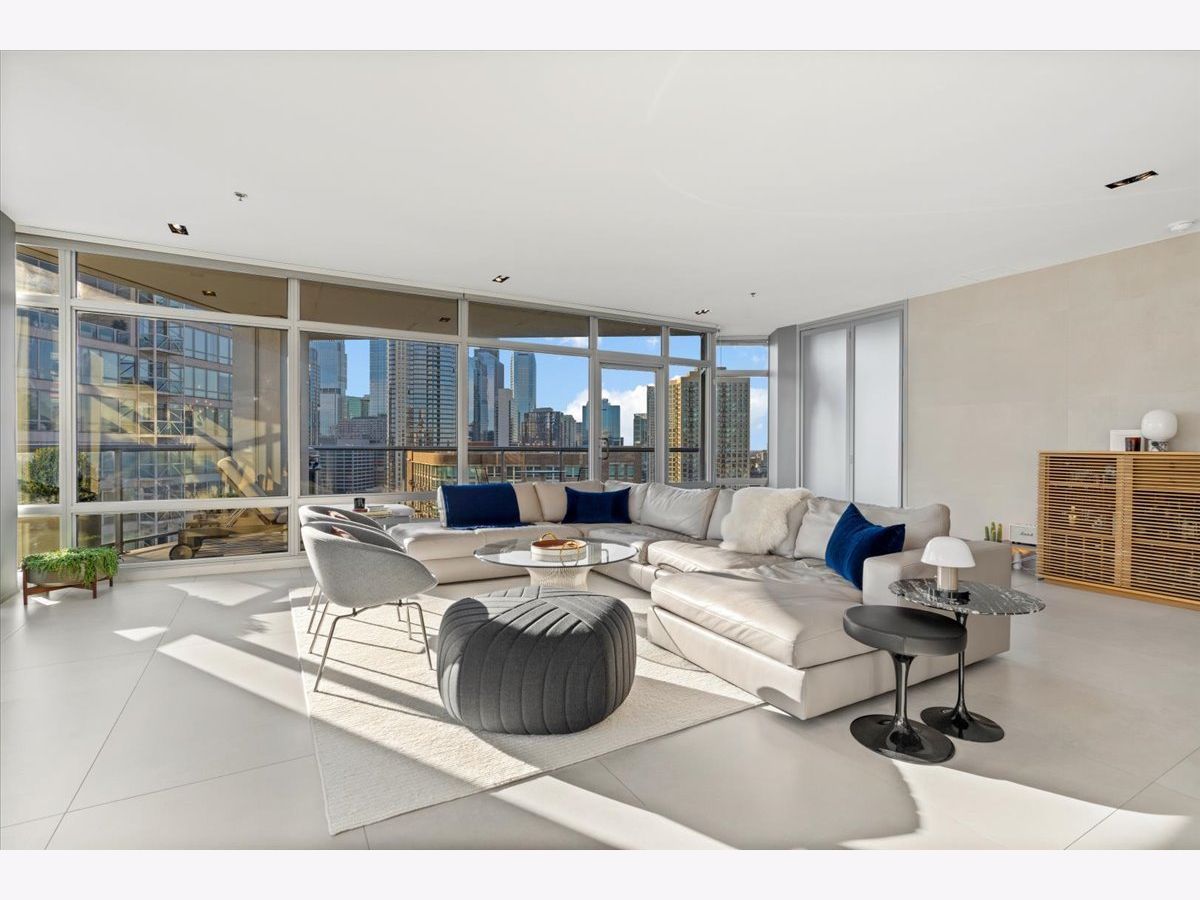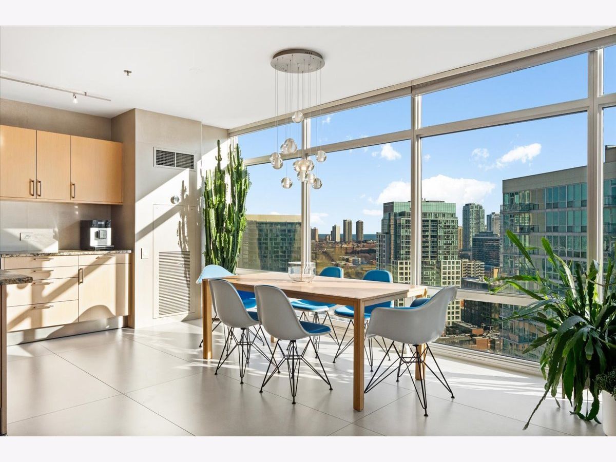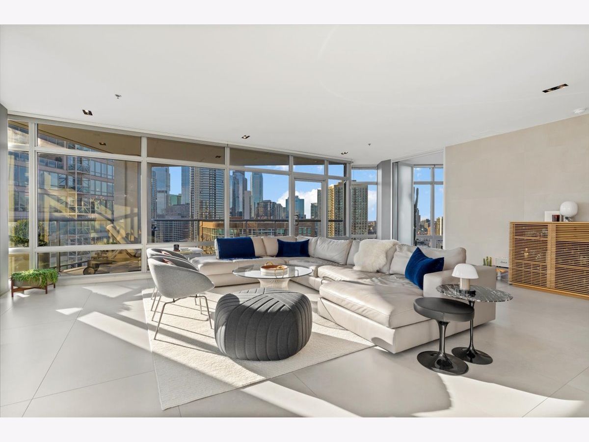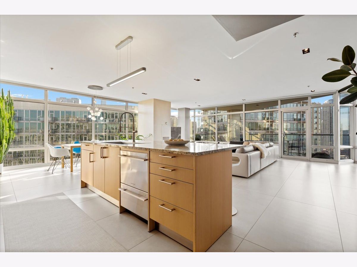 Enjoy sophisticated city living in this exceptional 18th-floor corner residence, located within an AIA award-winning building "Erie on the Park" designed by acclaimed architect, Lucien Lagrange. Perfectly positioned in River North's coveted Montgomery Park enclave, this home offers a rare balance of privacy and access, just steps from the West Loop/ Fulton Market, Gold Coast, and only two blocks from the renowned East Bank Club and Bian. Spanning 1,650+ square feet, this one-of-a-kind 2-bedroom residence features a custom-designed layout and sits on an exclusive penthouse floor with only four homes per level. Enjoy remarkable privacy paired with breathtaking, unobstructed 270-degree views and full southern/ east exposures, allowing natural light to pour in throughout the day. Take in sweeping vistas of Montgomery Park, the Chicago River, Lake Michigan, and the iconic Willis Tower. The interiors are thoughtfully curated with a sophisticated, modern aesthetic, showcasing sleek Balthaup cabinetry, premium Fisher & Paykel appliances, and high-end finishes throughout. Bathrooms feature Italian tile, marble, and slate, while custom closets provide exceptional storage and organization. Step outside to your private 156-square-foot terrace-an ideal setting for relaxing, entertaining, or enjoying front-row views of Chicago's famed architectural tour boats along the river. A rare opportunity to own a truly distinctive urban residence offering unparalleled views, refined design, and an unbeatable location. Deeded parking available for an additional $35,000.