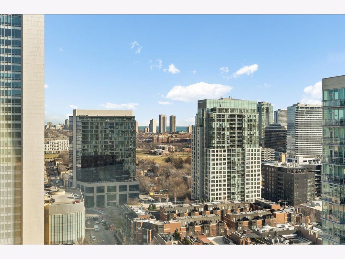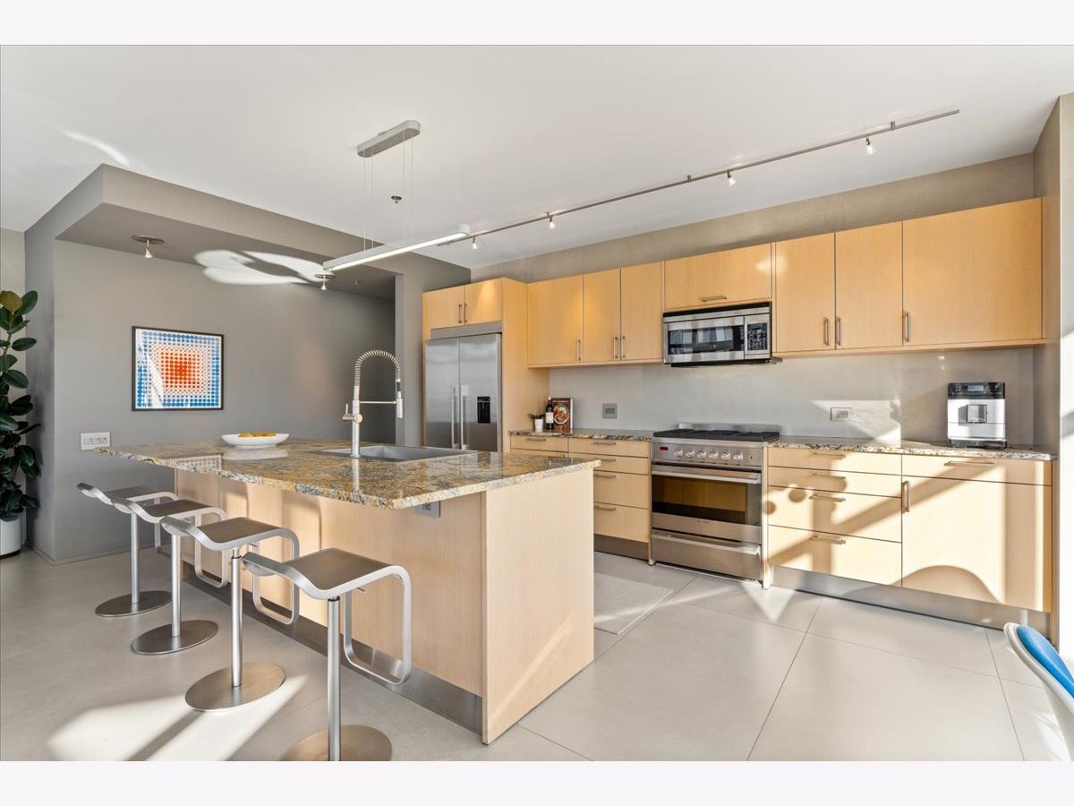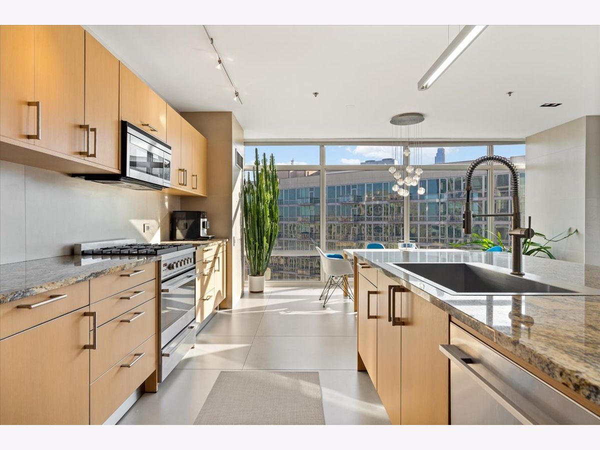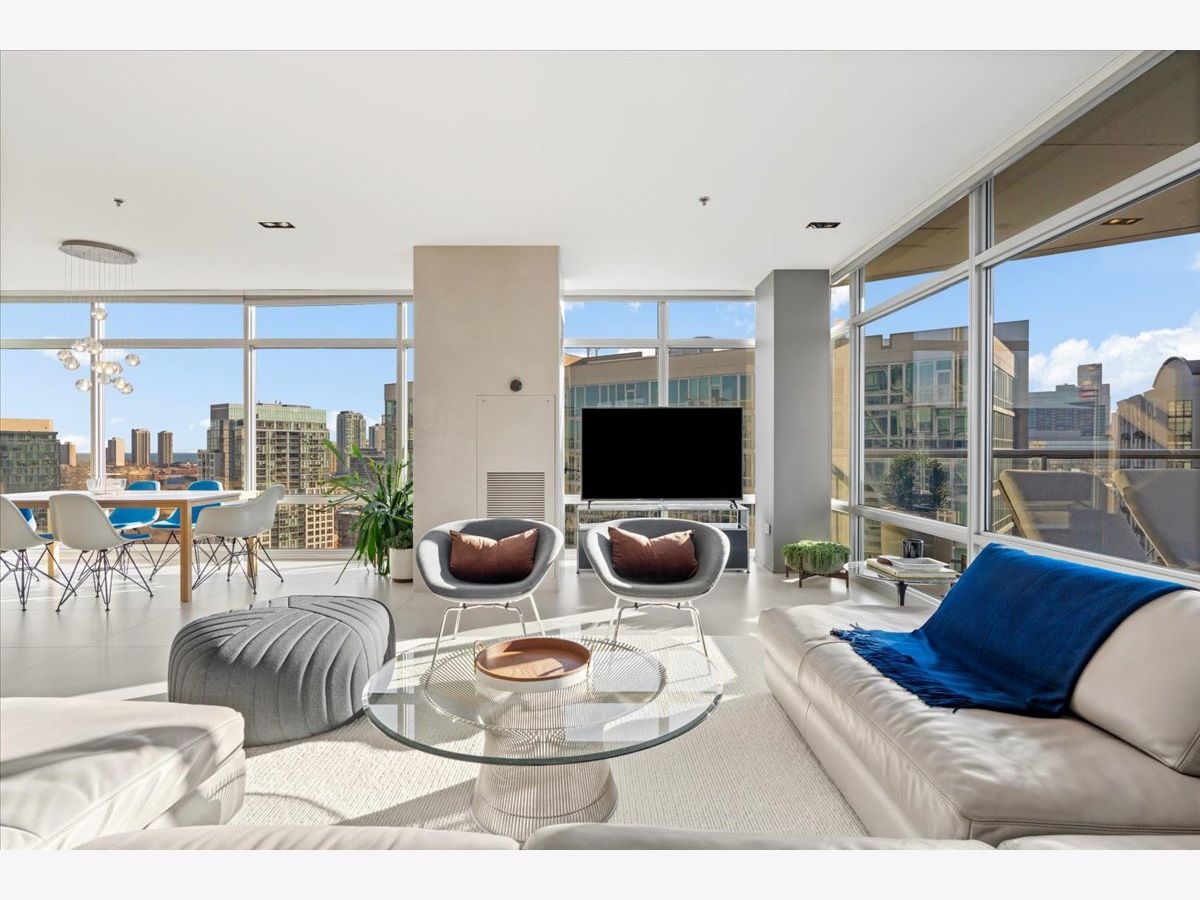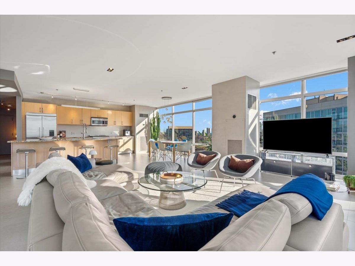 Enjoy sophisticated city living in this exceptional 18th-floor corner residence, located within an AIA award-winning building "Erie on the Park" designed by acclaimed architect, Lucien Lagrange. Perfectly positioned in River North's coveted Montgomery Park enclave, this home offers a rare balance of privacy and access, just steps from the West Loop/ Fulton Market, Gold Coast, and only two blocks from the renowned East Bank Club and Bian. Spanning 1,650+ square feet, this one-of-a-kind 2-bedroom residence features a custom-designed layout and sits on an exclusive penthouse floor with only four homes per level. Enjoy remarkable privacy paired with breathtaking, unobstructed 270-degree views and full southern/ east exposures, allowing natural light to pour in throughout the day. Take in sweeping vistas of Montgomery Park, the Chicago River, Lake Michigan, and the iconic Willis Tower. The interiors are thoughtfully curated with a sophisticated, modern aesthetic, showcasing sleek Balthaup cabinetry, premium Fisher & Paykel appliances, and high-end finishes throughout. Bathrooms feature Italian tile, marble, and slate, while custom closets provide exceptional storage and organization. Step outside to your private 156-square-foot terrace-an ideal setting for relaxing, entertaining, or enjoying front-row views of Chicago's famed architectural tour boats along the river. A rare opportunity to own a truly distinctive urban residence offering unparalleled views, refined design, and an unbeatable location. Deeded parking available for an additional $35,000.