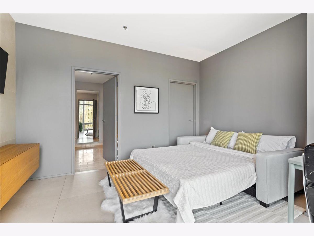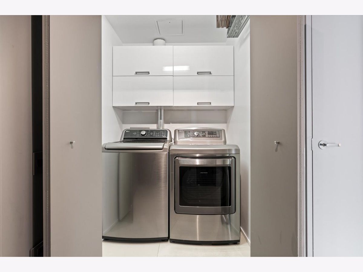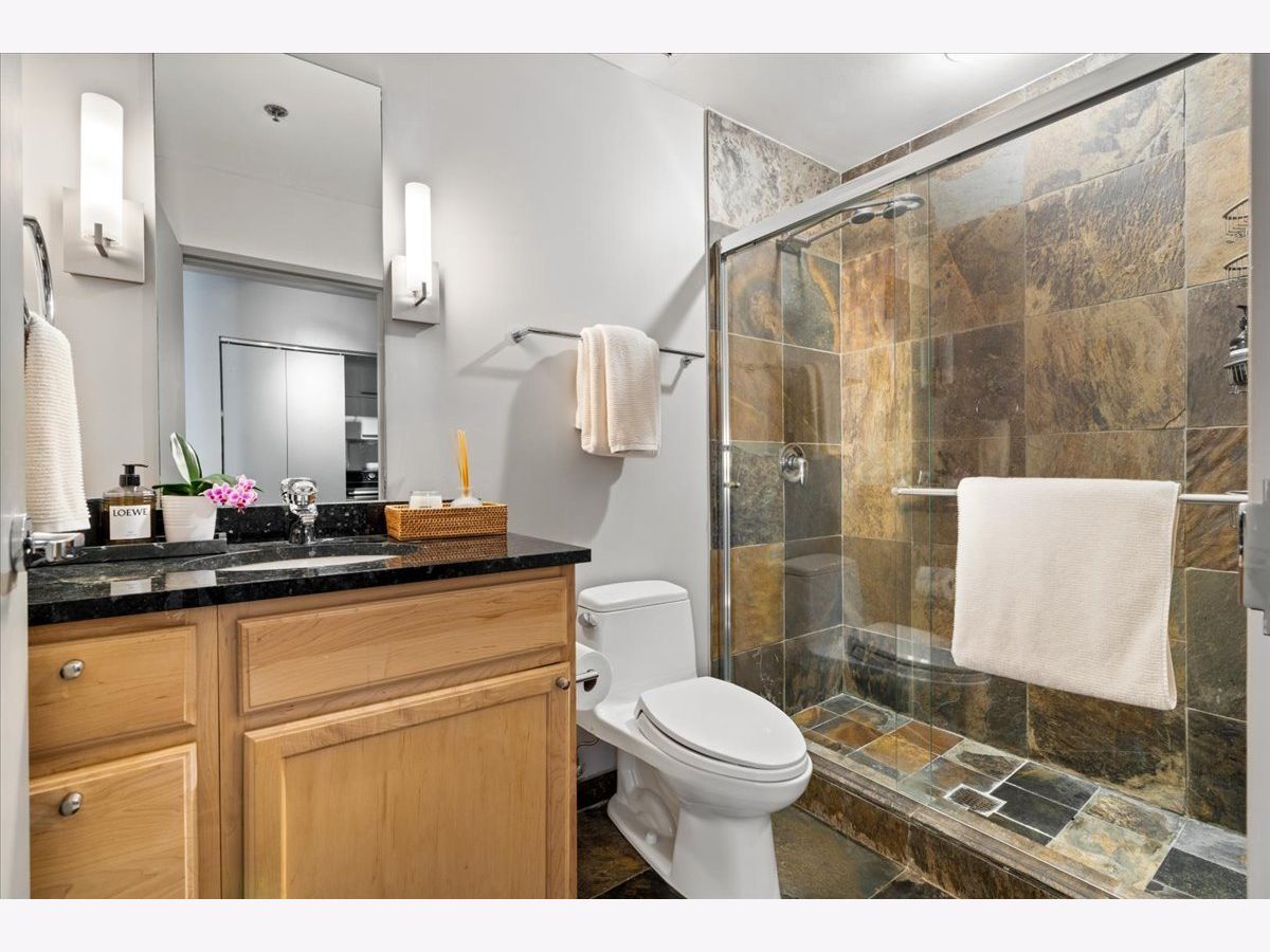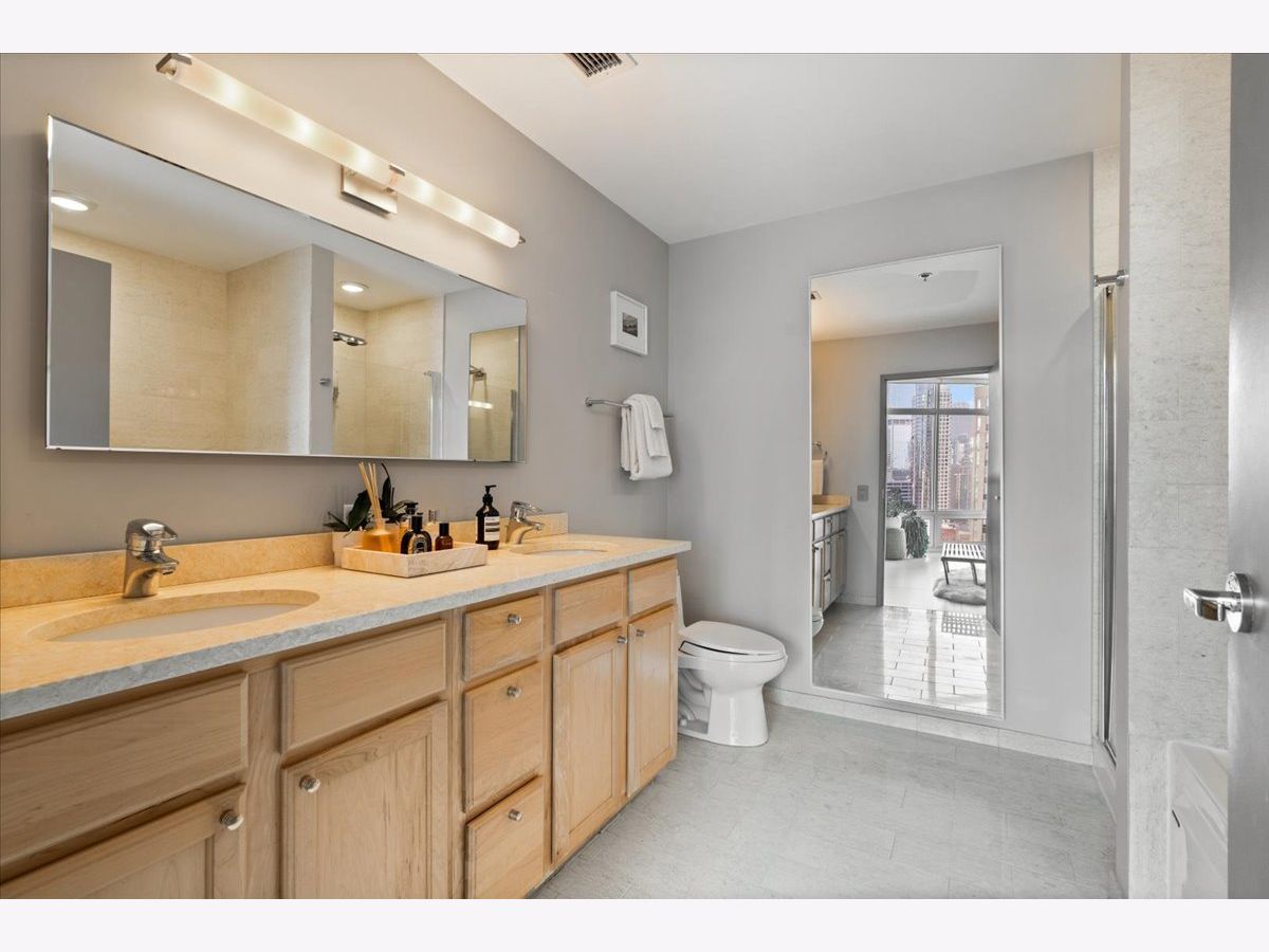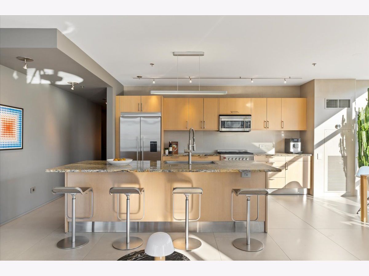 Enjoy sophisticated city living in this exceptional 18th-floor corner residence, located within an AIA award-winning building "Erie on the Park" designed by acclaimed architect, Lucien Lagrange. Perfectly positioned in River North's coveted Montgomery Park enclave, this home offers a rare balance of privacy and access, just steps from the West Loop/ Fulton Market, Gold Coast, and only two blocks from the renowned East Bank Club and Bian. Spanning 1,650+ square feet, this one-of-a-kind 2-bedroom residence features a custom-designed layout and sits on an exclusive penthouse floor with only four homes per level. Enjoy remarkable privacy paired with breathtaking, unobstructed 270-degree views and full southern/ east exposures, allowing natural light to pour in throughout the day. Take in sweeping vistas of Montgomery Park, the Chicago River, Lake Michigan, and the iconic Willis Tower. The interiors are thoughtfully curated with a sophisticated, modern aesthetic, showcasing sleek Balthaup cabinetry, premium Fisher & Paykel appliances, and high-end finishes throughout. Bathrooms feature Italian tile, marble, and slate, while custom closets provide exceptional storage and organization. Step outside to your private 156-square-foot terrace-an ideal setting for relaxing, entertaining, or enjoying front-row views of Chicago's famed architectural tour boats along the river. A rare opportunity to own a truly distinctive urban residence offering unparalleled views, refined design, and an unbeatable location. Deeded parking available for an additional $35,000.