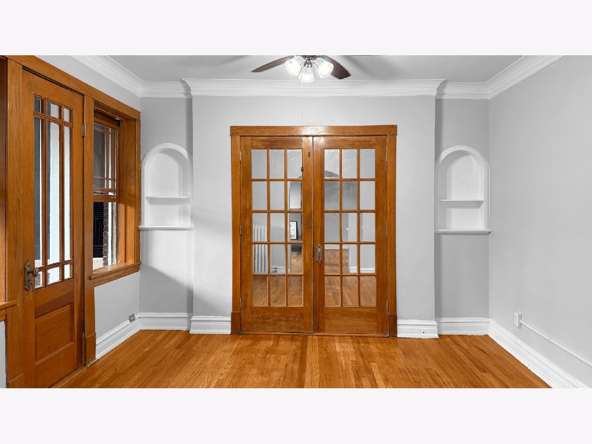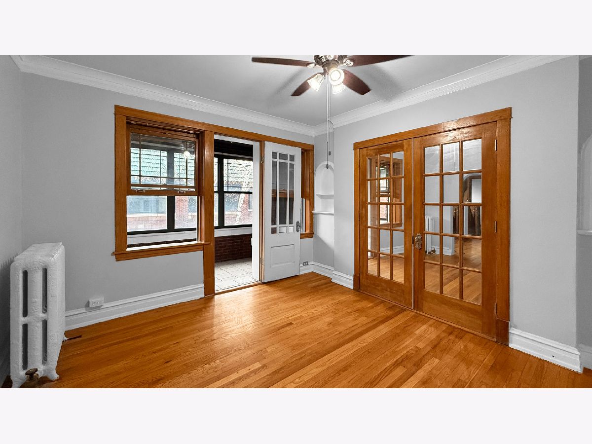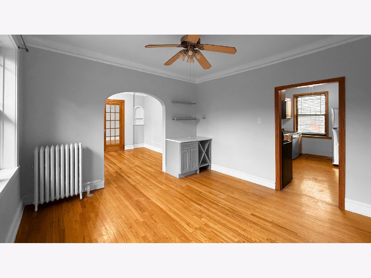 Spacious vintage one-bedroom, one-bath condo ideally situated in a highly convenient location amongst all the explosion of the "re-vamp Madison" project. Set quietly at the rear of the courtyard, this home offers a peaceful retreat away from street noise. Hardwood floors and crown molding highlight the character throughout. The separate dining room features a recently added built-in serving area with bar storage and opens through an arched doorway to the living room. Mirrored French doors reveal a large walk-in closet which adds extra storage space. An enclosed side porch adds valuable extra living area and provides serene courtyard views. The kitchen has newer appliances including a refrigerator and dishwasher (2022), along with a stainless steel range/oven, ample cabinetry, and a spacious pantry for additional storage. The bathroom has also been updated, Building amenities include on-site laundry. Windows were replaced in 2018. Building upgrades include the following; new tear-off roof, tuckpointing, new sidewalks and new rear porches, all have already been fully paid. Ideal for both owner-occupants and investors, with no rental restrictions and convenient permit parking available. A short distance to schools, parks, pool, transportation, and restaurants. Assessments include heat!