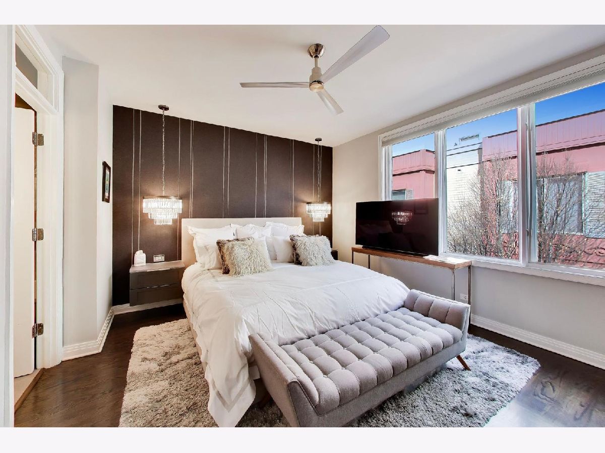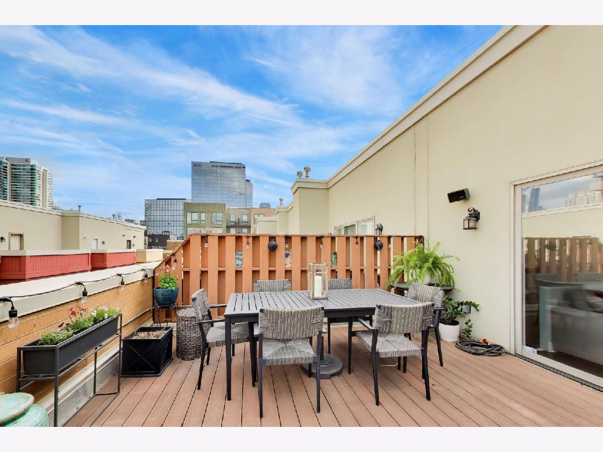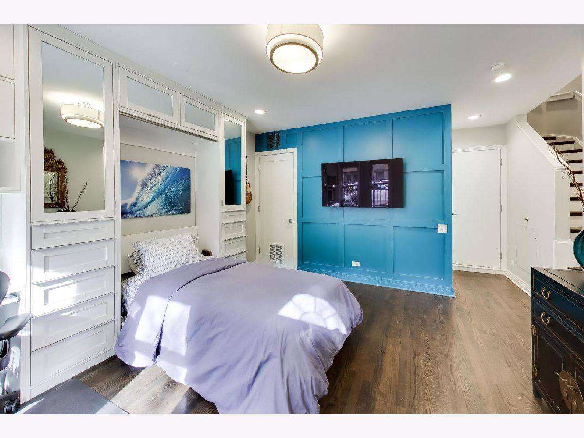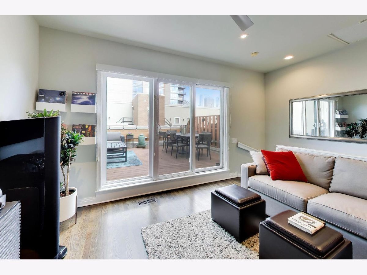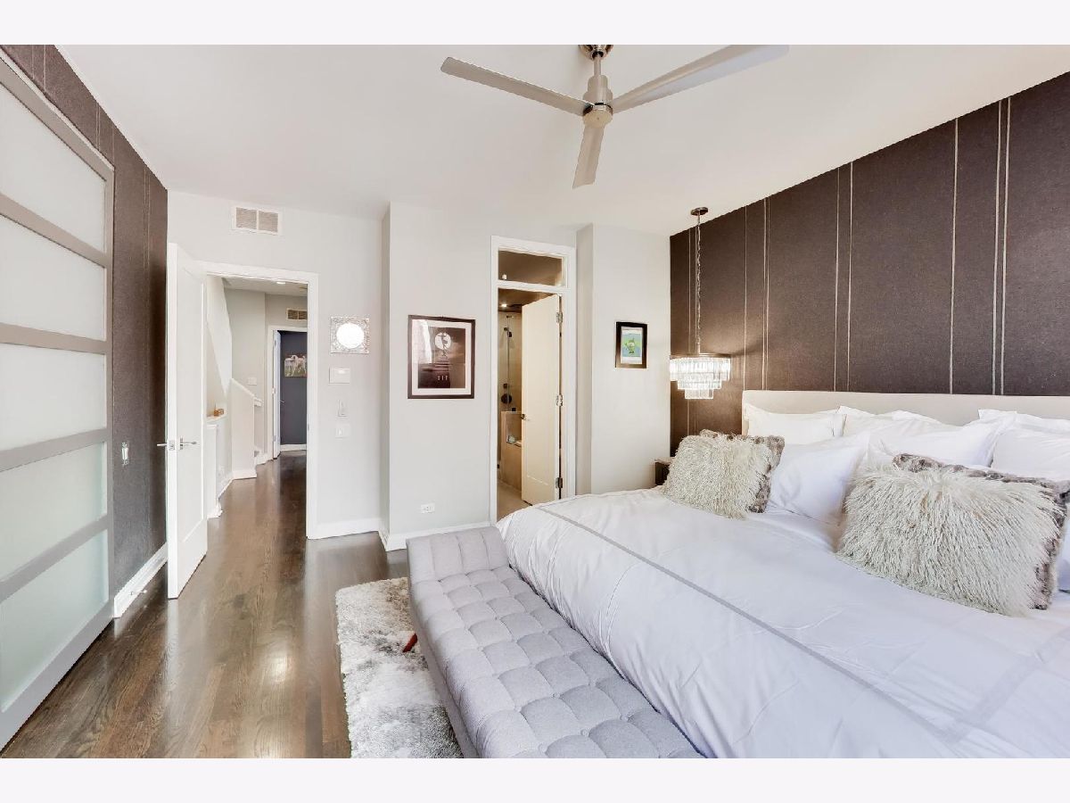 Rarely available 3 bed/2.5 bath townhome in the sought-after Via Como, a serene courtyard community nestled in the heart of Fulton River District. This wide floorplan home has been meticulously updated with refinished hardwood floors and stairs, and custom shaker doors throughout. The remodeled chef's kitchen is a showstopper, featuring quartz countertops, a waterfall island, upgraded appliances, custom cabinetry, and designer chandelier/task lighting. Step out onto the balcony off the kitchen, perfect for grilling and entertaining. The spacious living room, adorned with Maya Romanoff wall coverings, custom wainscoting, and a cozy fireplace with custom built-ins, flows seamlessly into a dedicated dining area. Retreat to the expansive primary suite, now remodeled with custom California Closets, built-in cabinetry, designer light fixtures, and a spa-like bath. The luxurious bath includes Porcelenosa tile, a Toto washlet, Kalista fixtures, ceiling rain tiles, Robern medicine cabinets, heated floors, heated towel rack, and extensive custom lighting. The first-floor bedroom has been transformed with a custom California Closets Murphy Bed system, integrated cabinetry, and a desk, making it a versatile space for guests or a home office. The first floor also includes a powder room and opens to a private front patio overlooking the picturesque courtyard. The oversized rooftop deck, now upgraded with electric and Trex decking, is perfect for summer gatherings or quiet evenings under the stars. Additional updates include a new furnace and AC, custom blinds throughout, designer light fixtures, USB outlets, and incredible storage. A Nest thermostat and a 2-car attached garage complete this truly turn-key home. Just a 2-minute walk to the Blue Line and quick access to 90/94, this home is perfectly situated for city living. Enjoy being steps away from the vibrant offerings of Fulton Market and West Loop. Located within the highly-rated Ogden International Elementary School district, this home leaves no interior design opportunity missed!