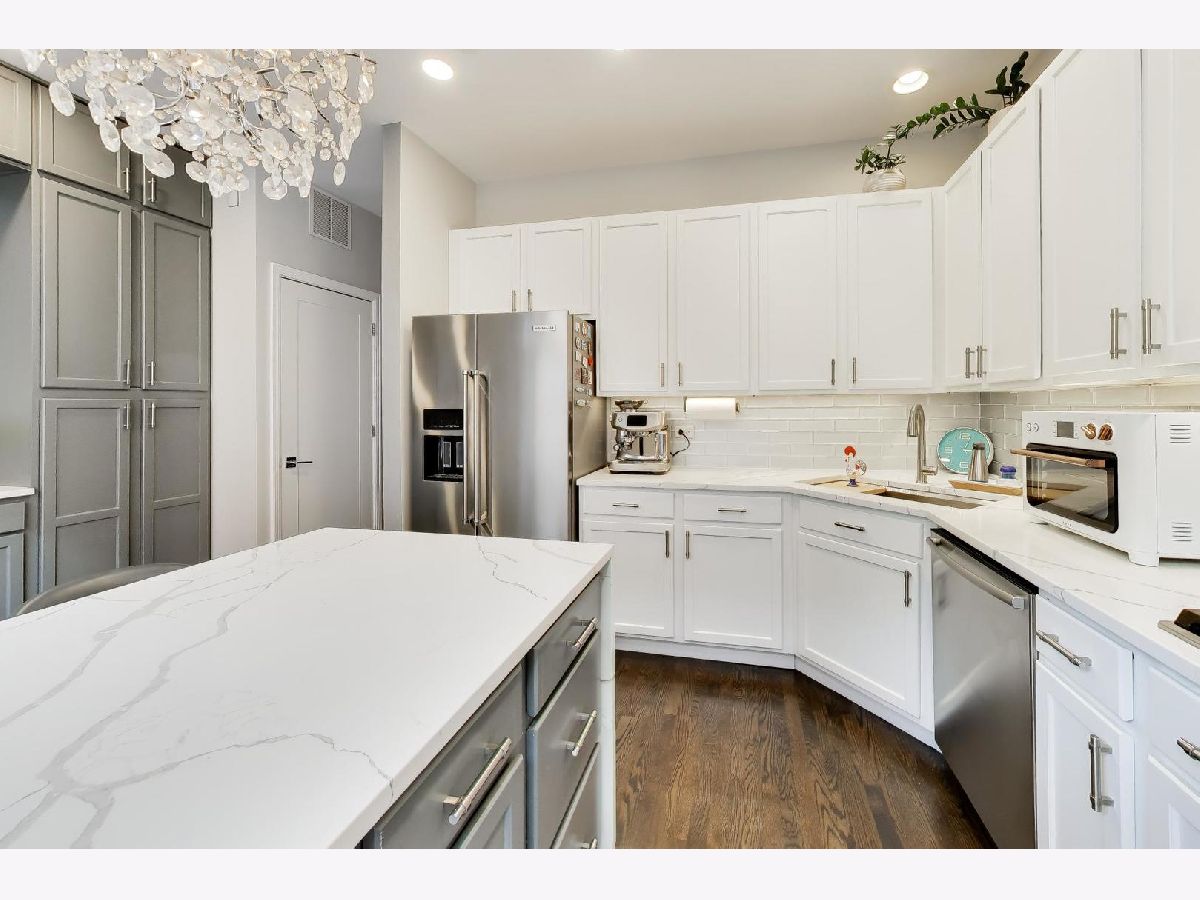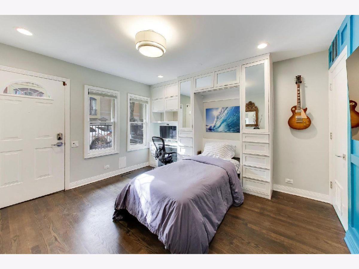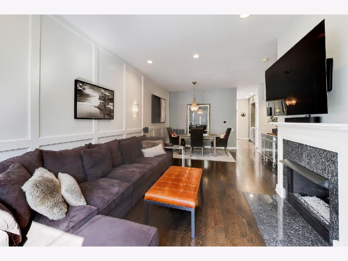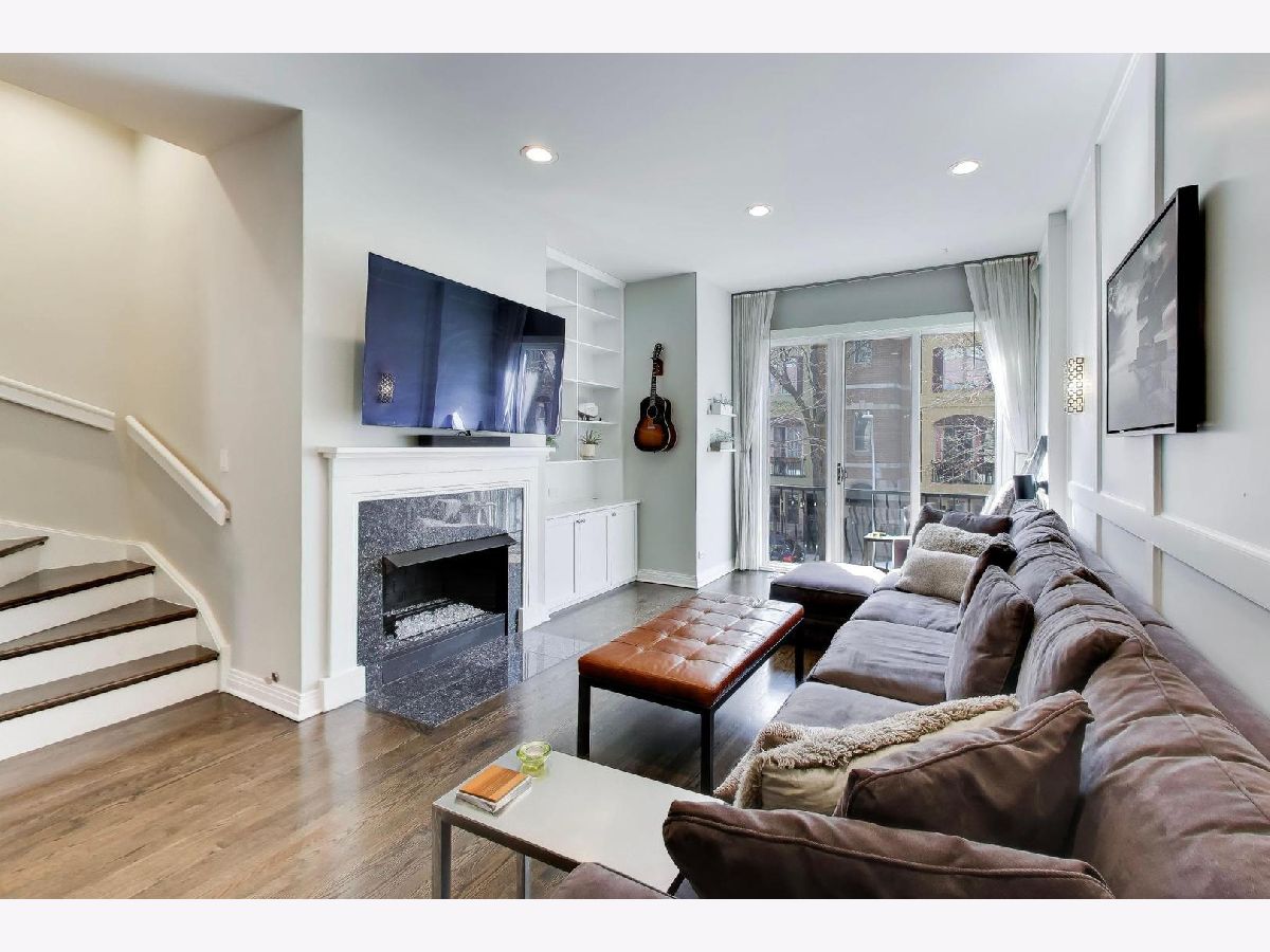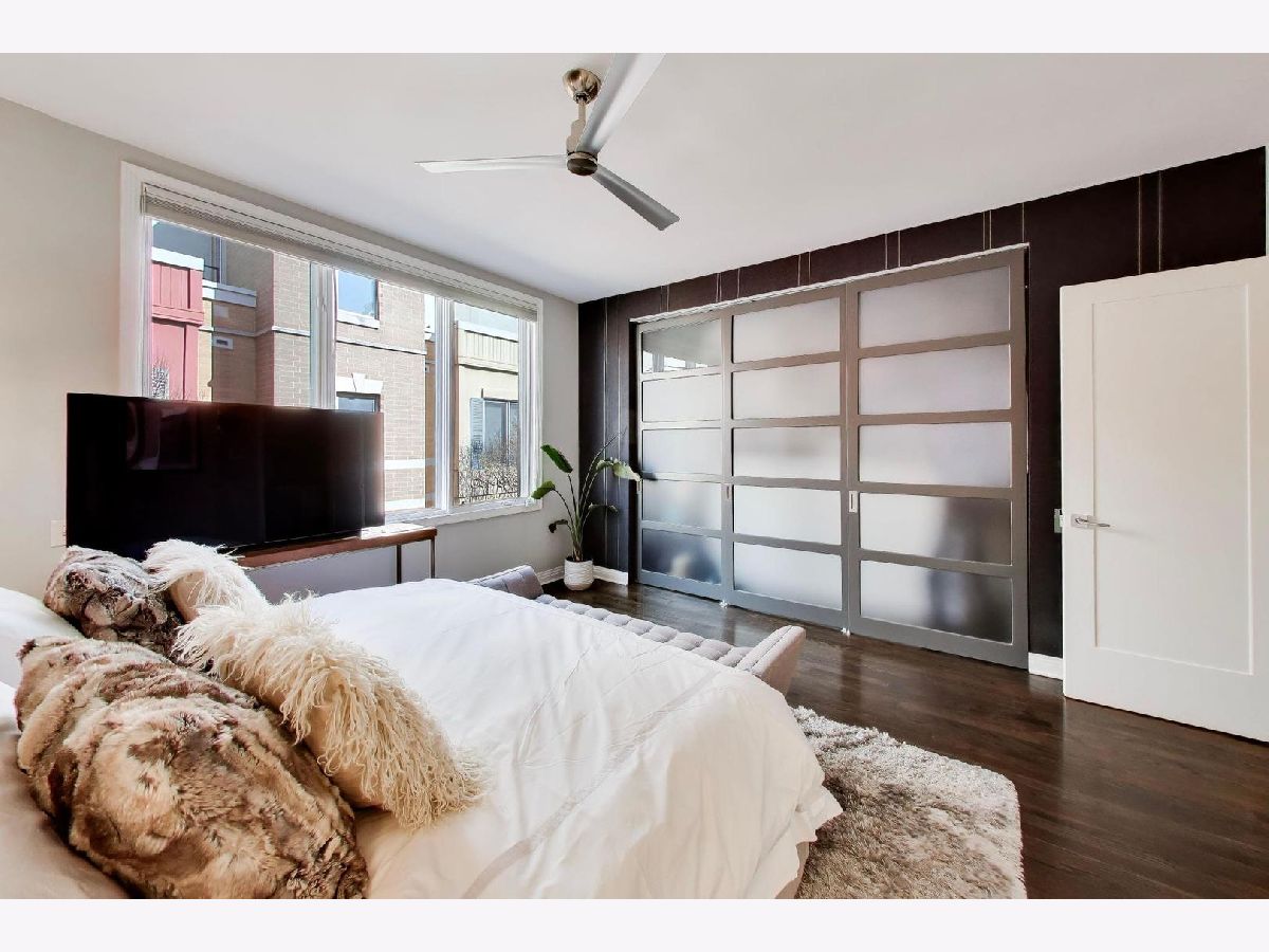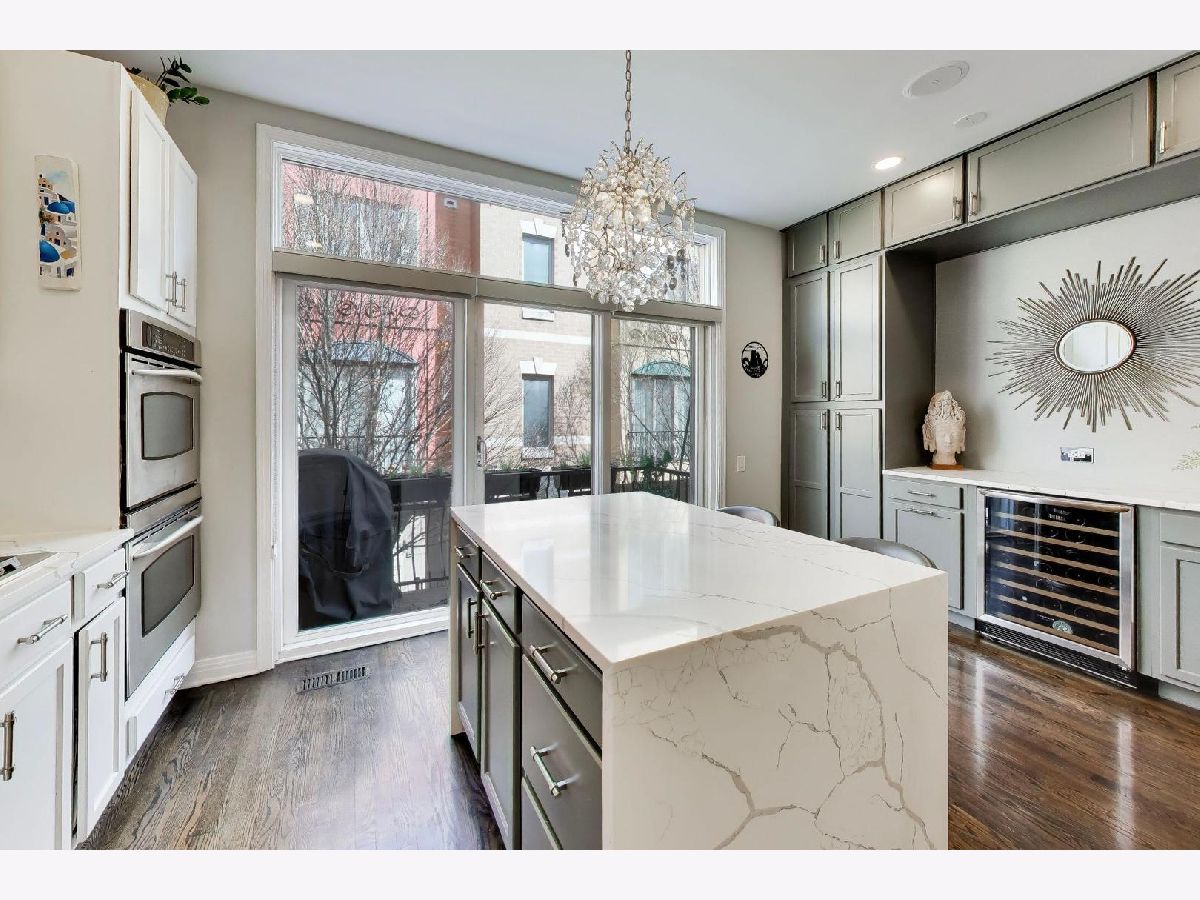 Rarely available 3 bed/2.5 bath townhome in the sought-after Via Como, a serene courtyard community nestled in the heart of Fulton River District. This wide floorplan home has been meticulously updated with refinished hardwood floors and stairs, and custom shaker doors throughout. The remodeled chef's kitchen is a showstopper, featuring quartz countertops, a waterfall island, upgraded appliances, custom cabinetry, and designer chandelier/task lighting. Step out onto the balcony off the kitchen, perfect for grilling and entertaining. The spacious living room, adorned with Maya Romanoff wall coverings, custom wainscoting, and a cozy fireplace with custom built-ins, flows seamlessly into a dedicated dining area. Retreat to the expansive primary suite, now remodeled with custom California Closets, built-in cabinetry, designer light fixtures, and a spa-like bath. The luxurious bath includes Porcelenosa tile, a Toto washlet, Kalista fixtures, ceiling rain tiles, Robern medicine cabinets, heated floors, heated towel rack, and extensive custom lighting. The first-floor bedroom has been transformed with a custom California Closets Murphy Bed system, integrated cabinetry, and a desk, making it a versatile space for guests or a home office. The first floor also includes a powder room and opens to a private front patio overlooking the picturesque courtyard. The oversized rooftop deck, now upgraded with electric and Trex decking, is perfect for summer gatherings or quiet evenings under the stars. Additional updates include a new furnace and AC, custom blinds throughout, designer light fixtures, USB outlets, and incredible storage. A Nest thermostat and a 2-car attached garage complete this truly turn-key home. Just a 2-minute walk to the Blue Line and quick access to 90/94, this home is perfectly situated for city living. Enjoy being steps away from the vibrant offerings of Fulton Market and West Loop. Located within the highly-rated Ogden International Elementary School district, this home leaves no interior design opportunity missed!