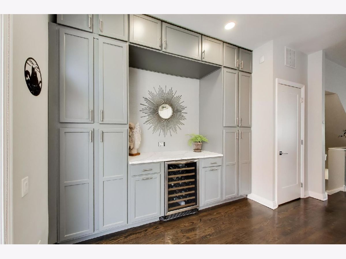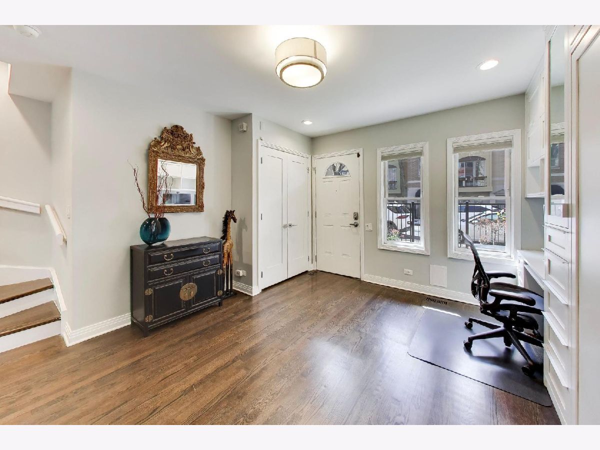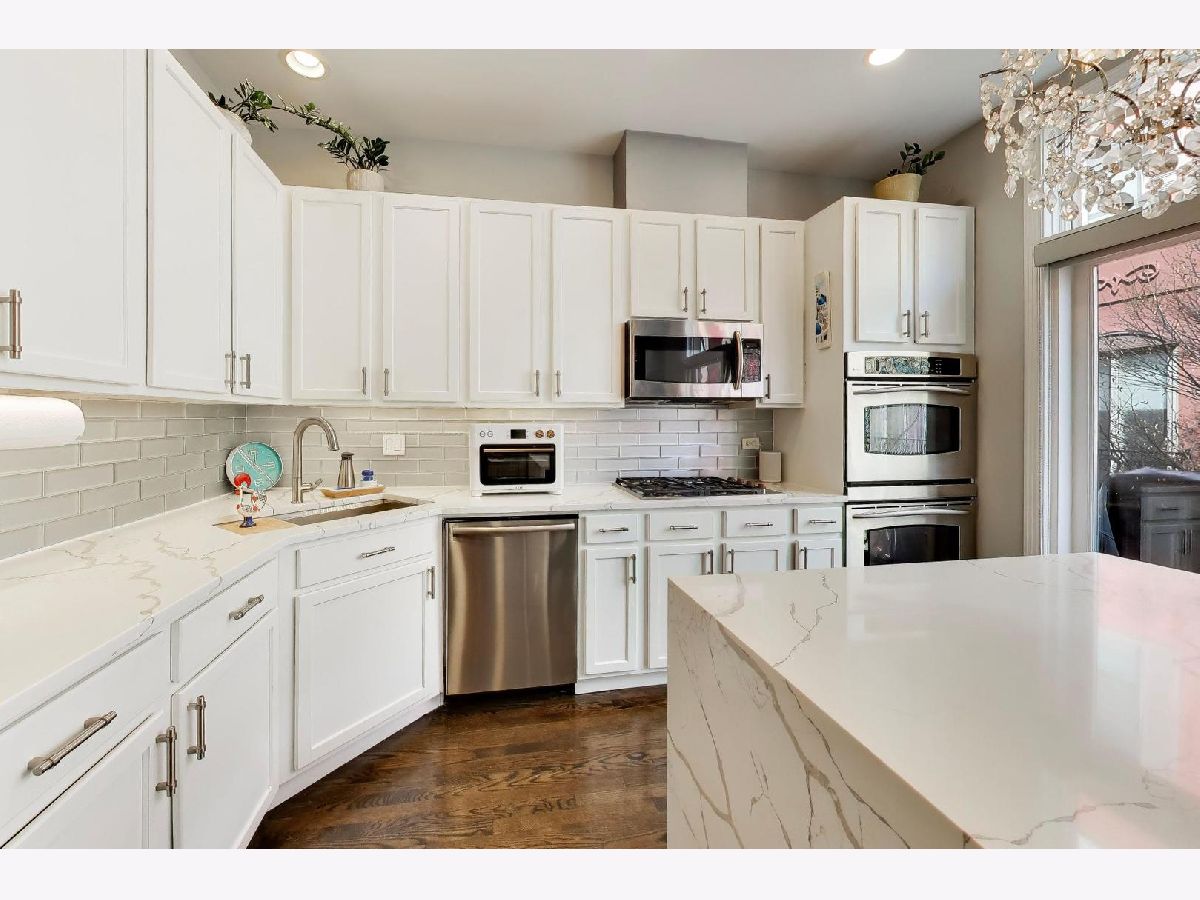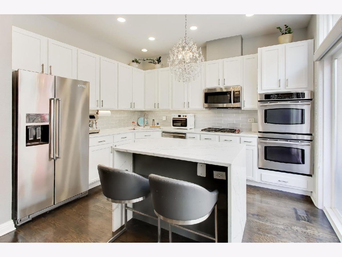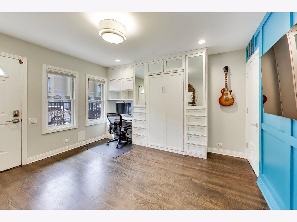 Rarely available 3 bed/2.5 bath townhome in the sought-after Via Como, a serene courtyard community nestled in the heart of Fulton River District. This wide floorplan home has been meticulously updated with refinished hardwood floors and stairs, and custom shaker doors throughout. The remodeled chef's kitchen is a showstopper, featuring quartz countertops, a waterfall island, upgraded appliances, custom cabinetry, and designer chandelier/task lighting. Step out onto the balcony off the kitchen, perfect for grilling and entertaining. The spacious living room, adorned with Maya Romanoff wall coverings, custom wainscoting, and a cozy fireplace with custom built-ins, flows seamlessly into a dedicated dining area. Retreat to the expansive primary suite, now remodeled with custom California Closets, built-in cabinetry, designer light fixtures, and a spa-like bath. The luxurious bath includes Porcelenosa tile, a Toto washlet, Kalista fixtures, ceiling rain tiles, Robern medicine cabinets, heated floors, heated towel rack, and extensive custom lighting. The first-floor bedroom has been transformed with a custom California Closets Murphy Bed system, integrated cabinetry, and a desk, making it a versatile space for guests or a home office. The first floor also includes a powder room and opens to a private front patio overlooking the picturesque courtyard. The oversized rooftop deck, now upgraded with electric and Trex decking, is perfect for summer gatherings or quiet evenings under the stars. Additional updates include a new furnace and AC, custom blinds throughout, designer light fixtures, USB outlets, and incredible storage. A Nest thermostat and a 2-car attached garage complete this truly turn-key home. Just a 2-minute walk to the Blue Line and quick access to 90/94, this home is perfectly situated for city living. Enjoy being steps away from the vibrant offerings of Fulton Market and West Loop. Located within the highly-rated Ogden International Elementary School district, this home leaves no interior design opportunity missed!