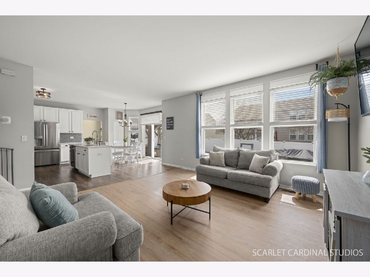 Beautiful 4 bed, 2.1 bath home with basement & fenced yard ready for summer entertaining!! Walk into a 2 story foyer and semi-open floor plan with tons of natural light. Neutral paint, white trim, new blinds & modern lighting throughout the home. Living room boasts a pretty accent fireplace & wood beam, perfectly connecting to the spacious dining room. Kitchen hosts NEW quartz countertops, NEW stainless steel appliances, white cabinetry, & subway tile backsplash. Family room is home to an entire wall of windows looking out at the serene backyard. The first level is also home to the laundry room and nicely remodeled half bath. Upper level offers a primary bedroom suite with shed ceiling, attached full bath, & walk-in closet. Three more spacious bedrooms and another full bathroom round out the upper level. Full basement with finished bedroom (or workout room or office!) as well. Fully fenced backyard is home to a stamped patio, pool (2023 with 2025 filter), shed (2025) & Gazebo (2024)-summer fun awaits! Not only is this home beautifully designed, but the big ticket items are also all brand new-Furnace & AC 2024, Water Heater 2024, Sump Pump 2024, Roof & Gutters 2024, Radon Fan 2025. Close to shopping, restaurants, & downtown Plainfield!