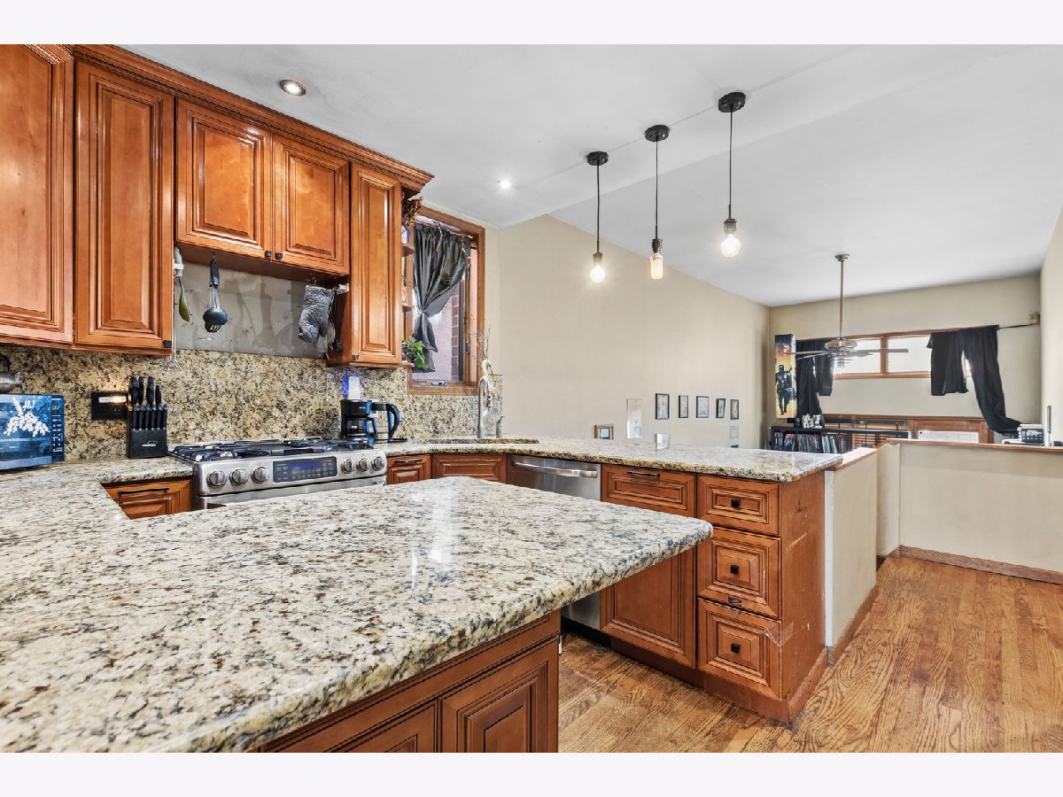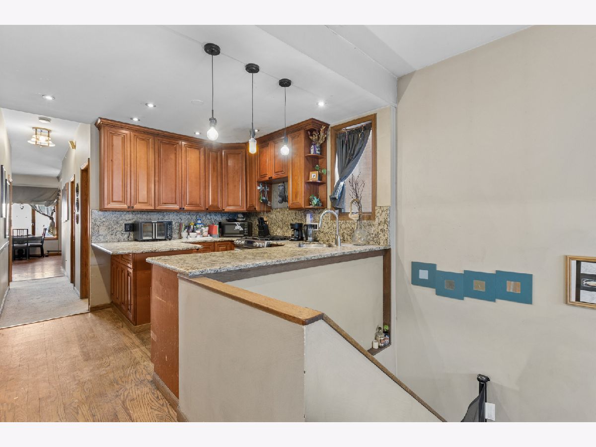 Discover a truly one-of-a-kind gem in the heart of Jefferson Park. This property has a unique layout that feels more like a hidden sanctuary than a typical multi-unit home. The first unit unfolds across THREE levels, offering the warmth and flow of a single-family home. Enjoy an open concept kitchen with custom cabinetry, granite countertops, and GE Profile stainless appliances, plus bathrooms with granite and quartz finishes and a relaxing Jacuzzi tub. Storage is abundant, including an impressively large crawl space. The second unit is equally inviting, featuring 3 bedrooms, 1 bath, a spacious living area, generous closet space, sky lights, and a separate dining room. Both units offer the convenience of their own in-unit laundry. Situated on an oversized lot, the property features a private, fenced-in outdoor retreat complete with a cozy patio and a 2.5-car garage with attic storage. All just moments from I-90/94, the Jefferson Park Blue Line, Metra, and Beaubien Elementary. A special opportunity to own something truly unique - full of character, comfort, and endless possibilities. Property is being sold As Is.