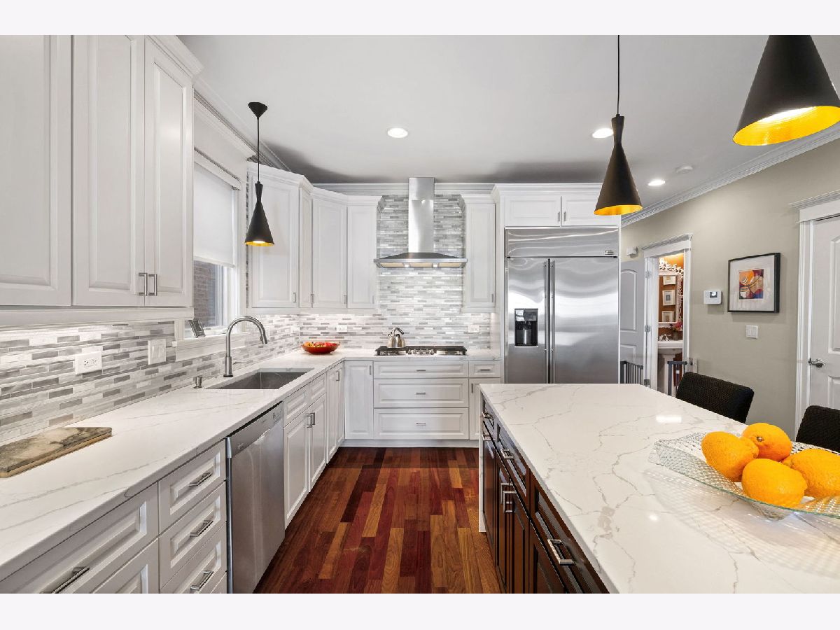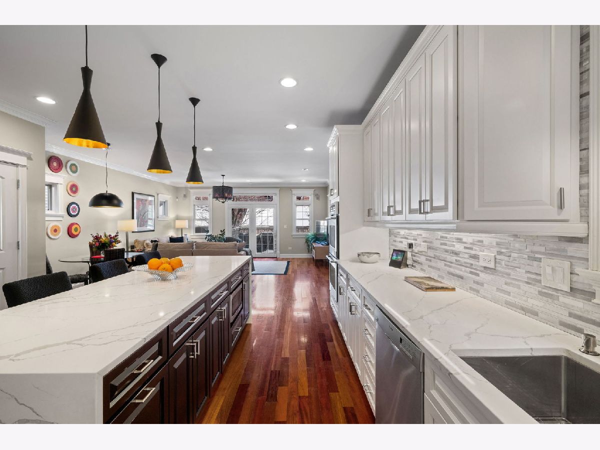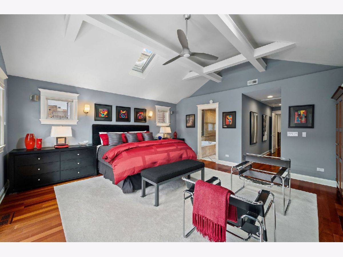 Elegant and beautifully maintained Ravenswood residence, ideally positioned between Andersonville and Lincoln Square on an extra-deep 157' lot. Thoughtfully designed with oversized rooms, hardwood floors throughout (except lower level), and an open layout that balances everyday comfort with effortless entertaining. The expansive kitchen is both functional and refined, offering abundant cabinetry, high-end appliances, quartz countertops, a generous waterfall island, and a walk-in pantry. The adjoining family room comfortably accommodates plenty of large furniture as well as a breakfast or game table and opens seamlessly to a spacious deck and rare, professionally landscaped city backyard - a true extension of the living space. A striking staircase with skylight and updated lighting leads to the second level. The primary suite serves as a private retreat, featuring cathedral ceilings, skylights, fireplace, two walk-in closets, balcony overlooking the yard, and a spa-inspired bath with dual vanities, jetted tub, and steam shower. Two additional generously sized bedrooms, a beautifully finished stone bath, and a full laundry room with sink complete this level. The front bedroom showcases impressive windows and soaring ceilings. The lower level offers excellent ceiling height and natural light, anchored by an oversized recreation room with fireplace and wet bar, along with two spacious bedrooms, a stone bath, and substantial utility and storage space. Just steps to Winnemac Park and convenient to Chappell, Amundsen, Lycee Francais de Chicago, Rogers Park Montessori, and Waldorf, plus both Brown Line and Metra access. Enjoy easy proximity to neighborhood dining, shopping, and the charm of Lincoln Square and Andersonville.