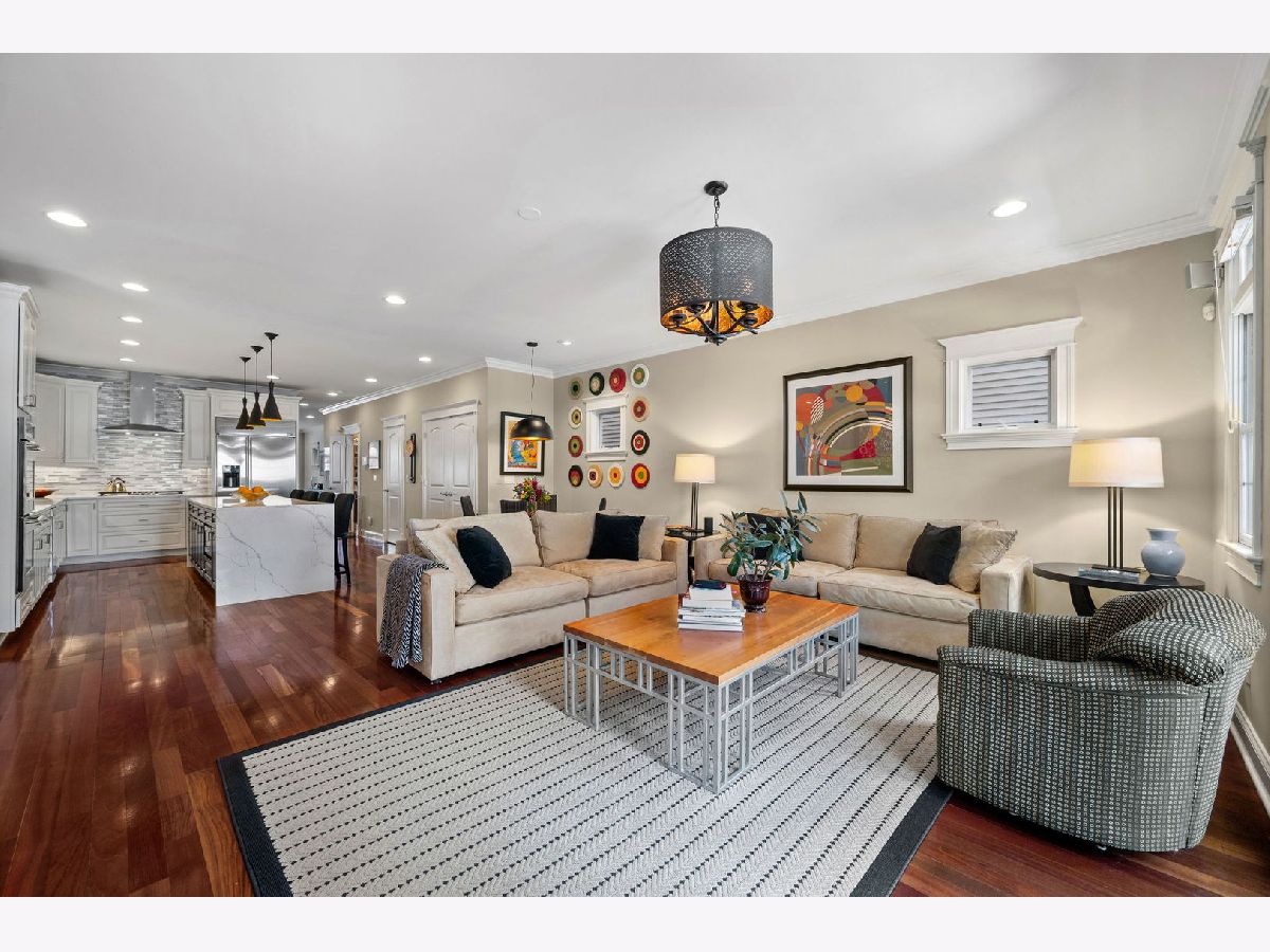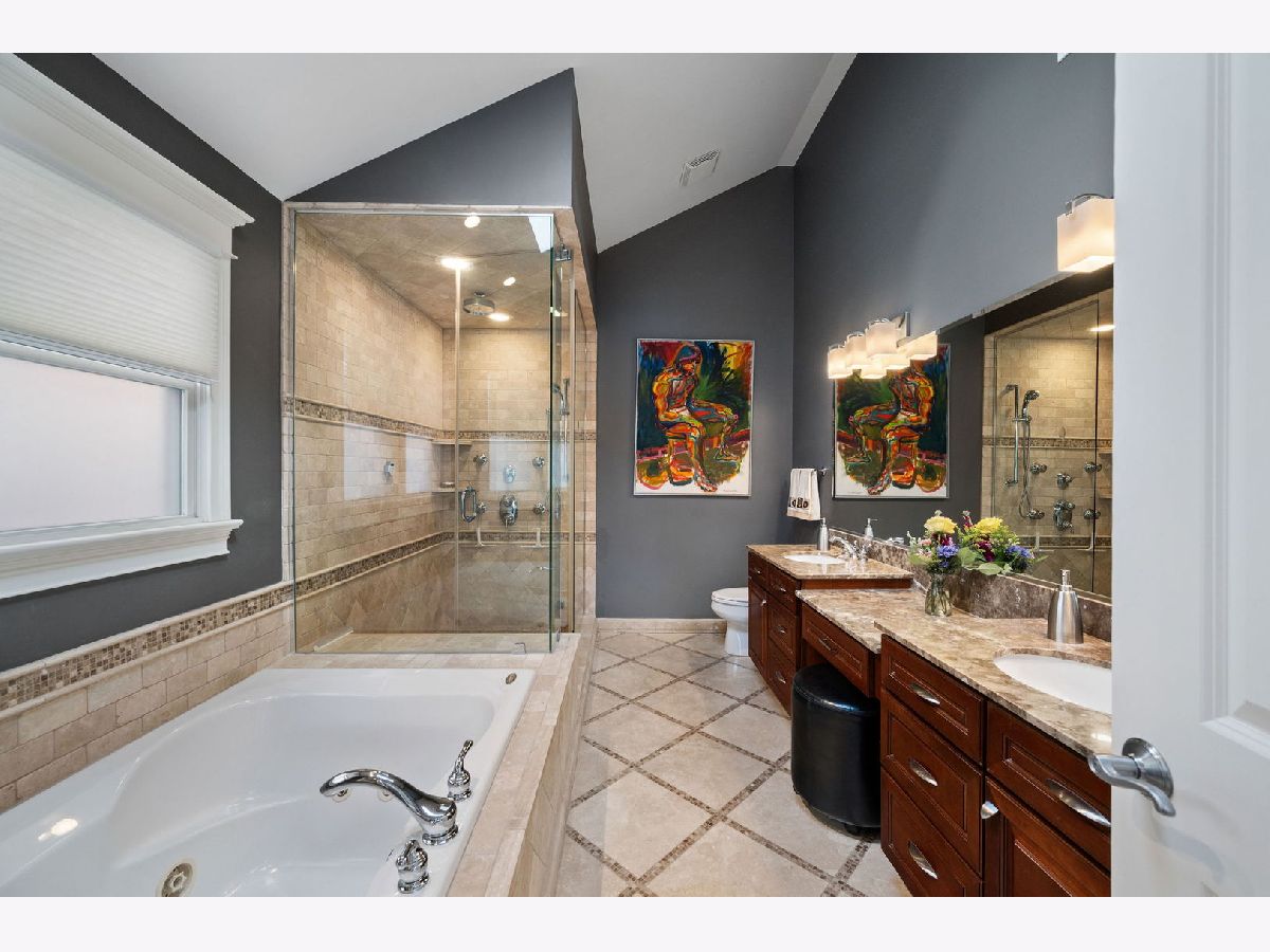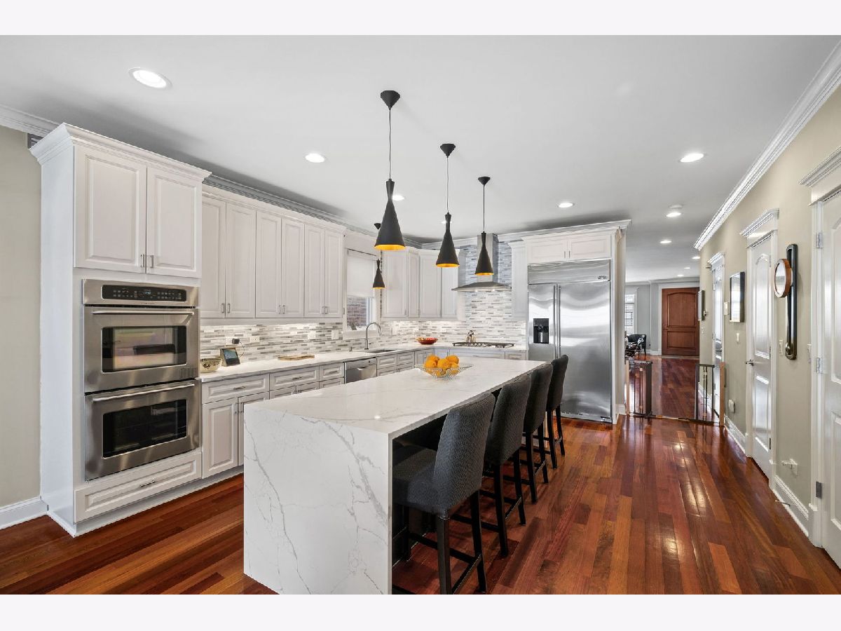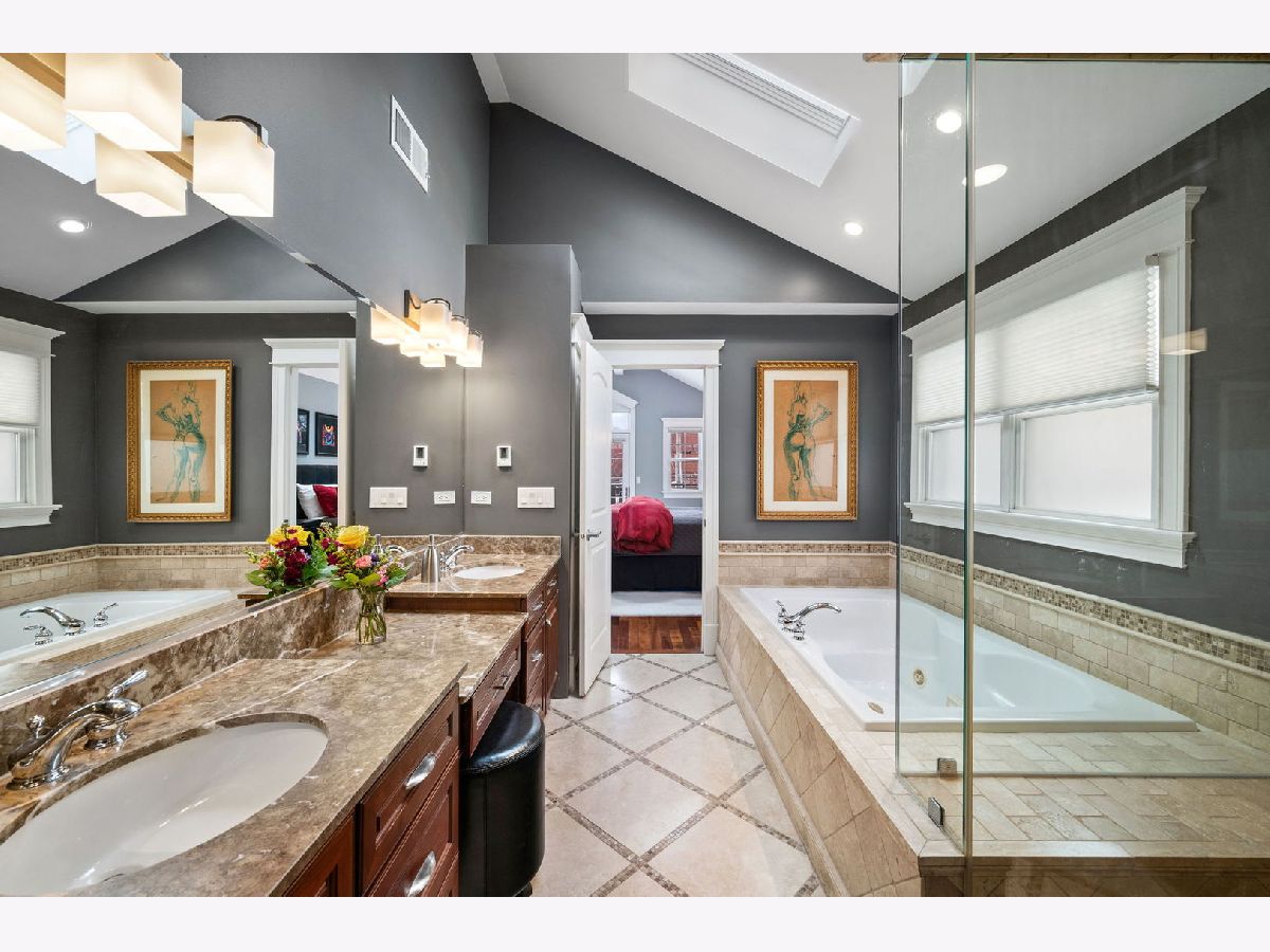 Elegant and beautifully maintained Ravenswood residence, ideally positioned between Andersonville and Lincoln Square on an extra-deep 157' lot. Thoughtfully designed with oversized rooms, hardwood floors throughout (except lower level), and an open layout that balances everyday comfort with effortless entertaining. The expansive kitchen is both functional and refined, offering abundant cabinetry, high-end appliances, quartz countertops, a generous waterfall island, and a walk-in pantry. The adjoining family room comfortably accommodates plenty of large furniture as well as a breakfast or game table and opens seamlessly to a spacious deck and rare, professionally landscaped city backyard - a true extension of the living space. A striking staircase with skylight and updated lighting leads to the second level. The primary suite serves as a private retreat, featuring cathedral ceilings, skylights, fireplace, two walk-in closets, balcony overlooking the yard, and a spa-inspired bath with dual vanities, jetted tub, and steam shower. Two additional generously sized bedrooms, a beautifully finished stone bath, and a full laundry room with sink complete this level. The front bedroom showcases impressive windows and soaring ceilings. The lower level offers excellent ceiling height and natural light, anchored by an oversized recreation room with fireplace and wet bar, along with two spacious bedrooms, a stone bath, and substantial utility and storage space. Just steps to Winnemac Park and convenient to Chappell, Amundsen, Lycee Francais de Chicago, Rogers Park Montessori, and Waldorf, plus both Brown Line and Metra access. Enjoy easy proximity to neighborhood dining, shopping, and the charm of Lincoln Square and Andersonville.