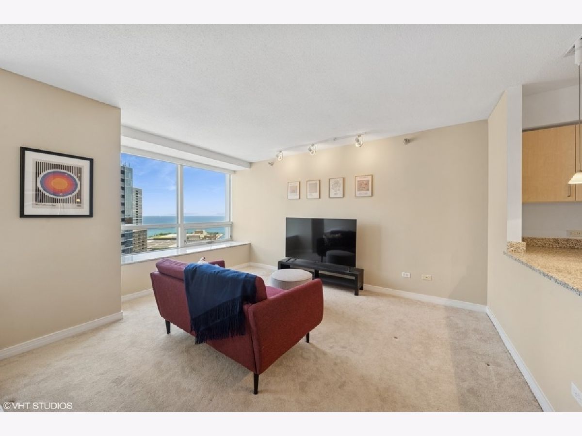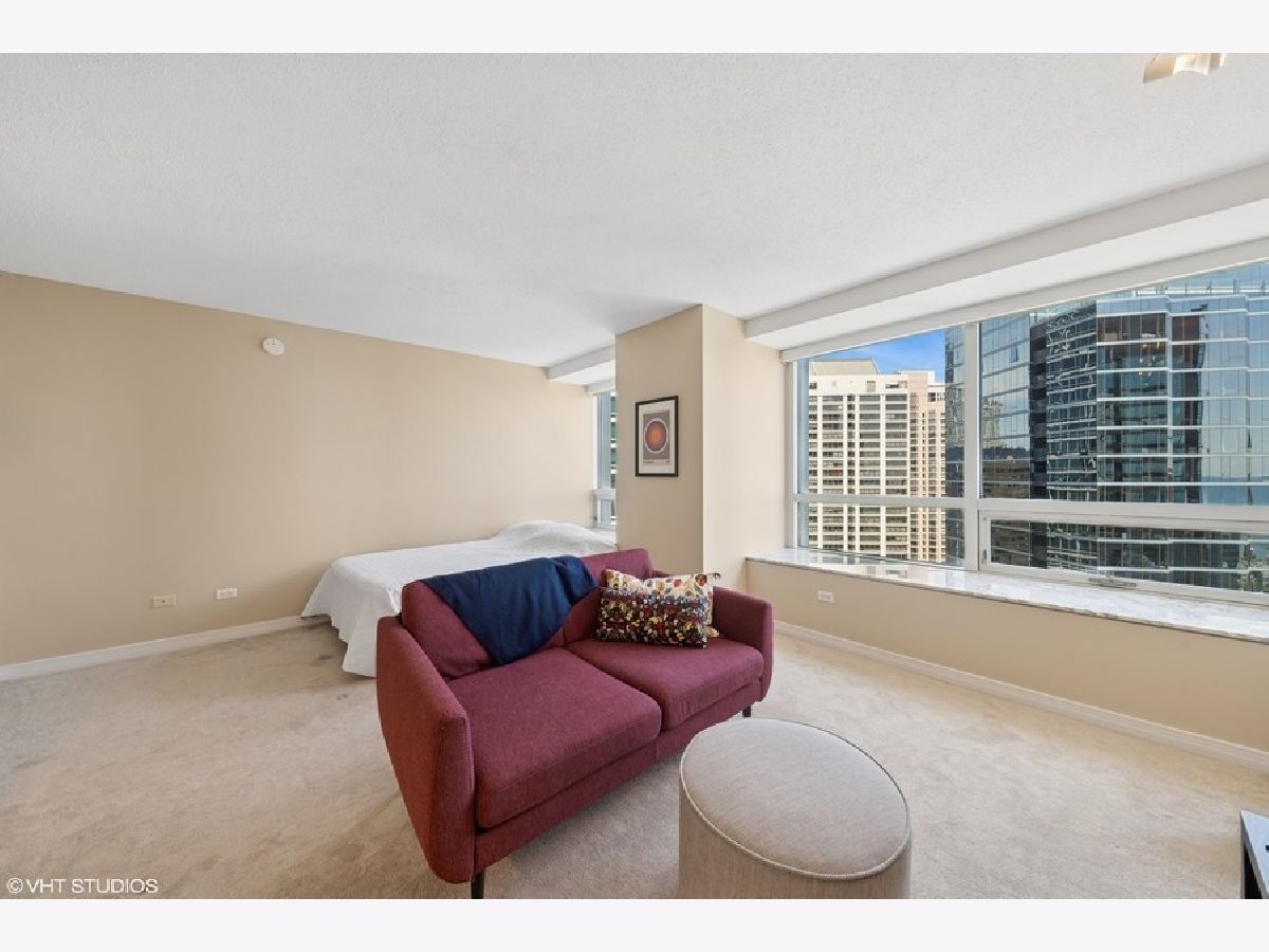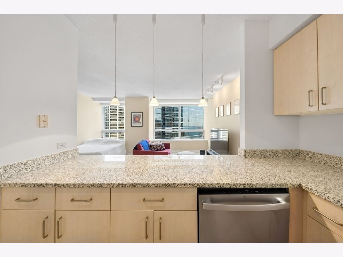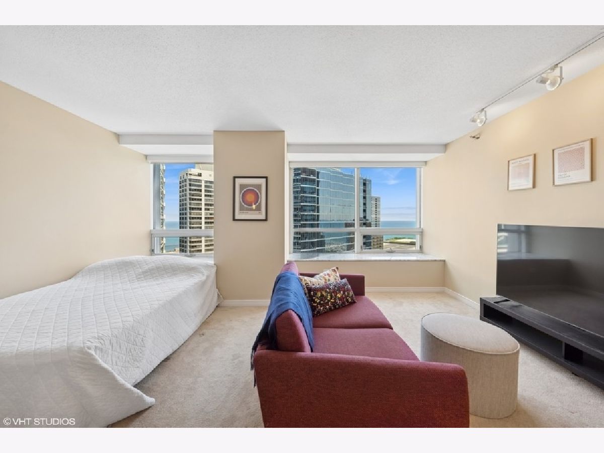 Beautiful 650 sq. ft. studio condo with east and north showcasing views of the lake! Large living space with plenty of room for living and bedroom. Open kitchen with breakfast bar, abundant kitchen cabinets, and GE SS Appliances. Dressing area with three large closets adjacent to bathroom which includes full vanity and tub/shower. Full amenity building with luxury sundeck with gas grills, entertainment room, exercise room, business center, conference room, on-site management, and 24/7 doorperson. Low assessments cover all the amenities, heat, and internet access. Great location steps to downtown, transportation, Michigan Ave. shopping, Whole Foods, riverwalk, lake, Target, Navy Pier, and nightlife! Rental parking available.
