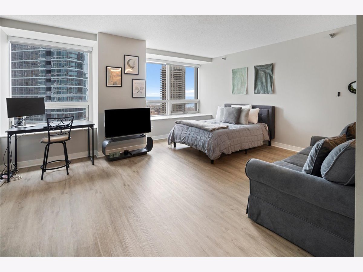 Great Large Studio with northeast views of Lake Michigan and Bennett Park! Marble foyer leading to an Open kitchen with granite counters and Large Breakfast Bar. New LVT flooring creating contemporary look and great flow! Marble window sills for seating to watch the views! Bath has granite vanity with drawers in vanity. Good closet space and storage locker. Building has recently renovated sundeck, fitness center, business center, new community room, laundry room. Parking available for rent through the garage. The lowest monthly assessments in the neighborhood! Great deal! Tenant occupied until June 30th.