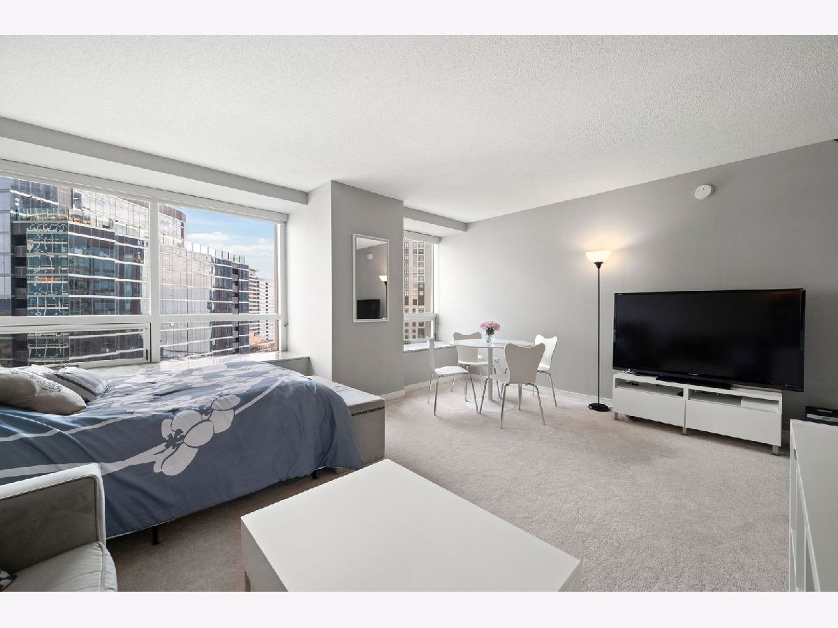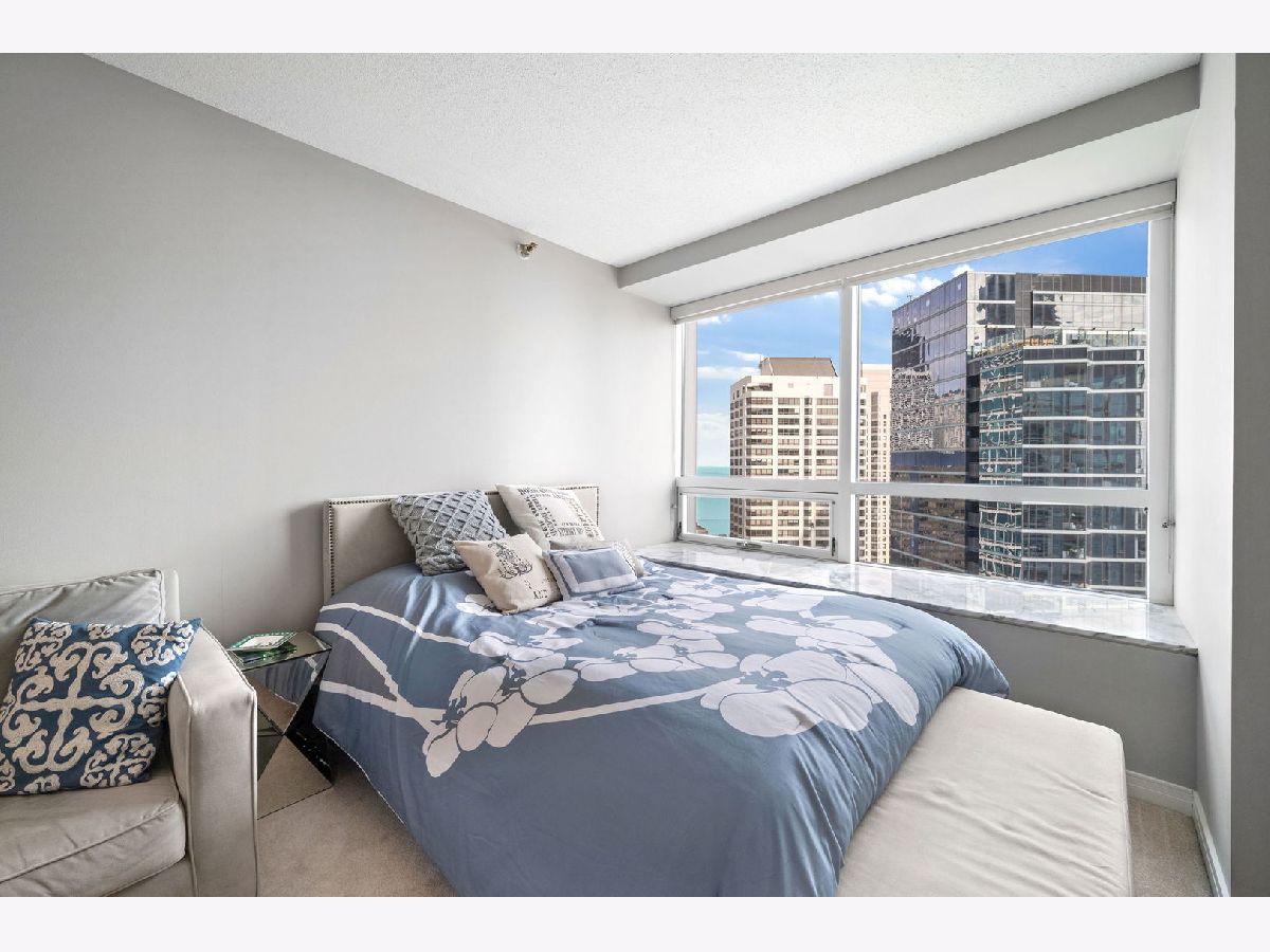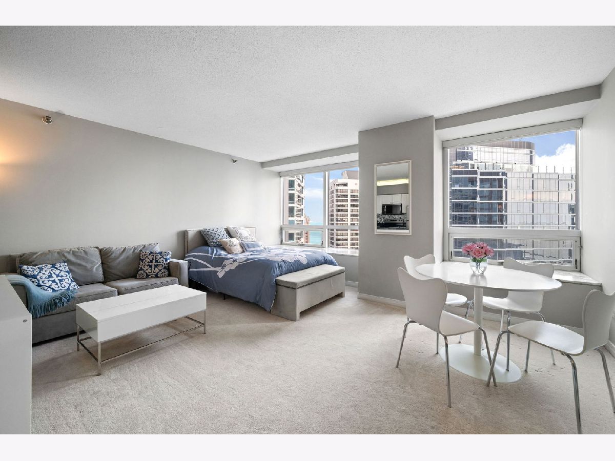 High-floor Streeterville studio with 651 sq ft and sweeping east/north exposures showcasing beautiful lake views. Bright, open layout with expansive living/sleeping space and an updated kitchen featuring stainless steel appliances. Oversized windows flood the home with light, complemented by deep stone ledges-perfect for seating or plants. Large dressing area with three organized closets offers exceptional storage. Bath with tub/shower combo and vanity with drawers. This condo is in pristine condition and move in ready. Full-amenity building with 24-hour door staff, fitness center, entertainment suite, and sundeck with grills. Prime location steps to Whole Foods, Target, Walgreens, and just blocks to Northwestern Medical Campus.