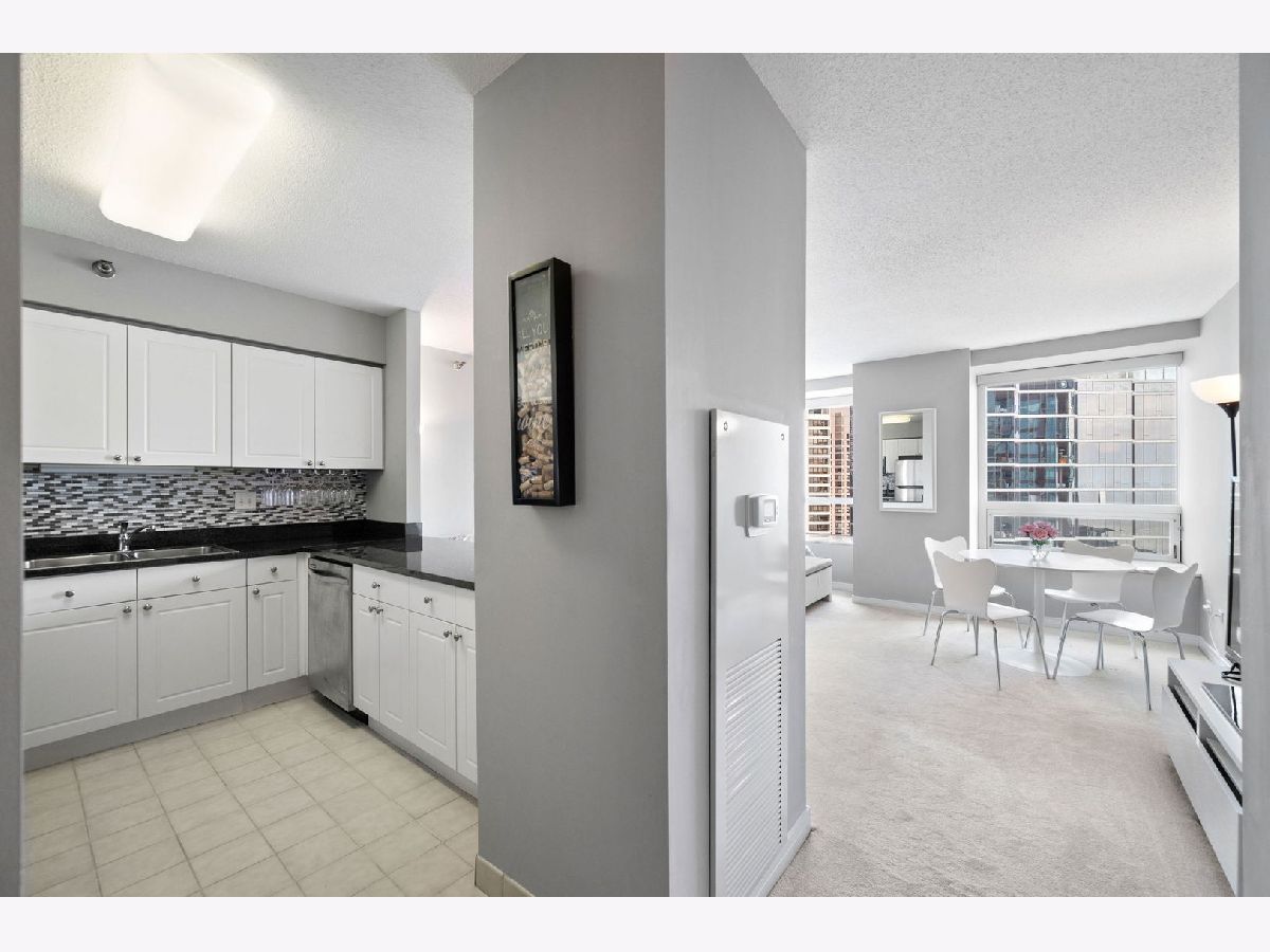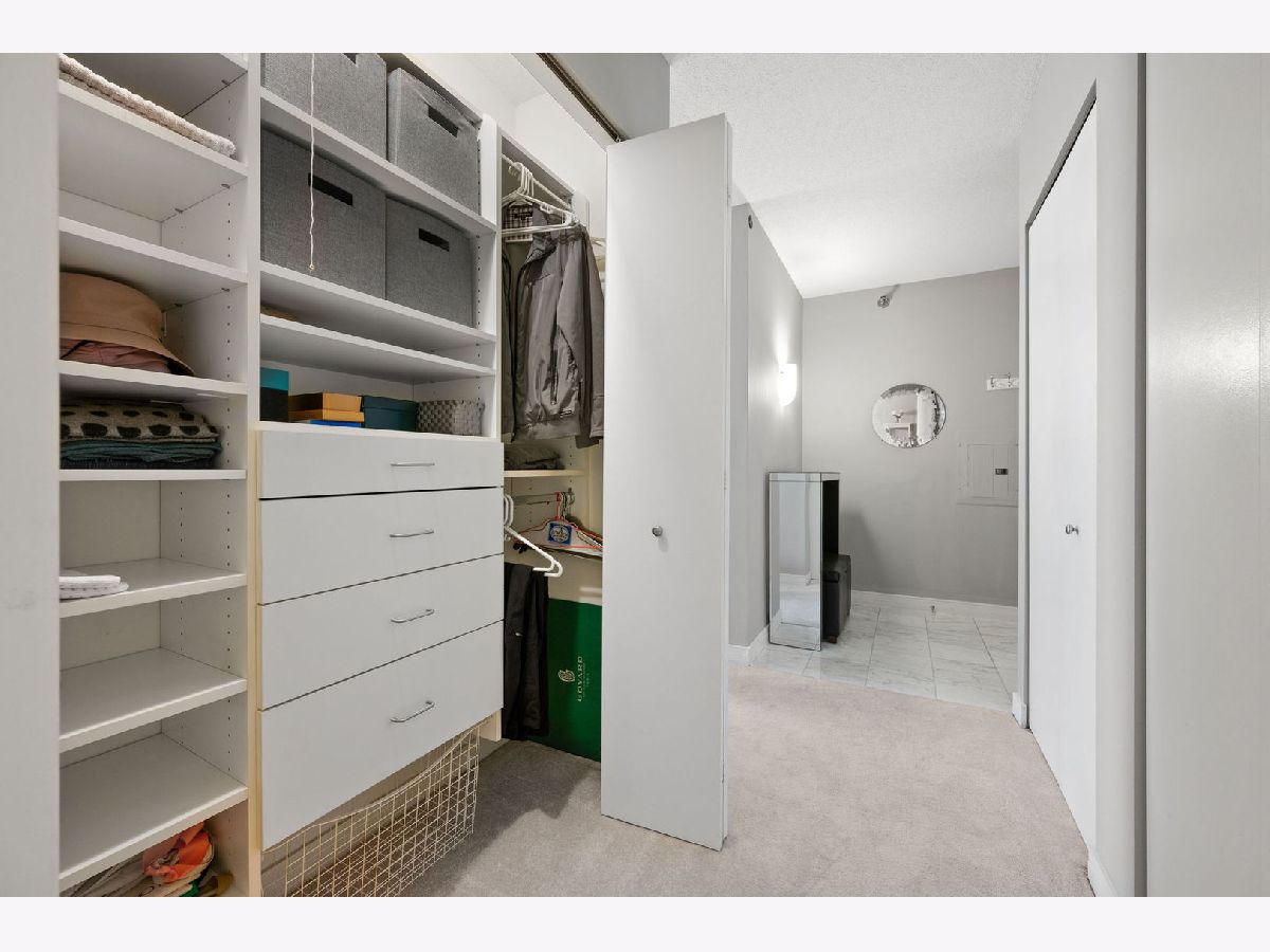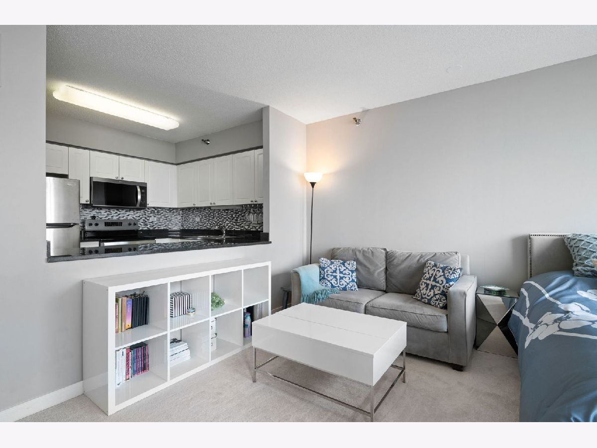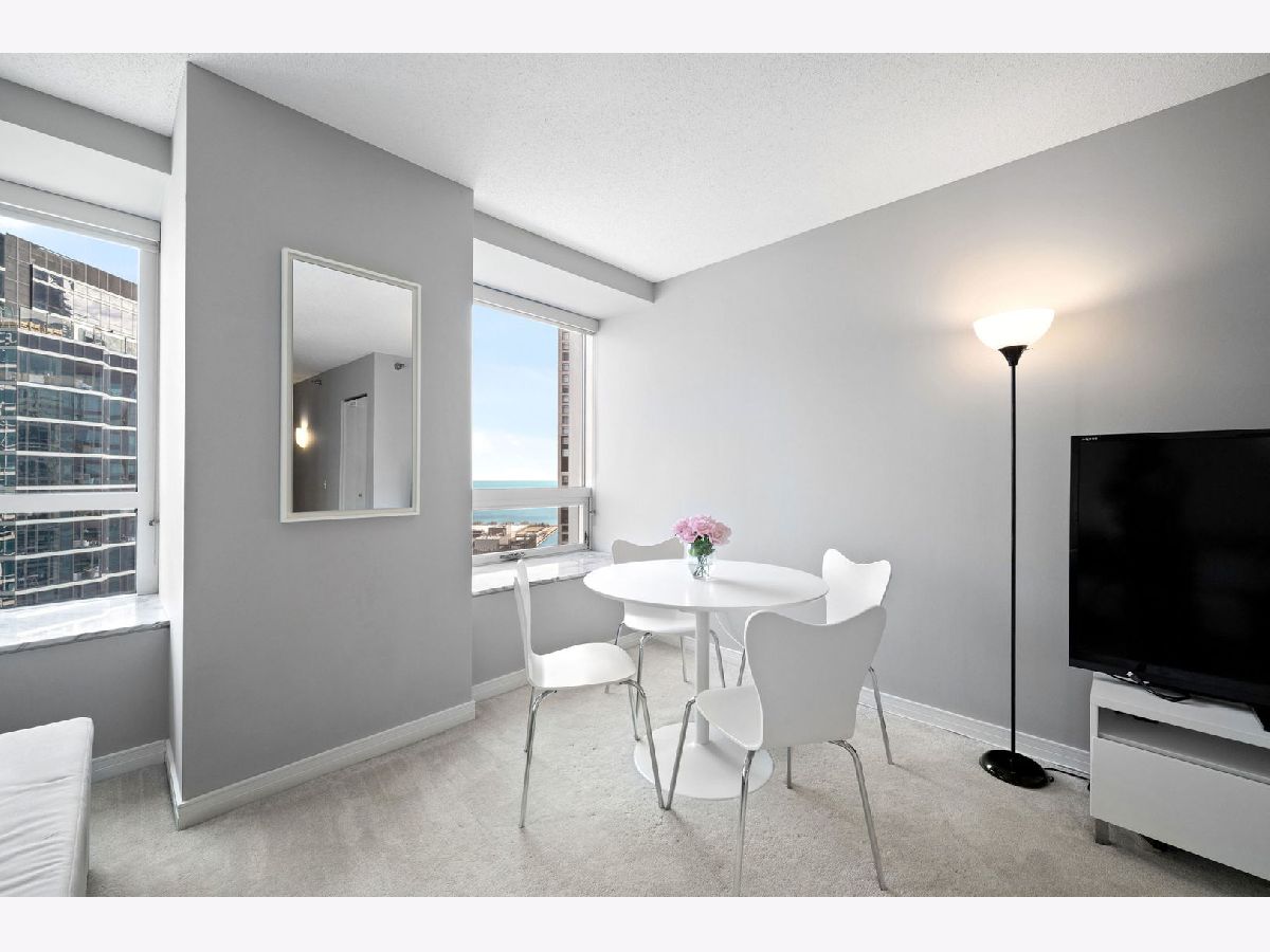 High-floor Streeterville studio with 651 sq ft and sweeping east/north exposures showcasing beautiful lake views. Bright, open layout with expansive living/sleeping space and an updated kitchen featuring stainless steel appliances. Oversized windows flood the home with light, complemented by deep stone ledges-perfect for seating or plants. Large dressing area with three organized closets offers exceptional storage. Bath with tub/shower combo and vanity with drawers. This condo is in pristine condition and move in ready. Full-amenity building with 24-hour door staff, fitness center, entertainment suite, and sundeck with grills. Prime location steps to Whole Foods, Target, Walgreens, and just blocks to Northwestern Medical Campus.