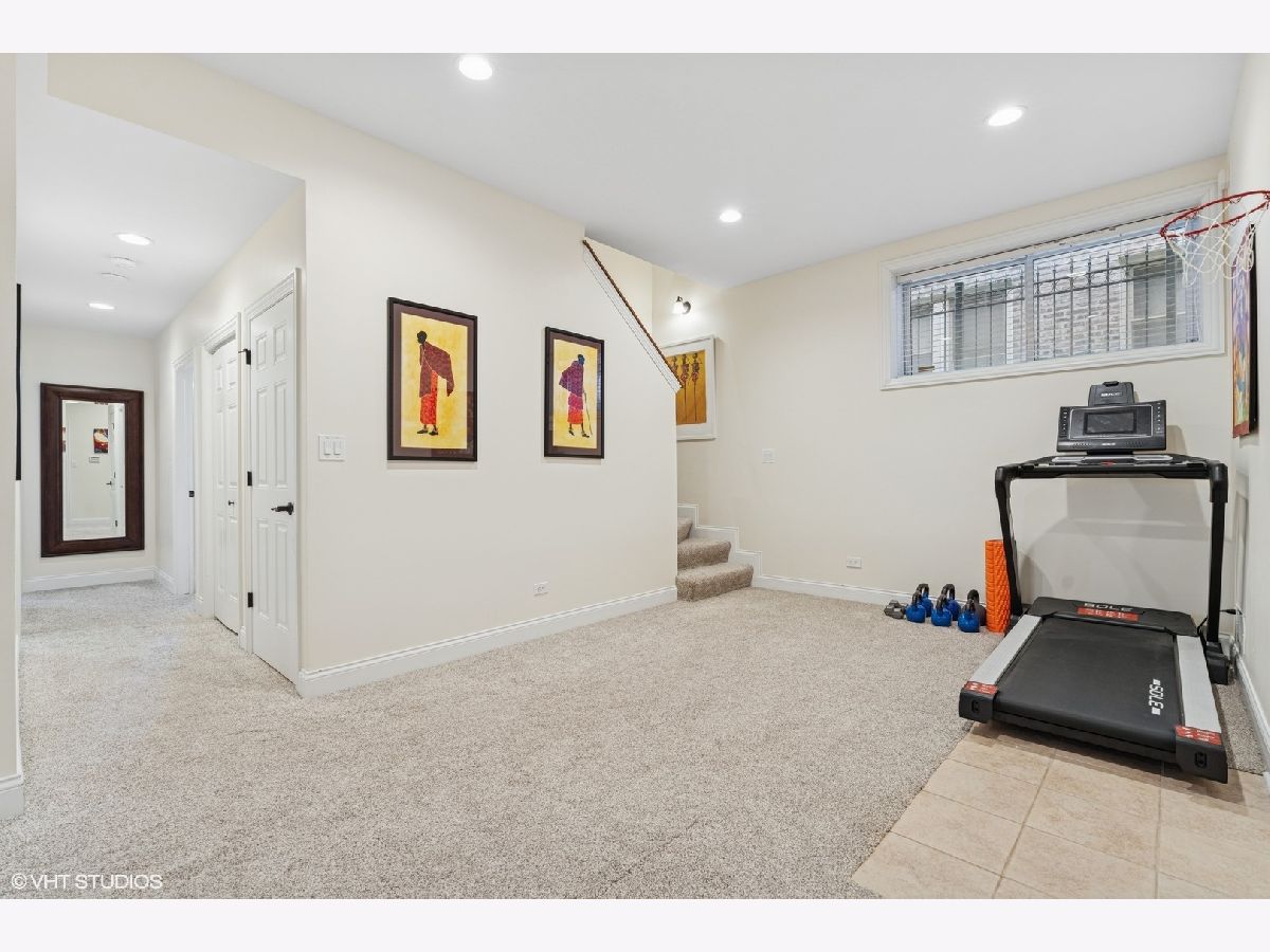 Airy and spacious duplex down with four bedrooms, three full baths, and parking for two cars in an intimate Hyde Park building. Open floor plan features living area with gas fireplace, large dining area, and stainless/granite kitchen. Two bedrooms and two full baths on the main level include a primary suite with luxury bath with whirlpool and separate shower. The main level laundry room with side-by-side washer dryer is conveniently located near the bedrooms. The lower level with volume ceilings adds a family room with workout area, two additional bedrooms, and a third full bath. Elevated finishes include hardwood floors on the main level, recessed lighting throughout, and travertine baths. One garage parking spot and one exterior space are included. Self-managed building with just six units, this inviting home is wonderfully located near transportation, 53rd street shopping, and the University.