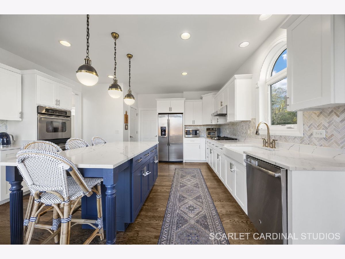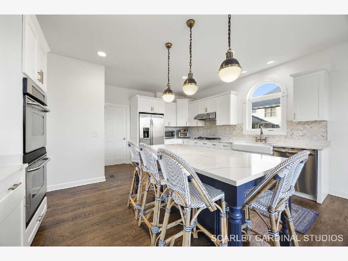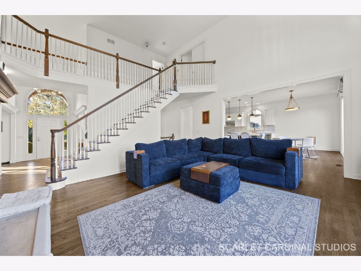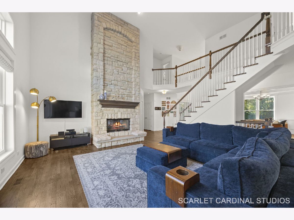 Custom-built Airhart home offering over 5,000 square feet of beautifully finished living space! The main level features a formal living and dining room with extensive woodwork and gleaming hardwood floors that flow seamlessly throughout. The chef's kitchen has been beautifully renovated with stainless steel appliances, a farmhouse sink, a large island with seating, quartz countertops, and custom soft close shaker cabinetry. An adjacent breakfast room opens to the deck for easy indoor-outdoor dining. At the heart of the home, the dramatic two-story great room showcases a stunning floor-to-ceiling stacked stone, double-sided fireplace that also warms the cozy office. Upstairs, the primary suite is a private retreat with a tray ceiling and a spa-like bath complete with dual vanities, soaking tub, and separate shower. Enjoy an expansive walk-in closet with plenty of extra storage space. The second bedroom boasts a soaring vaulted ceiling with large windows, including an elliptical window, a walk-in closet, and private bath. Bedrooms 3 and 4 also include large closets, and share access to another full bath with separate vanities. Downstairs, the walkout basement provides even more living space, including a spacious lower level living room with fireplace, a rec room, a wet bar, and a full bath. Sliding glass doors lead to the back patio, creating a perfect flow for indoor-outdoor entertaining. The backyard backs to the nature preserve, offering open views and a private, tranquil retreat from everyday life. Enjoy the brick paver patio with built-in firepit, and convenient access to the main floor deck, ideal for gatherings or quiet evenings at home. An attached 3-car garage ensures plenty of room for vehicles and storage. Brand new Pella windows throughout the first floor. Both HVAC systems were replaced in 2023. Roof 2020-2021. Brand new washer and dryer. Perfectly located near Downtown Naperville and Downtown Lisle, this home offers easy access to parks, shopping, and dining, including Amazon Fresh, Costco, and H-Mart. Just minutes from I-88 and the Metra stations in Naperville and Lisle, commuting is a breeze. Students attend award-winning Naperville District 203 schools. Welcome home!