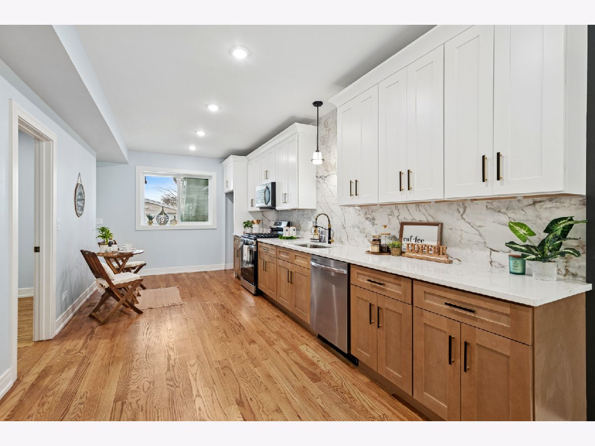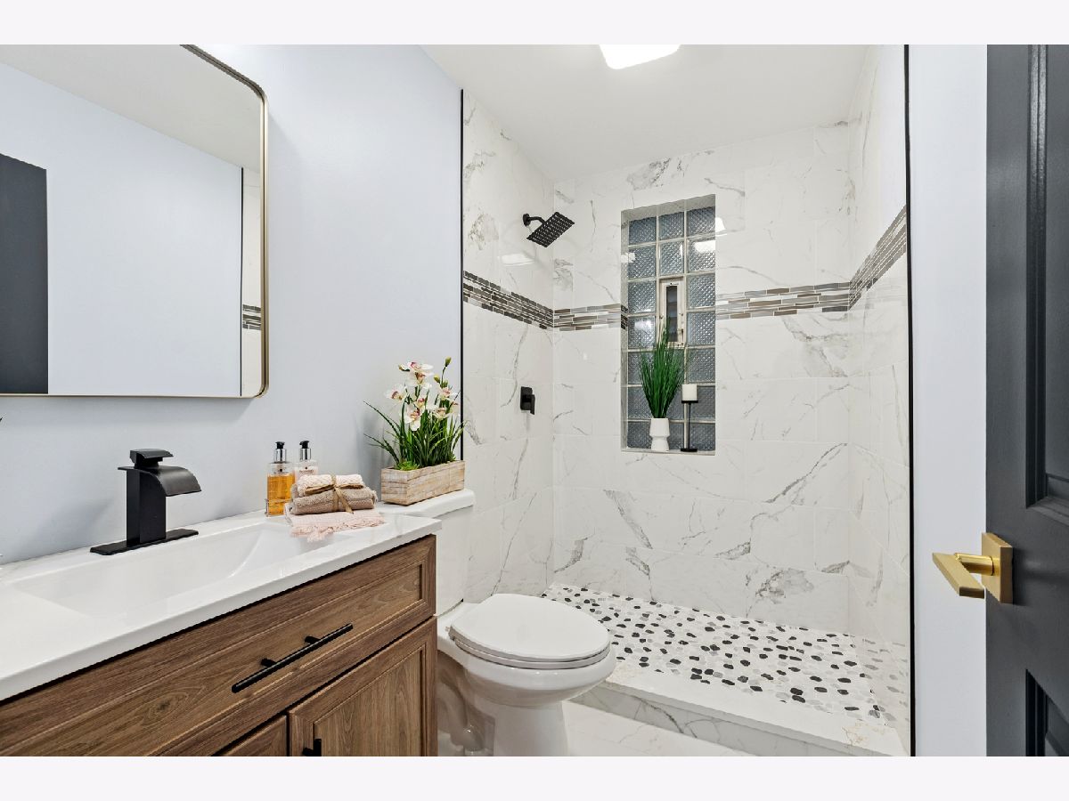 Welcome to this modern, totally rehabbed home in Washington Park neighborhood of Chicago, where everything is NEW, NEW NEW!!! This completely rehabbed property offers 4 bedrooms, bonus room/office, 2 +1/2 spa-like bathrooms, and huge 4 car detached garage! This stunning home combines modern elegance and luxury with a top quality finishes throughout: brand new flooring, custom made wainscot paneling, modern recessed lights and more! Open layout of main floor connects bright living room, spacious kitchen and dining space, with additional quiet office/bonus room in the back of the house. Cozy family room with a wet bar in the basement create an inviting atmosphere for both daily living as well as entertaining. The kitchen is equipped with all ss appliances, shaker style cabinets and quartz countertops. You don't have to worry about anything, since all appliances, plumbing, electric, furnace, AC, HWH, wired security system, windows, roof, siding, garage door, sidewalks - you name it - was replaced in 2023/2024! This homes offers comfort, beauty, abundance of space and piece of mind! Convenient location: train and buss stops nearby, and only a few minutes drive to major expressways! Don't miss the opportunity to make it your own!
