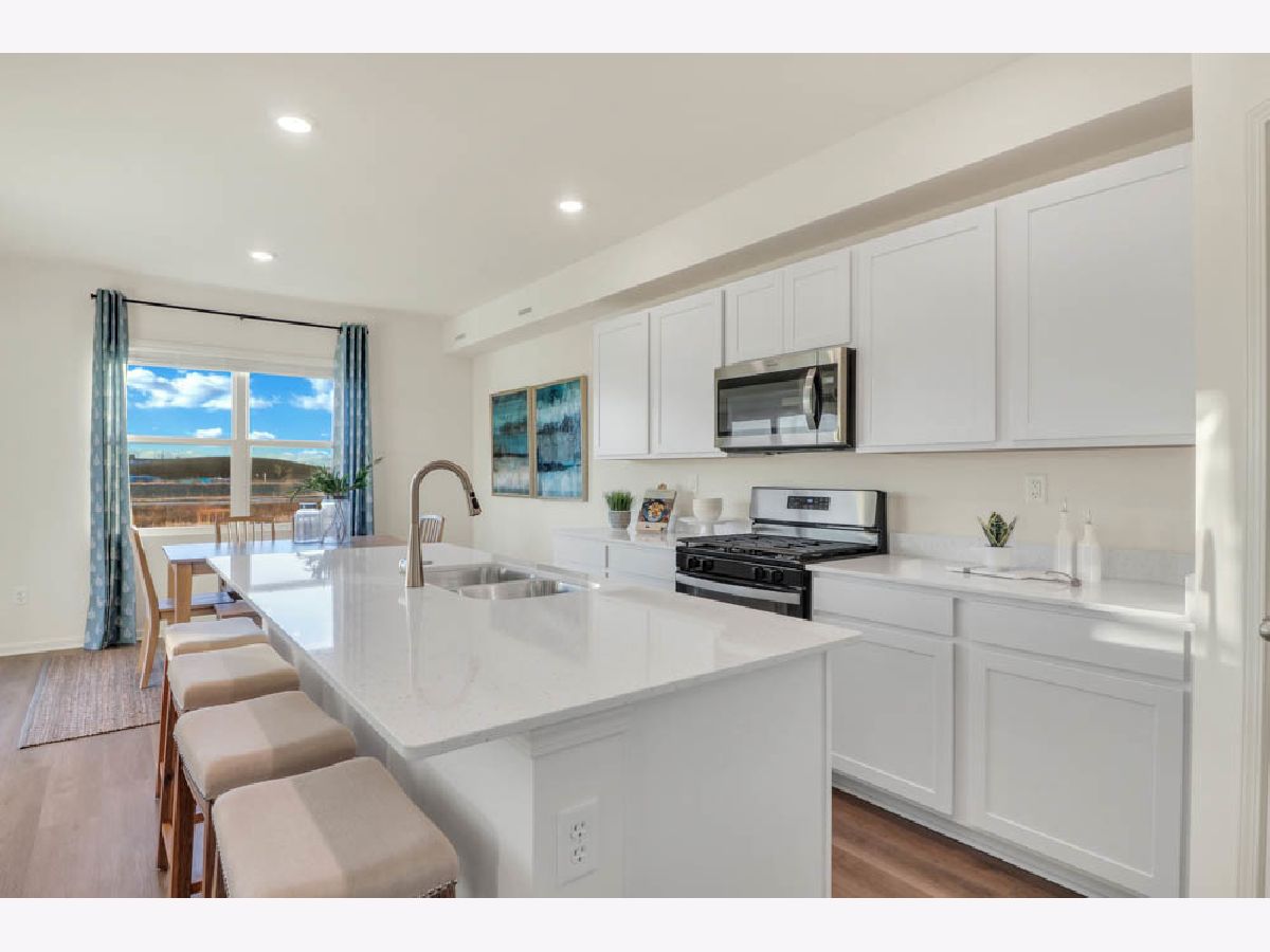Introducing the Bradley plan, one of our single-family plans at Cedar Creek in Joliet, IL. This home at 513 Adirondack Court is situated on a spacious home site, providing plenty of room for outdoor enjoyment just in time for an April move-in. Step inside this 1,663 square foot home with 3 bedrooms, 2.5 baths, a 2-car garage and smart home technology. Entering the foyer, you will first pass the powder room and then walk into the main level living space. The living area is open concept, with your bump out dining area, a living room, and kitchen blend together seamlessly. The kitchen shows off beautiful cabinetry, a pantry, and an island with ample seating space that looks out to the living room. This layout is great for entertaining family and friends. Upstairs, you'll find a loft which is perfect as a home office or study space! Your primary bedroom features a deluxe bath with ample storage in the walk-in closet, and a dual sink vanity. 2 additional bedrooms with closets, a second bath, linen closet, and a convenient upstairs laundry room complete the rest of the second floor. All D.R. Horton Chicago homes include our America's Smart Home Technology, featuring a smart video doorbell, smart Honeywell thermostat, smart door lock, Deako smart light switches and more. Photos are of similar home and model home. Actual home built may vary.