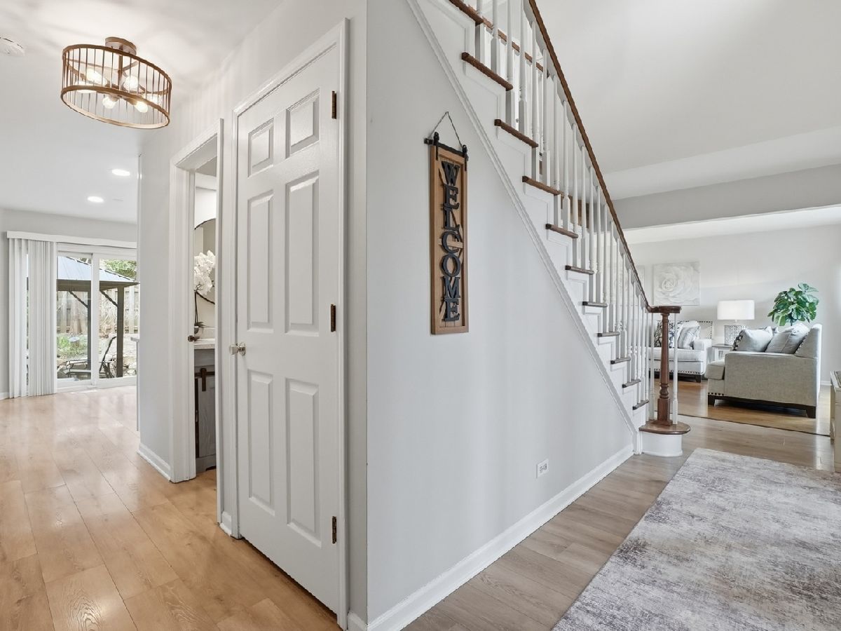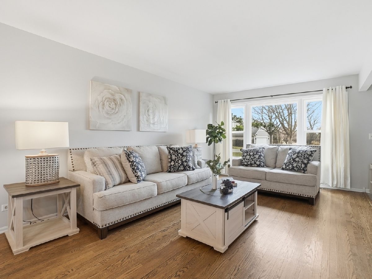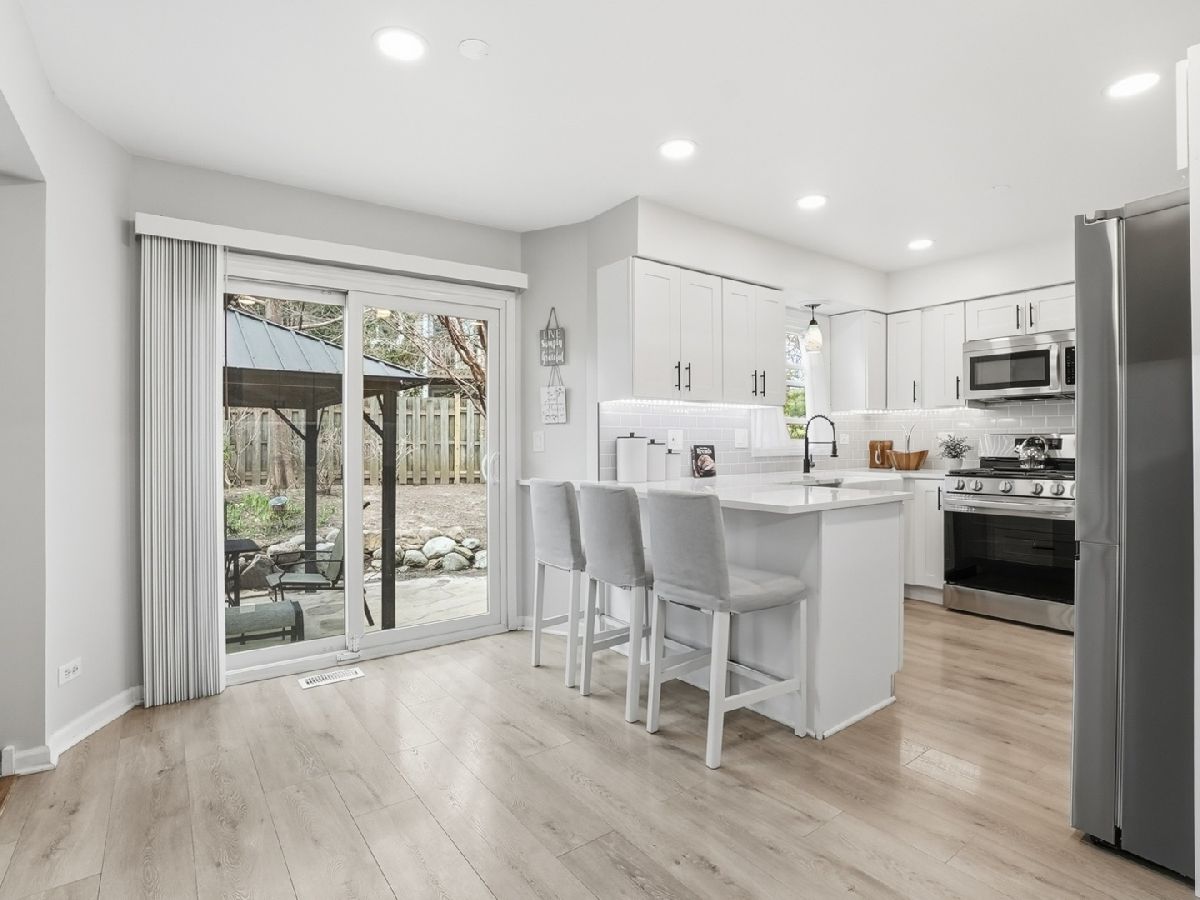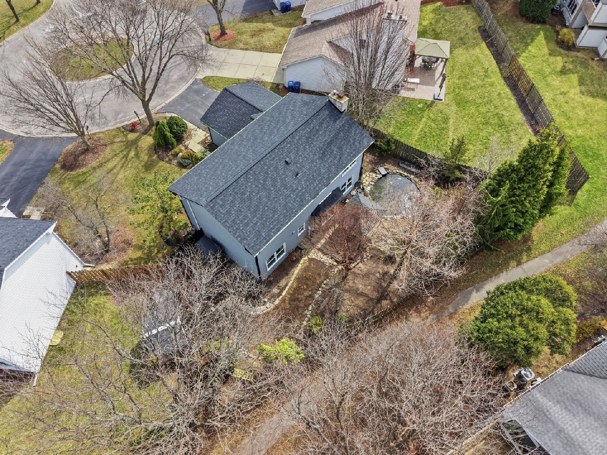 Welcome home to this beautifully updated 3-bedroom, 2.5-bath home in the desirable Pines neighborhood, perfectly located near everything Gurnee has to offer! A dramatic two-story foyer welcomes you into a bright, sun-filled living room with gleaming hardwood floors that continue into the formal dining room. The brand-new kitchen features white shaker cabinetry, quartz countertops, a pantry, and newer stainless steel appliances. It opens seamlessly to a cozy family room with a wood-burning fireplace (gas starter) and peaceful views of the professionally landscaped backyard. The main level also includes a newly remodeled powder room and a convenient laundry/mudroom. Upstairs, the spacious primary suite offers a large walk-in closet and a private bath with double vanity, jacuzzi tub, and separate shower. Two additional generously sized bedrooms and an updated hall bath with double vanity and stone countertops complete the second floor. The full basement provides endless potential for future living space. Step outside to your own private retreat-fully fenced and beautifully landscaped with raised garden beds, a koi pond, and plenty of space to relax or entertain. Major updates include: new roof and gutters 2025), New Garage door (2025), windows (2021), siding (2016), and HVAC (2017). Located on a quiet cul-de-sac, this home truly has it all. Don't miss it!