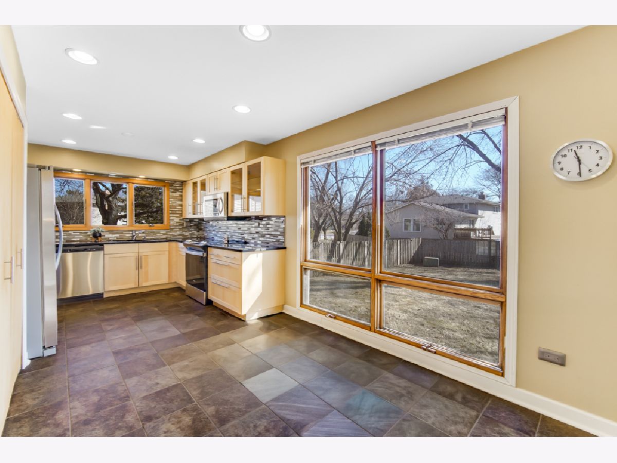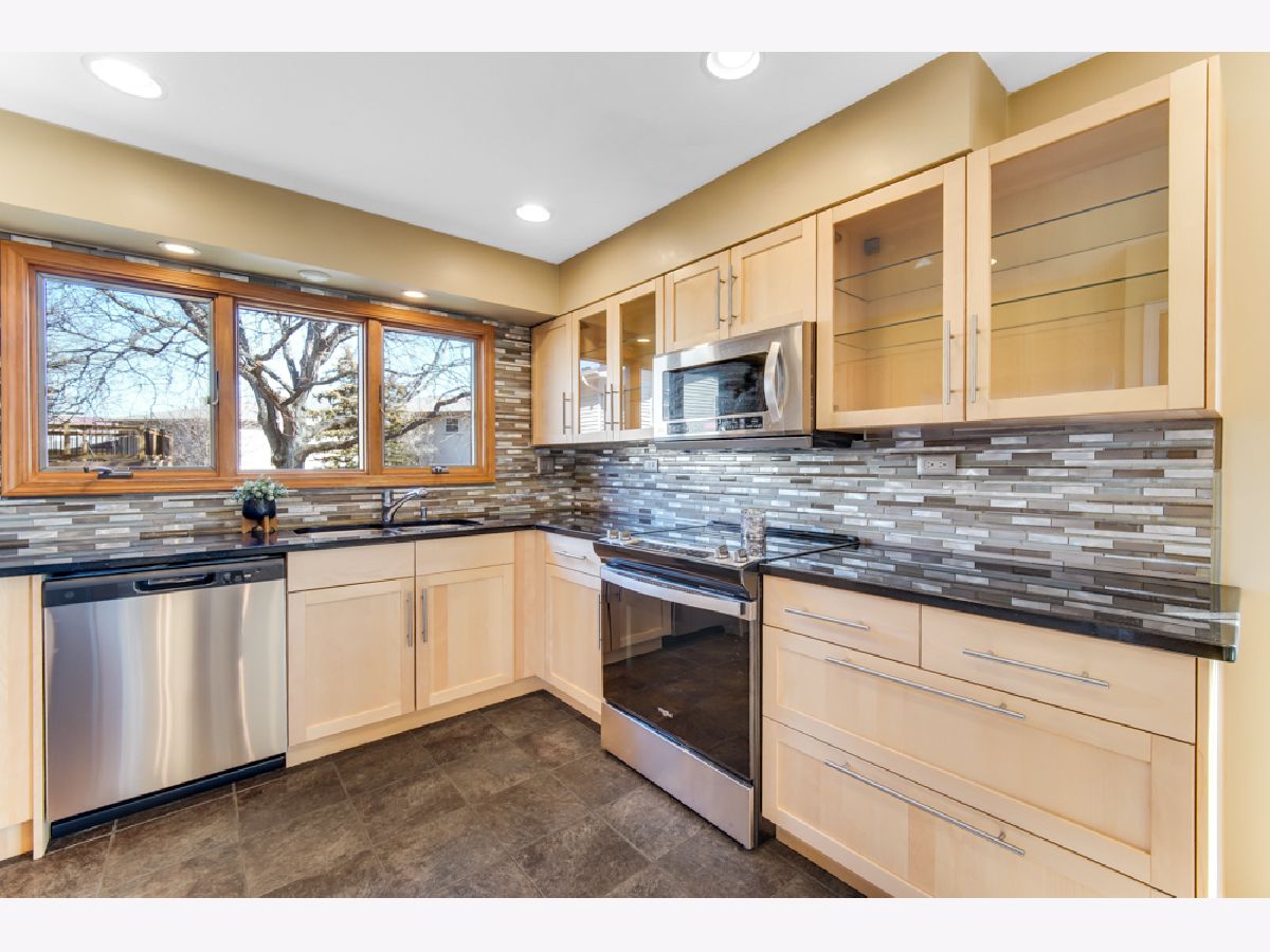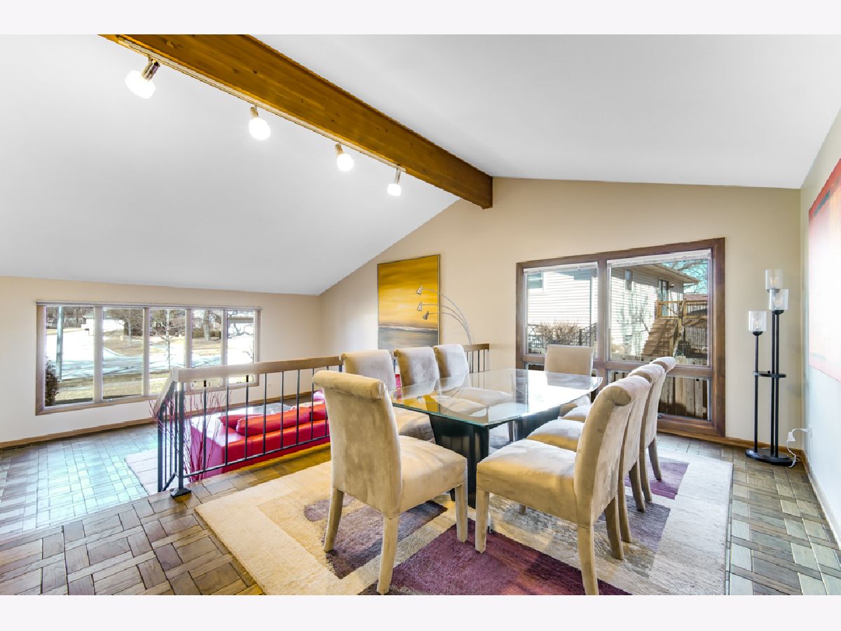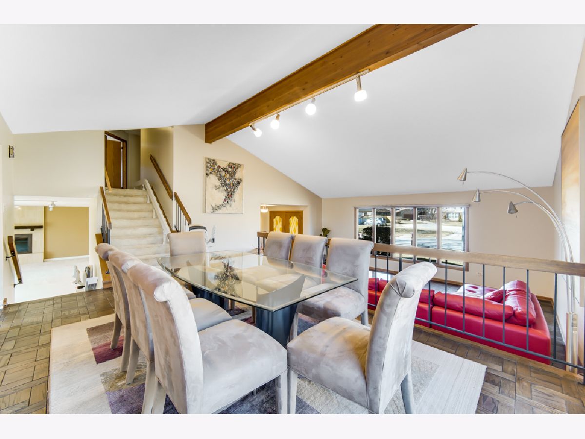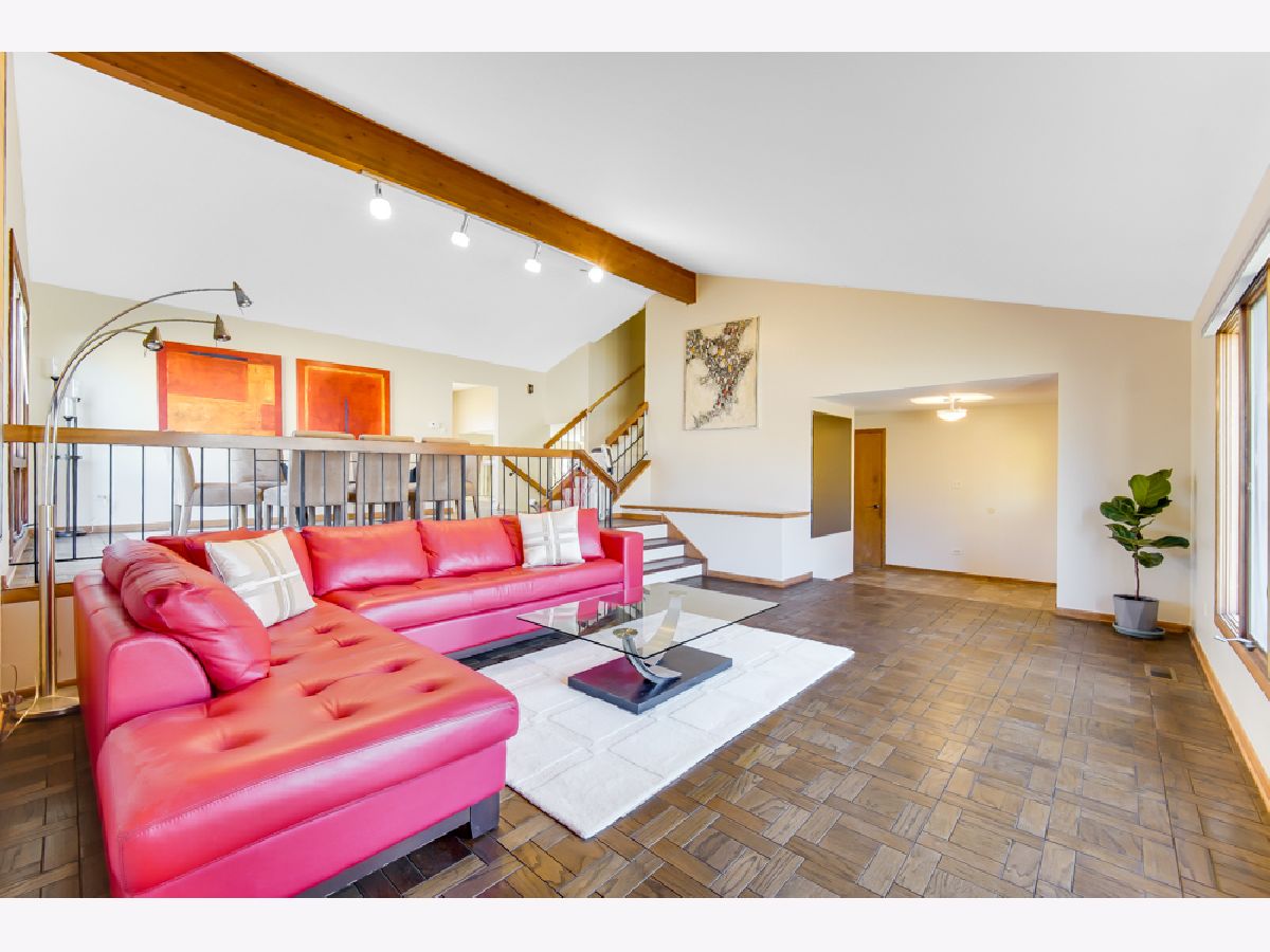 Located in the coveted Feather Sound subdivision, this striking 3-bedroom, 2.1-bath split-level stands out with exceptional curb appeal, featuring a brick facade, arched entry, and beautiful landscaping. Step into the welcoming foyer to reveal vaulted ceilings, exposed beam detail, and parquet hardwood floors flowing seamlessly through the living and dining rooms. The elevated dining area overlooks the spacious lower-level family room, creating an open yet defined layout ideal for both everyday living and entertaining. The updated kitchen showcases light modern cabinetry, sleek hardware, stainless steel appliances including a newer refrigerator and dishwasher, a contemporary backsplash, recessed lighting, and large windows that flood the space with natural light while overlooking the fenced backyard. The expansive 10' x 28' family room is the true heart of the home, featuring walkout access to the backyard deck, track lighting, and a statement fireplace. The finished partial basement offers flexible space ideal for a rec room, workout area, or potential fourth bedroom, along with additional storage closets. Upstairs, you'll find the massive primary suite complete with multiple closets, parquet wood floors, and a full ensuite bath featuring double sinks, a floating vanity, and a separate shower room. Major updates include a brand-new roof (2025) and Andersen windows. Enjoy the fully fenced backyard with a spacious deck - perfect for outdoor entertaining. Ideally located less than a mile from the I-355 and I-55 interchange and The Promenade Bolingbrook for shopping, dining, and entertainment. Make your showing appointment today!