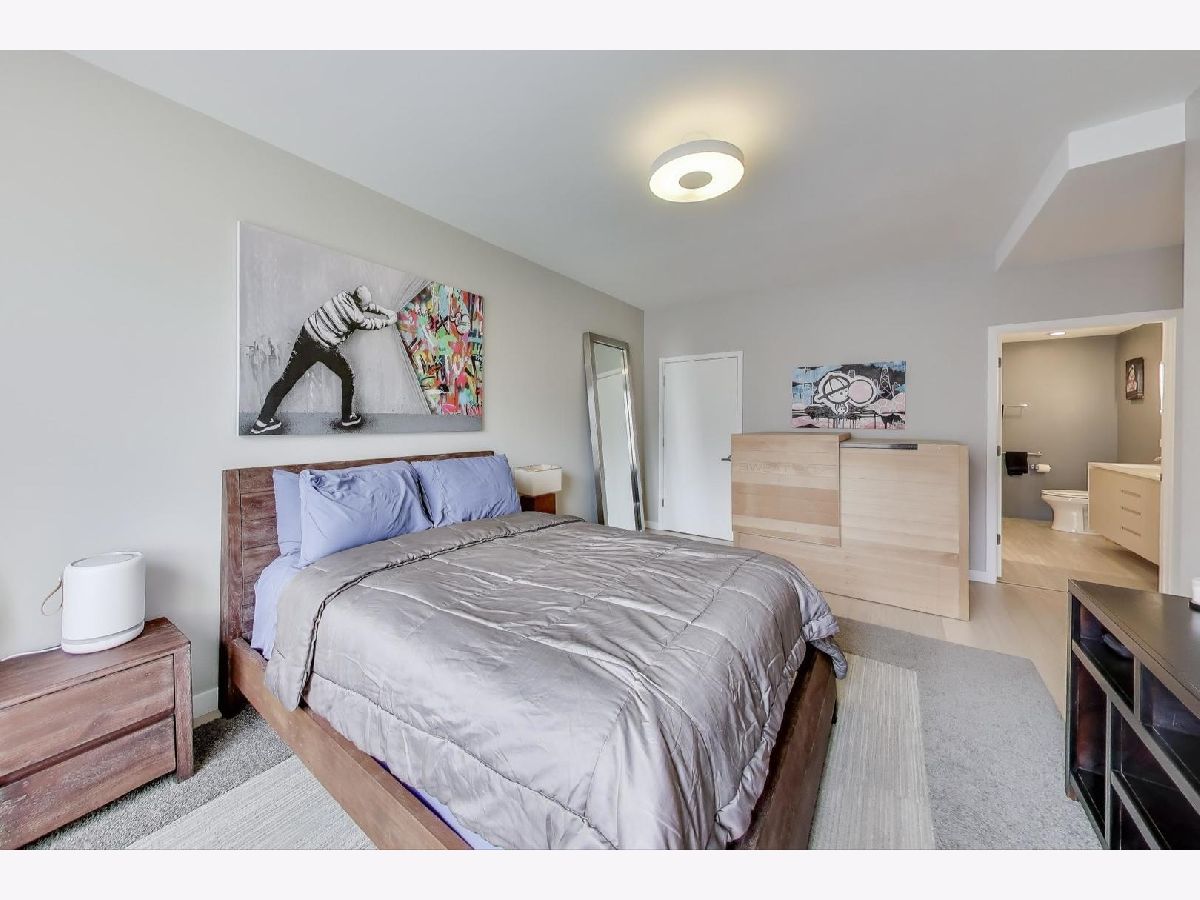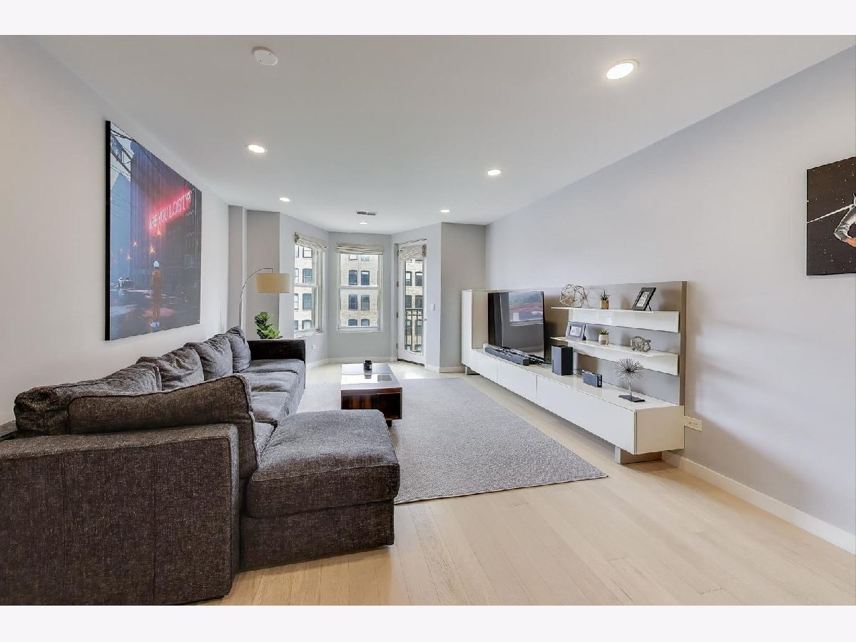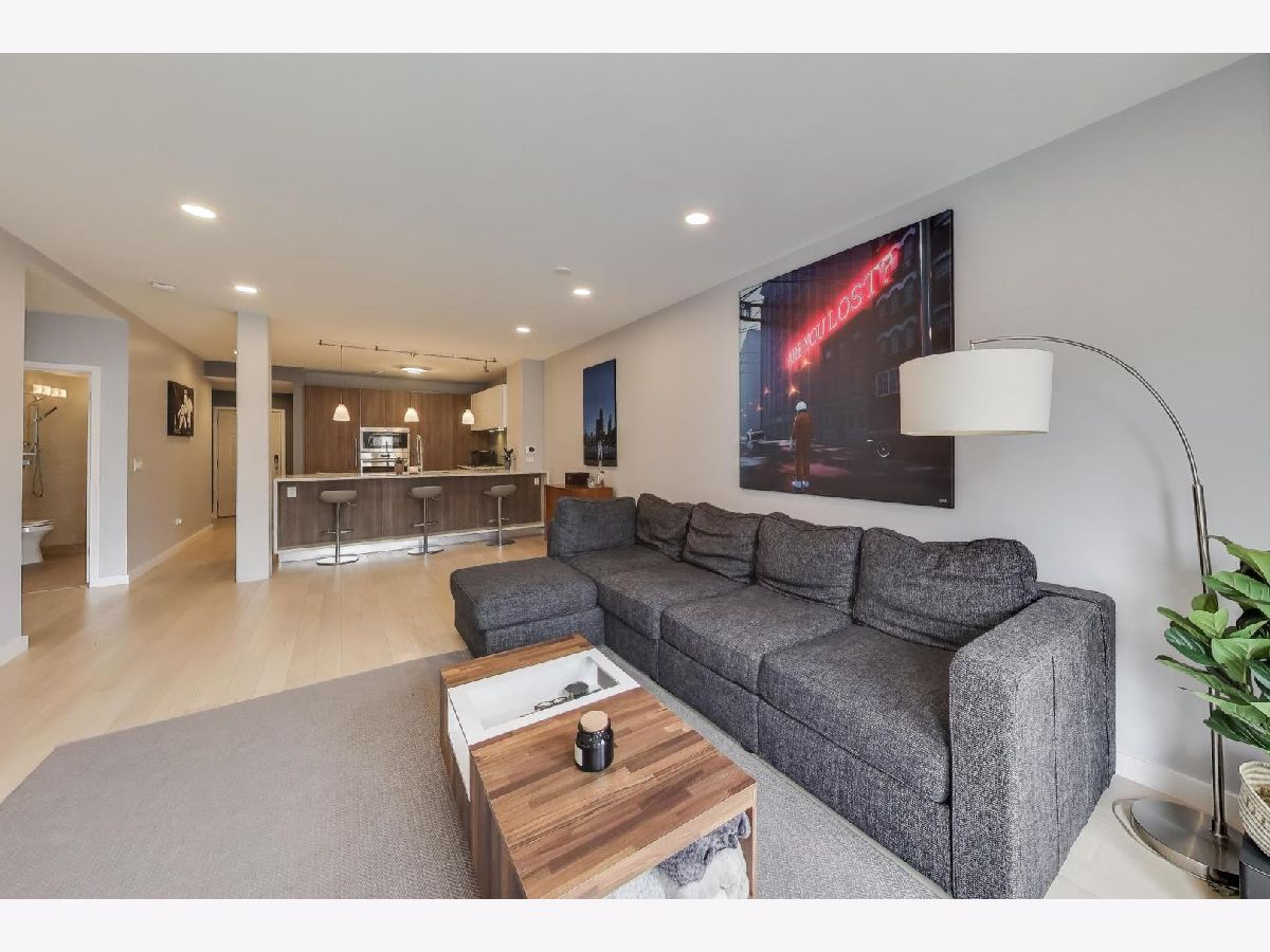 Discover unparalleled design and comfort in this 3-bedroom, 2-bathroom home, where every detail has been carefully curated. White oak hardwood floors flow throughout, leading into a living area anchored by bay windows that bathe the interior with natural light. Custom window treatments with sound-reducing inserts create a serene retreat, while a private balcony offers sweeping city views. The kitchen is a chef's dream, outfitted with custom Italian cabinetry featuring touch-to-open and soft-close technology, quartz waterfall counters, Wolf & Sub-Zero appliances, a large pantry with swing-out shelves, and a 154-bottle dual-zone wine fridge. The corresponding custom Italian built-in entertainment center completes this open-concept space. The primary suite is a true sanctuary, with abundant sunlight and an expansive walk-in closet with a custom storage system. Rejuvenate in your ensuite with a therapeutic Japanese soaking tub crafted from genuine Hinoki wood, framed by a tranquil tile accent wall, or refresh in the luxurious multi-head shower with bench seating. A double quartz vanity rounds out this spa-like retreat. Two additional bedrooms provide flexibility for family, guests, or a home office. The second bathroom impresses with quartz countertops, curbless shower, and bespoke cabinetry. Building amenities include a fitness center, a sunlit mezzanine patio, secure video entry, secure package room, and on-site maintenance. Nestled in River West, this home places you steps from Fulton Market's dining scene and neighborhood favorites like La Scarola and Piccolo Sogno, coffee shops, fitness studios, Whole Foods, the Blue Line, and quick access to 90/94. A heated garage parking space comes with the unit for an additional $20k. Don't miss the opportunity to make this one-of-a-kind residence yours.
