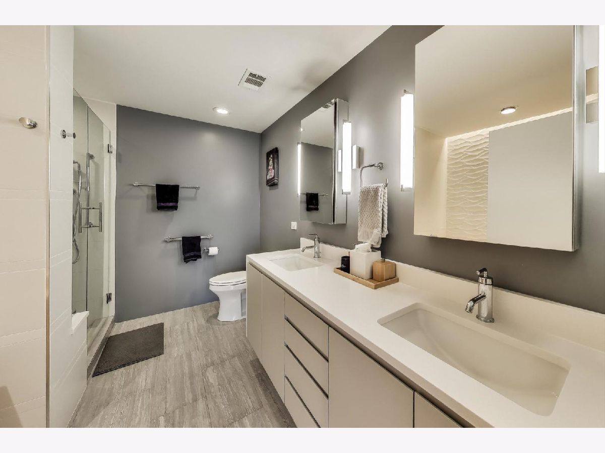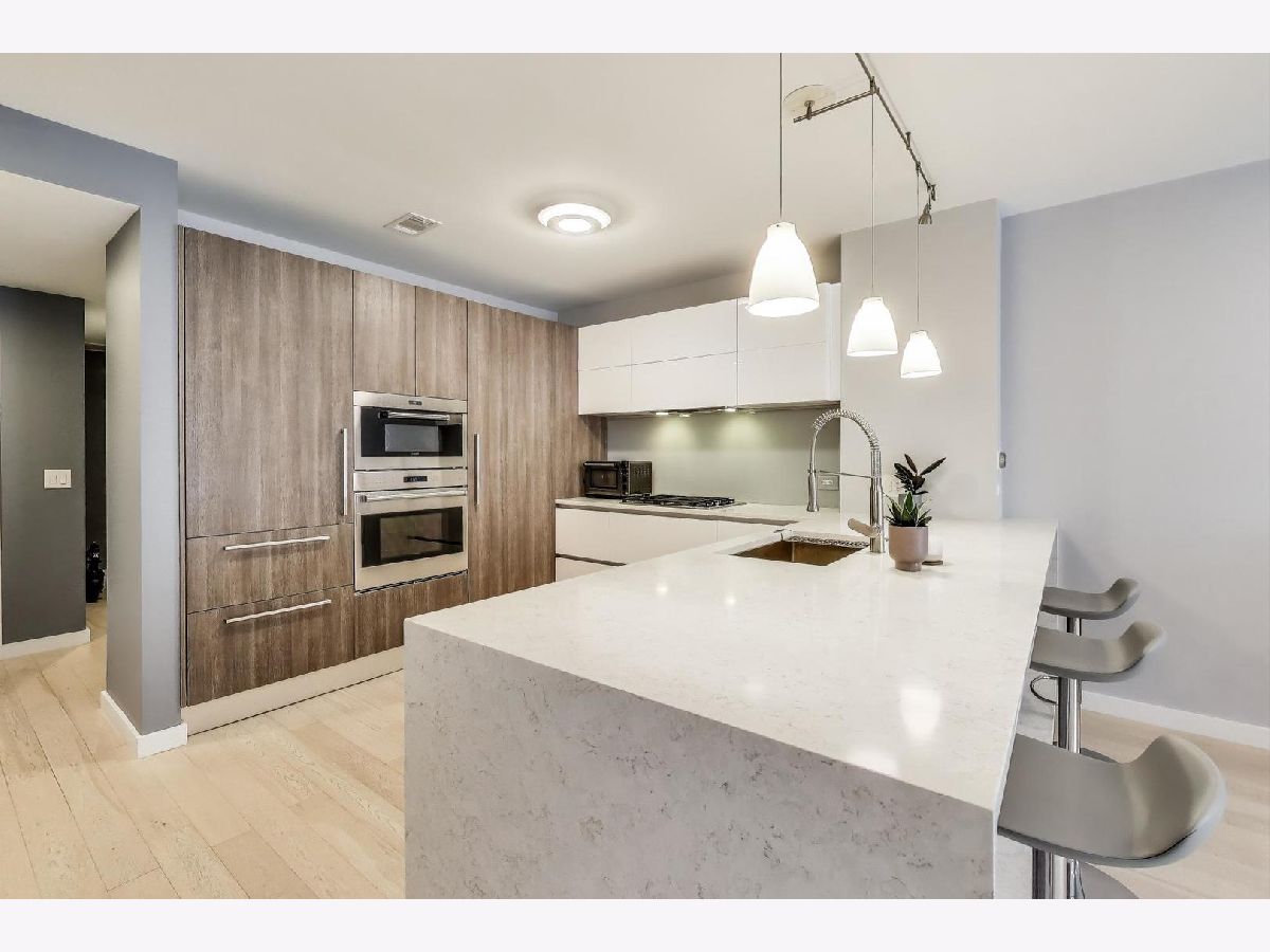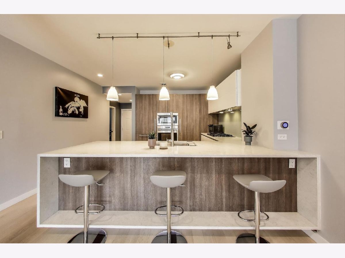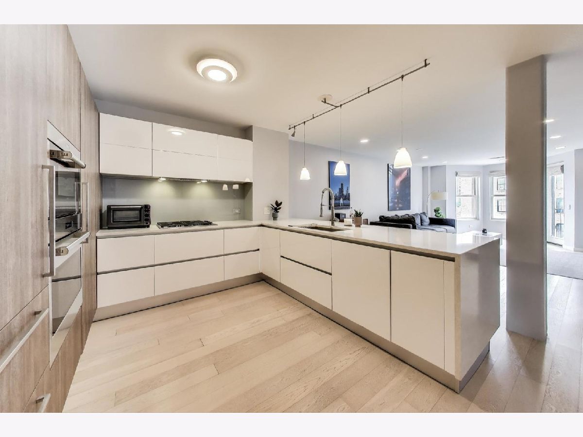 Discover unparalleled design and comfort in this 3-bedroom, 2-bathroom home, where every detail has been carefully curated. White oak hardwood floors flow throughout, leading into a living area anchored by bay windows that bathe the interior with natural light. Custom window treatments with sound-reducing inserts create a serene retreat, while a private balcony offers sweeping city views. The kitchen is a chef's dream, outfitted with custom Italian cabinetry featuring touch-to-open and soft-close technology, quartz waterfall counters, Wolf & Sub-Zero appliances, a large pantry with swing-out shelves, and a 154-bottle dual-zone wine fridge. The corresponding custom Italian built-in entertainment center completes this open-concept space. The primary suite is a true sanctuary, with abundant sunlight and an expansive walk-in closet with a custom storage system. Rejuvenate in your ensuite with a therapeutic Japanese soaking tub crafted from genuine Hinoki wood, framed by a tranquil tile accent wall, or refresh in the luxurious multi-head shower with bench seating. A double quartz vanity rounds out this spa-like retreat. Two additional bedrooms provide flexibility for family, guests, or a home office. The second bathroom impresses with quartz countertops, curbless shower, and bespoke cabinetry. Building amenities include a fitness center, a sunlit mezzanine patio, secure video entry, secure package room, and on-site maintenance. Nestled in River West, this home places you steps from Fulton Market's dining scene and neighborhood favorites like La Scarola and Piccolo Sogno, coffee shops, fitness studios, Whole Foods, the Blue Line, and quick access to 90/94. A heated garage parking space comes with the unit for an additional $20k. Don't miss the opportunity to make this one-of-a-kind residence yours.