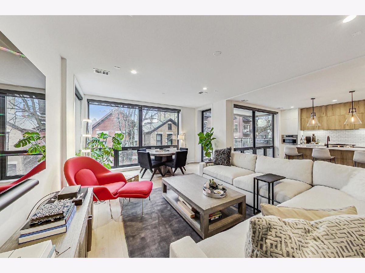 Welcome to 521 N Hermitage Avenue Unit 2S, a thoughtfully designed 2-bed, 2-bath condo in the heart of West Town. This modern home offers an open-concept layout with floor-to-ceiling windows that flood the space with natural light and lead to a spacious balcony off the family room, perfect for grilling and chilling. The kitchen balances style and function with waterfall-edge quartz countertops, custom cabinetry, and professional-grade stainless steel appliances. The primary suite features a walk-in closet, a private balcony, and a spa-inspired en-suite with a steam shower, heated floors, dual vanities, and elevated finishes. The second bedroom is ideal for guests or a home office, and the second bathroom includes a sleek tub/shower combo with modern tile and fixtures. Additional highlights include wide-plank hardwood floors, in-unit laundry, smart-home features, secure entry, and garage parking...included in the price! All of this in an unbeatable West Town location steps to dining, shopping, and nightlife with easy access to transit: Ashland Station (Green & Pink) approx. 0.7 miles and Chicago Avenue Station (Blue) approx. 1.0 mile away. Modern comfort meets urban convenience at 521 N Hermitage Avenue, Unit 2S.