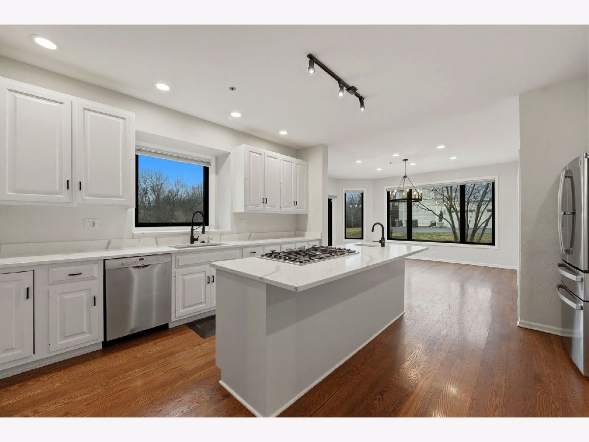 This immaculate move-in ready 5-bedroom, 4.5-bathroom two-story home offers 5,643 total square feet including a beautifully finished basement, blending timeless design with extensive modern updates. Featuring a remodeled kitchen, wood flooring throughout 1st and 2nd story, and refined finishes at every turn. The home has been meticulously maintained and thoughtfully upgraded throughout the years. With over $300,000 in recent improvements over the past five years, it delivers both elevated style and exceptional peace of mind. In June 2023, $160,000 (approx.) was invested in Renewal by Andersen black windows and sliding doors, adding striking architectural contrast, enhanced energy efficiency, and a transferable warranty. The exterior was further elevated with a $40,000 (approx.) Hardie Board & Batten siding upgrade, including new gutters, soffit, fascia, freshly painted garage doors, and refreshed professional landscaping-creating standout curb appeal and a sophisticated first impression. The finished lower level was completely upgraded with $25,000 (approx.) in improvements, including removal of carpet, installation of top-grade luxury vinyl flooring, and fresh paint-creating a clean, versatile space ideal for entertaining, recreation, or a home gym. A comprehensive $35,000 (approx.) waterproofing system was also completed in 2023, featuring replaced and upgraded sump pumps, an additional pump, battery backup, and a lifetime warranty for long-term confidence. Mechanical systems have been proactively addressed with a new Carrier upstairs HVAC system (December 2023), two new 75-gallon water heaters (December 2022), and a new electrical panel with built-in surge protection (December 2022). Specialty custom-ordered window treatments installed in July 2023 add a refined finishing touch throughout. Move-in ready and extensively improved, this home offers peace-of-mind, modern efficiency, quality craftsmanship, and luxury living in one of Long Grove's most desirable communities. School districts determined from boundary maps in 2/2026. Confirmation responsibility of buyers. Disclosure: Some images have virtual staging. Some exterior images have a summer rendering.