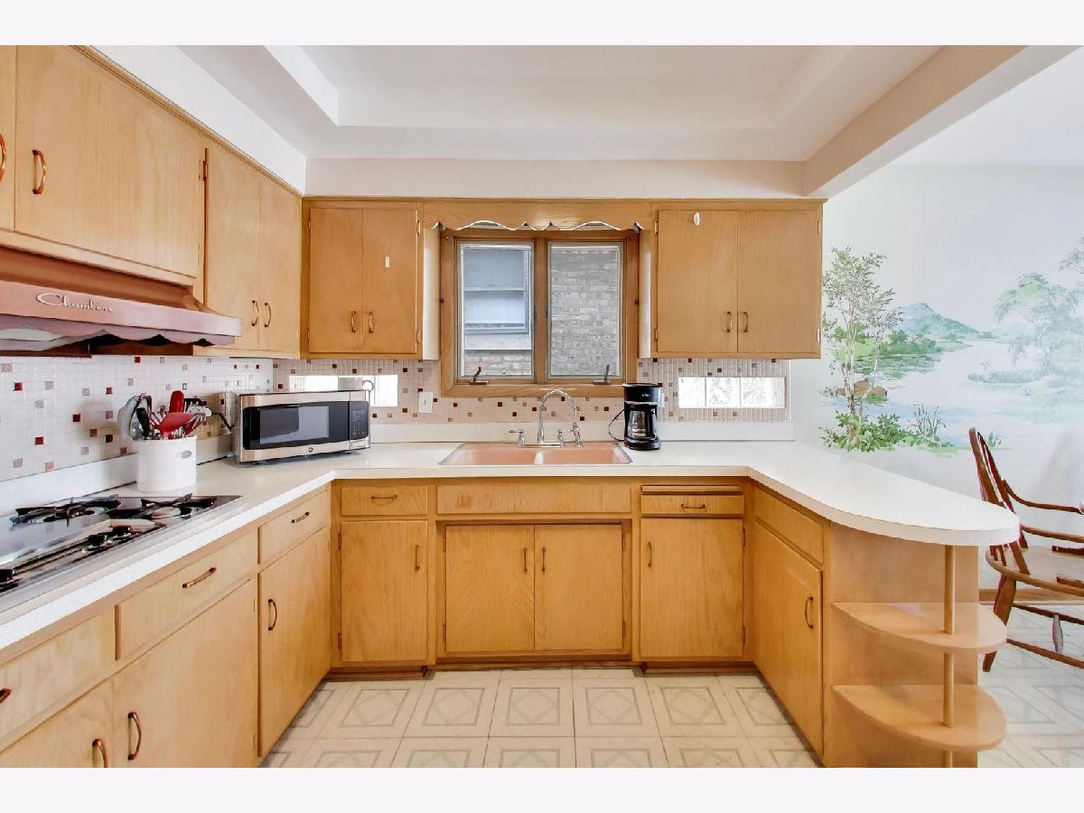Charming solid brick ranch with endless potential. A classic Chicago home that is on quiet residential Patterson Street. This house offers a wonderful opportunity to create your ideal home. 3 bedrooms on 1st floor and 1.5 baths. Another bedroom and bath bedroom in the basement. 2.5 baths in total. The main level features a sunny south facing living room and a cute vintage kitchen, hardwood floors throughout. The enclosed back porch is additional flexible living space-ideal for a mudroom or seasonal enjoyment. Freshly painted throughout. The exterior was recently freshly painted also. The basement includes a 2nd kitchen, bathroom and bedroom offering space for extended family, or an in-law arrangement. This property presents a chance for buyers to bring their personal style to a house with great bones and lasting quality. The fenced yard and 2.5 garage are ready for you and summer fun! Estate owned property sold in its current condition.