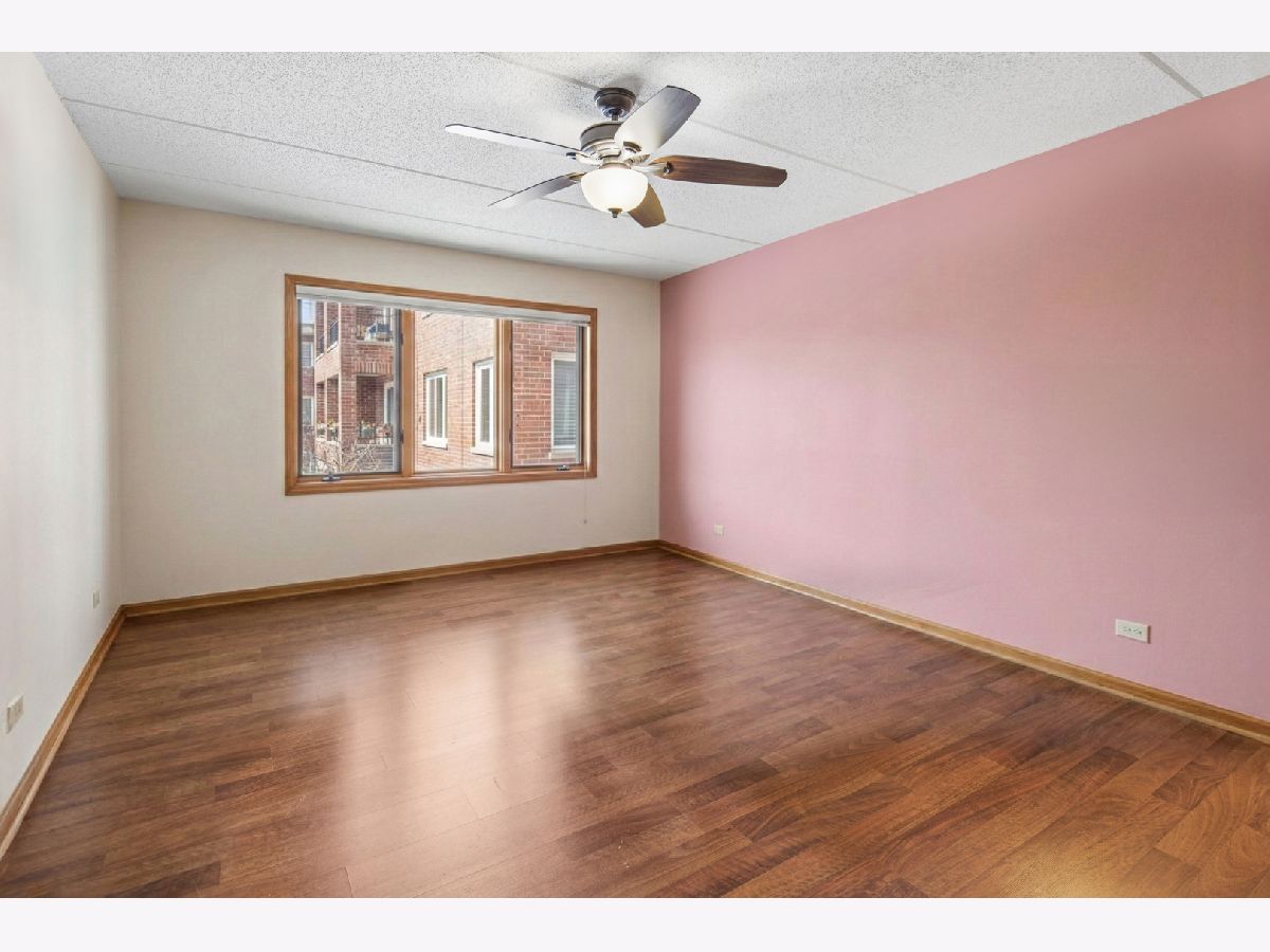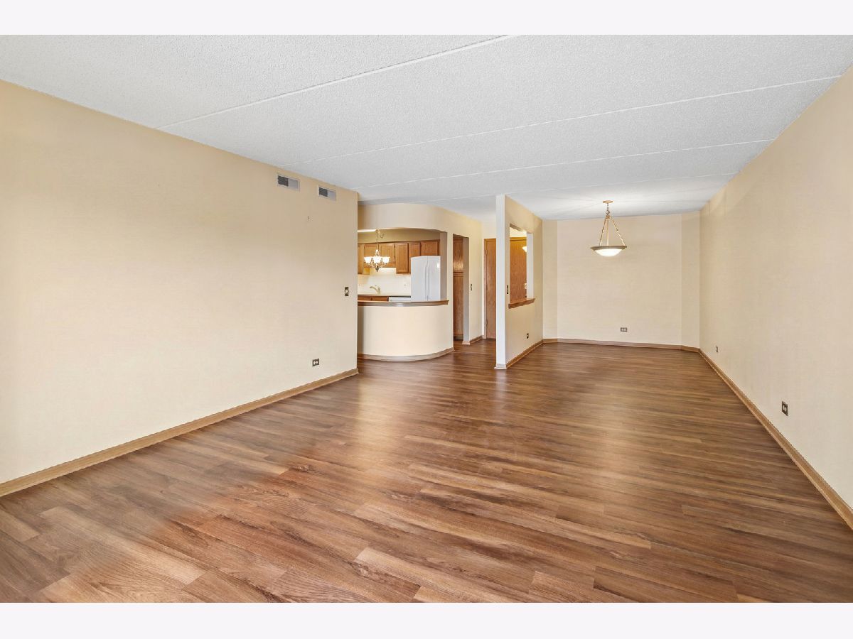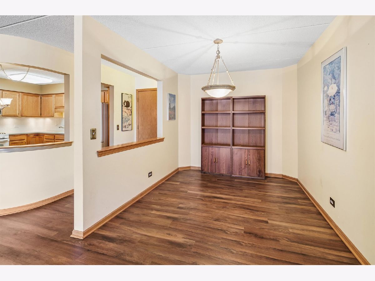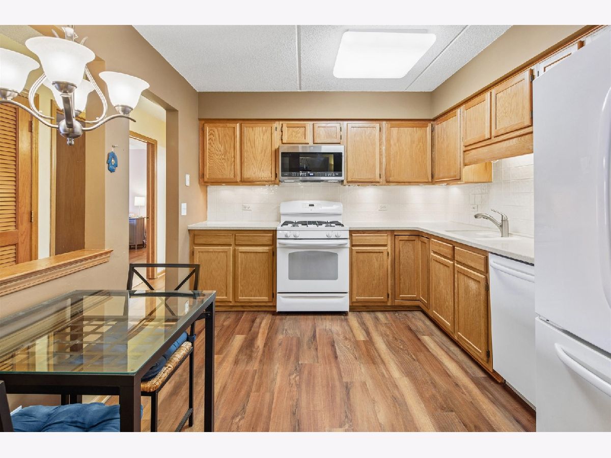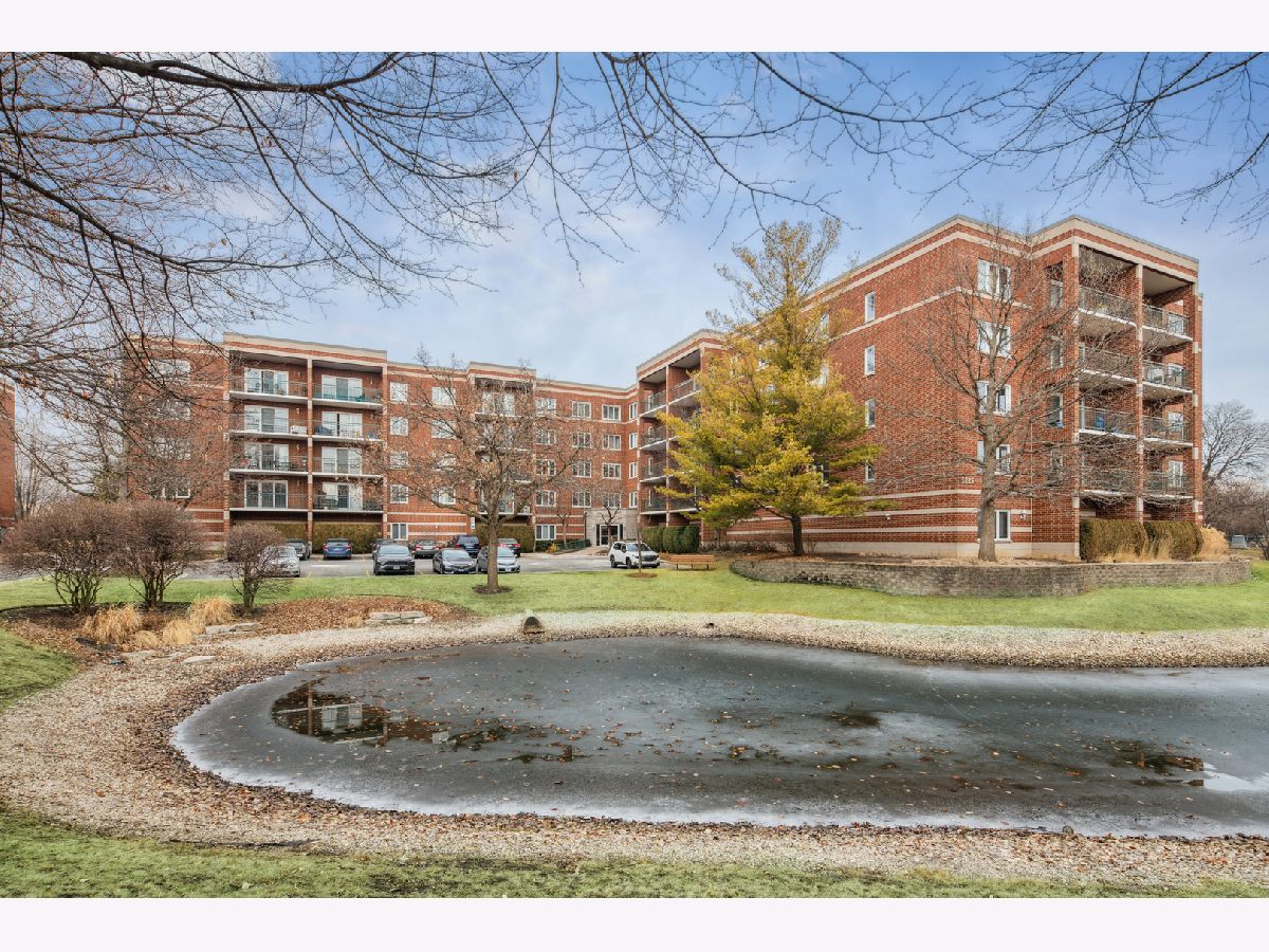 Experience the serenity of Rivers Edge Terrace! This spacious 2-bedroom, 2-bath condo boasts brand-new LVT flooring and a light-filled, open layout. The living and formal dining areas flow seamlessly, with sliding doors leading to a 16x6 covered balcony offering picturesque views of the fountain and pond. The charming eat-in kitchen features ample oak cabinetry, Corian countertops, a large pantry, and a new microwave. The luxurious primary suite includes a double vanity, whirlpool tub, separate shower, and an expansive walk-in cedar closet! Nice sized second bedroom currently used as an office. Full second bath for guests.. In-unit laundry room with full-size washer and dryer. Enjoy the convenience of a heated garage space (#51) with an adjacent large storage closet. This beautifully maintained elevator building recently received a new roof and a new A/C compressor for this unit. Nestled in a serene, suburban-like setting within the city, you'll love the easy access to Labagh Woods trails, grocery stores, shopping, dining, restaurants and more! Your monthly assessments cover heat, gas,water, basic cable and professional management of beautiful grounds.Easy access to Jewel, Target,Starbucks, 94 xway and Foster/Pulaski bus lines.