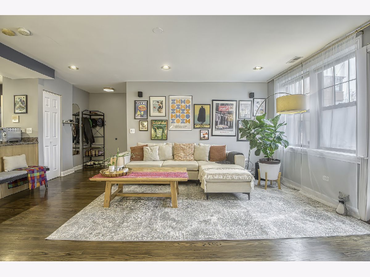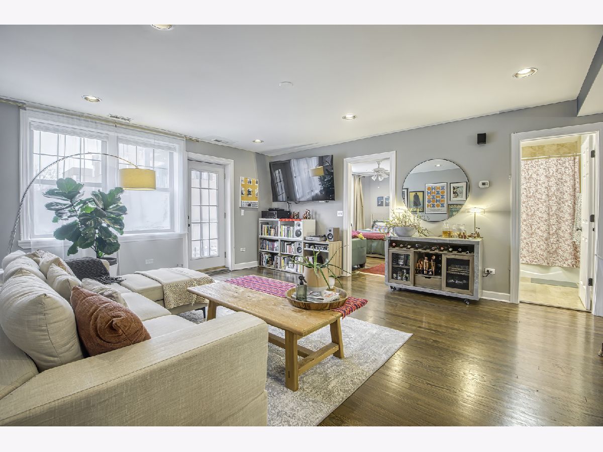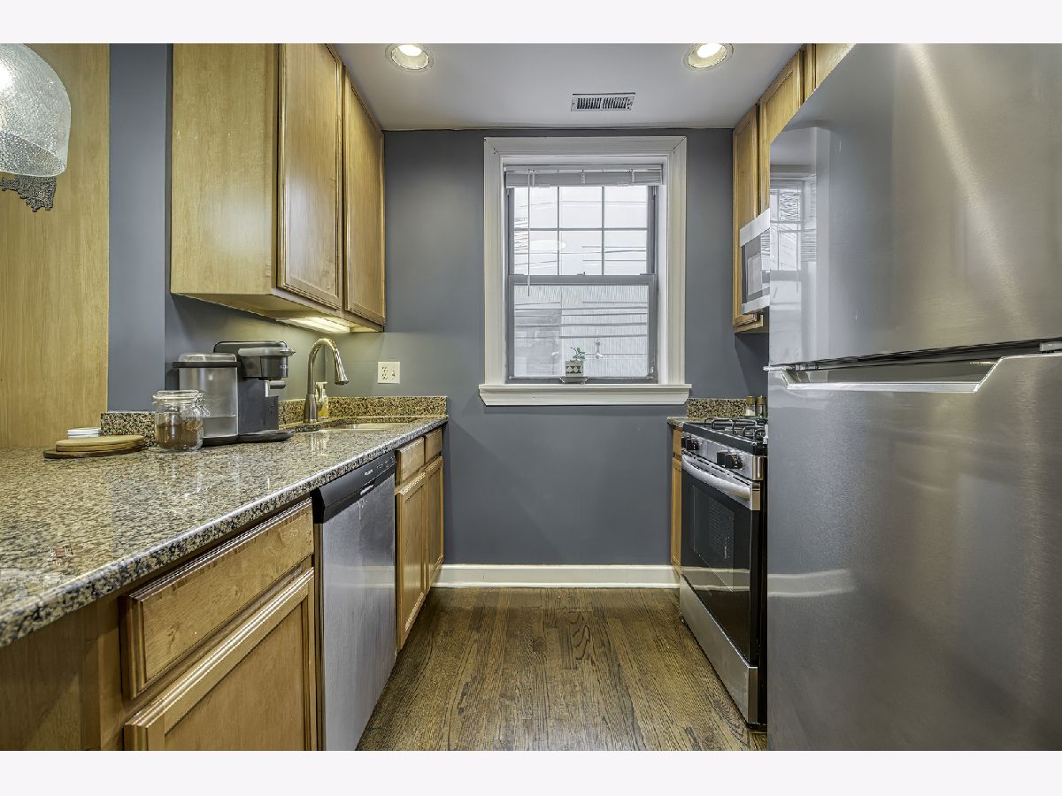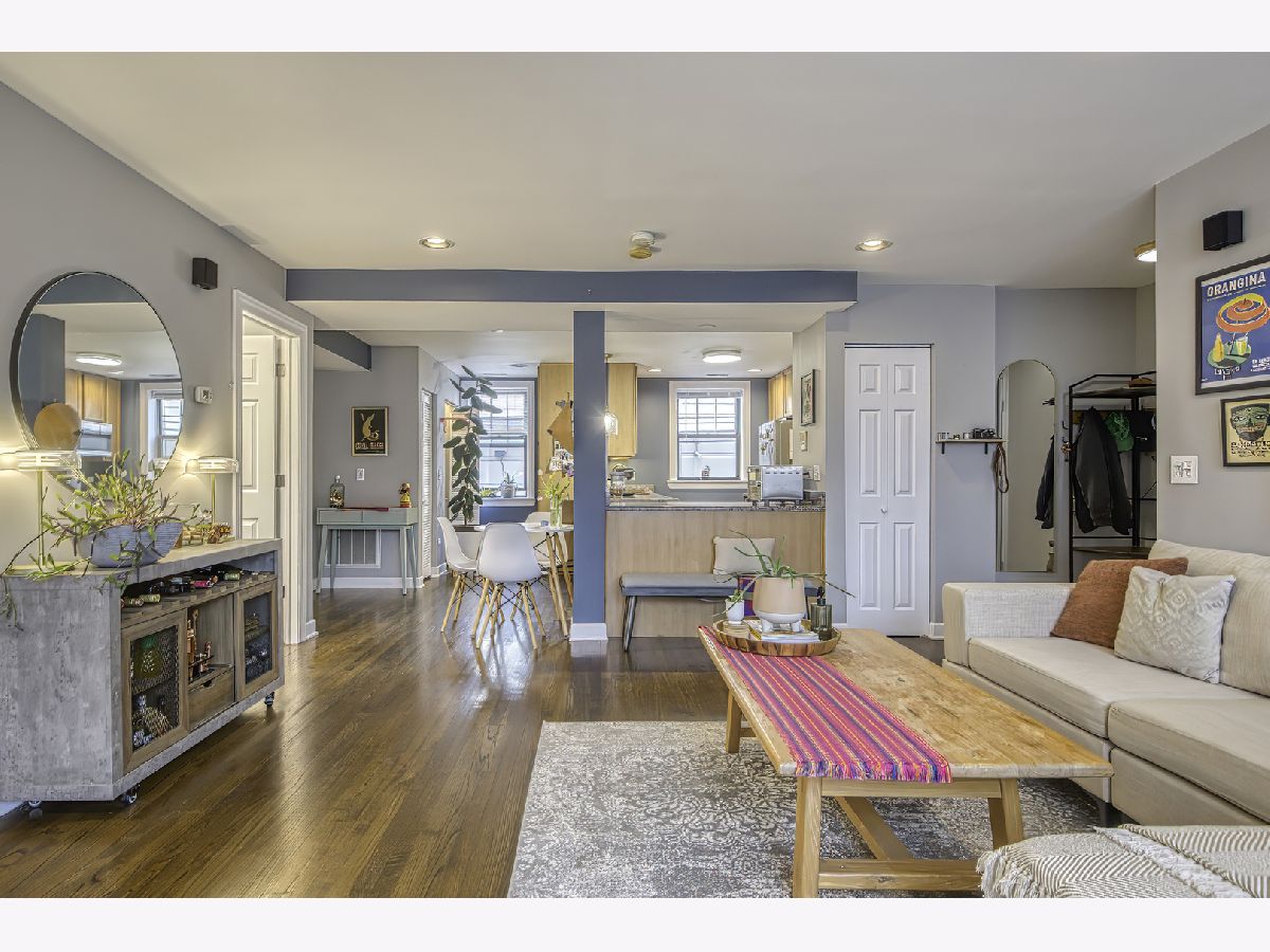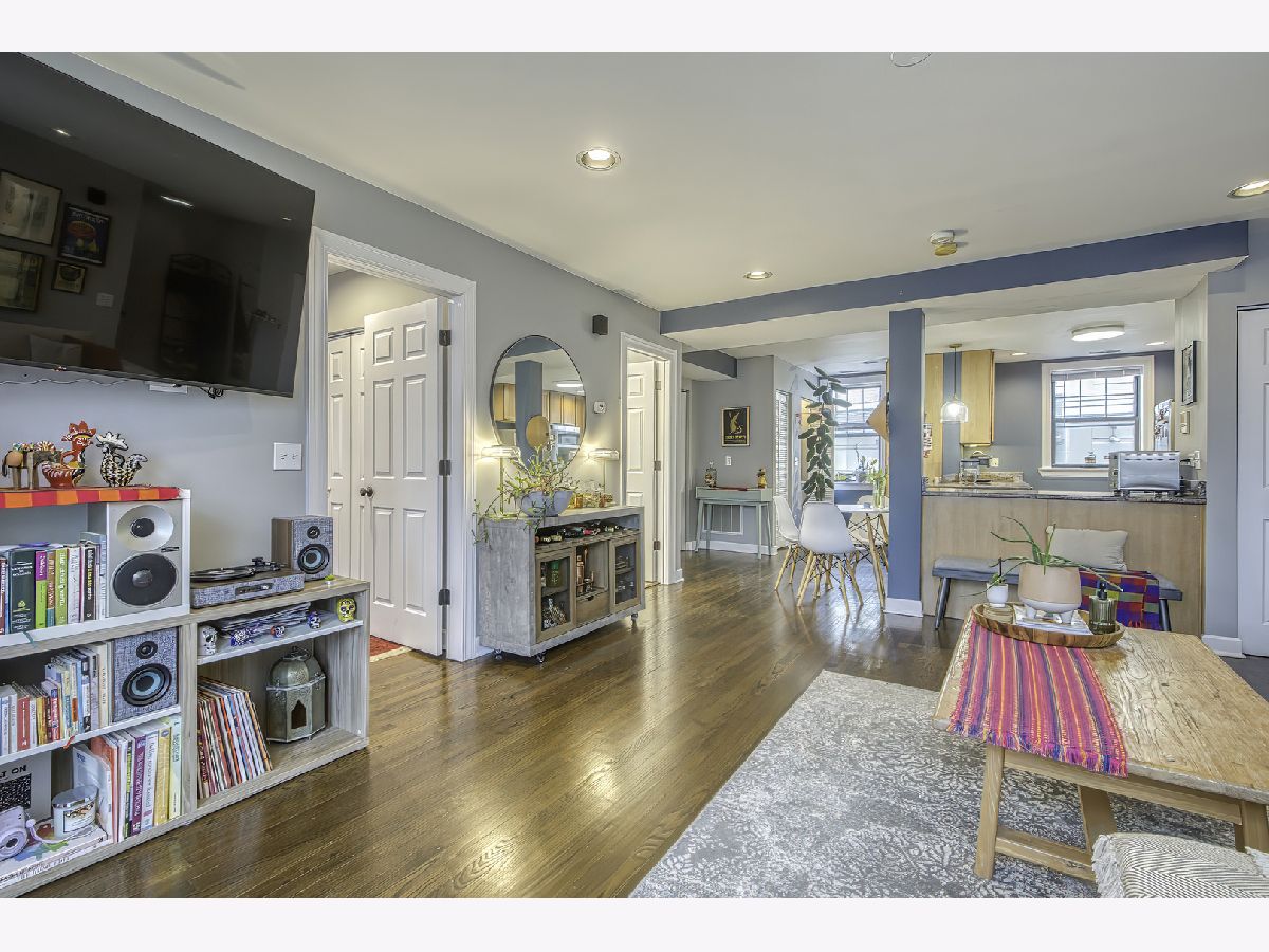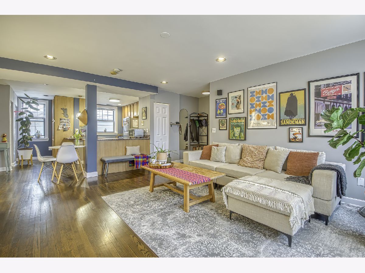 Warm and inviting high first-floor condo with hardwood floors throughout and great natural light. The kitchen has excellent counter space and tons of storage, along with granite counters, a breakfast bar, and a small eat-in area. The spacious living room opens to a private balcony. A split-bedroom floor plan gives both bedrooms privacy, while the primary suite features a beautifully renovated bath completed in 2025. Recent improvements include new kitchen appliances, furnace, lighting, and garbage disposal in 2025, washer/dryer in 2024, and a renovated main bath in 2025, making this feel like an easy move. Two exterior parking spaces, storage, and bike storage included. Located close to Tony's, Half Acre, Lincoln Square, Andersonville, Winnemac Park, Legion Park, the Western Brown Line, and both the Ravenswood and Peterson Metra. MULTIPLE OFFERS RECEIVED - H&B DUE BY MONDAY 4/20 AT 4:00