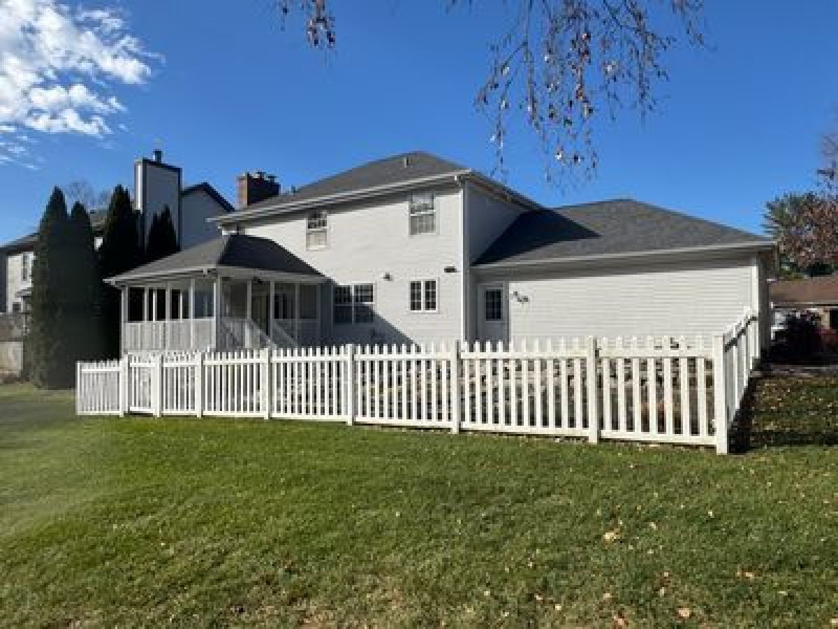 Lovely colonial home offering over 2,000 square feet of living space in one of Rockford's most desirable neighborhoods. Step into the inviting two story home filled with abundant natural light. The main level features a formal living room and dining room, an eat in kitchen that opens to the family room with fireplace, and a convenient half bath. Upstairs, the spacious primary suite includes a separate shower and a walk in closet, along with three additional generously sized bedrooms and a full bath. The unfinished basement offers excellent potential for a future family room, office, and additional storage. Enjoy outdoor living with direct access to a large covered composite deck overlooking a fenced backyard with a small pond. Recent updates include new carpet, flooring, lighting, fixtures, and a fully repainted interior. An oversized two car garage completes this move in ready home.